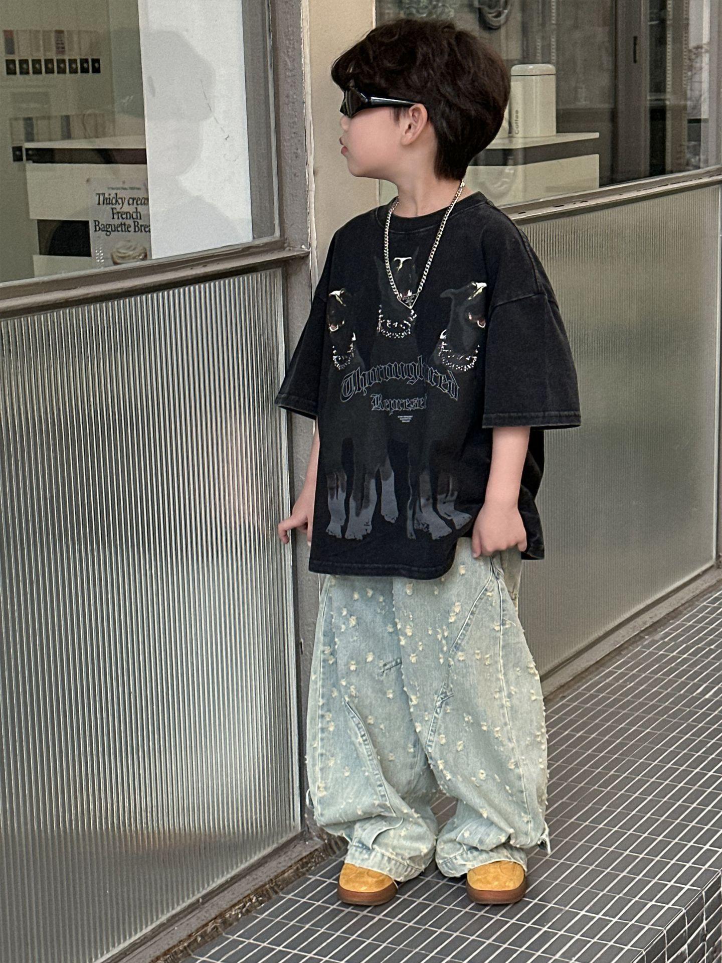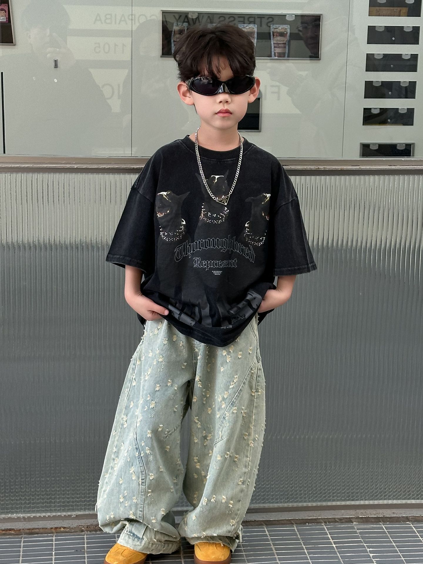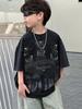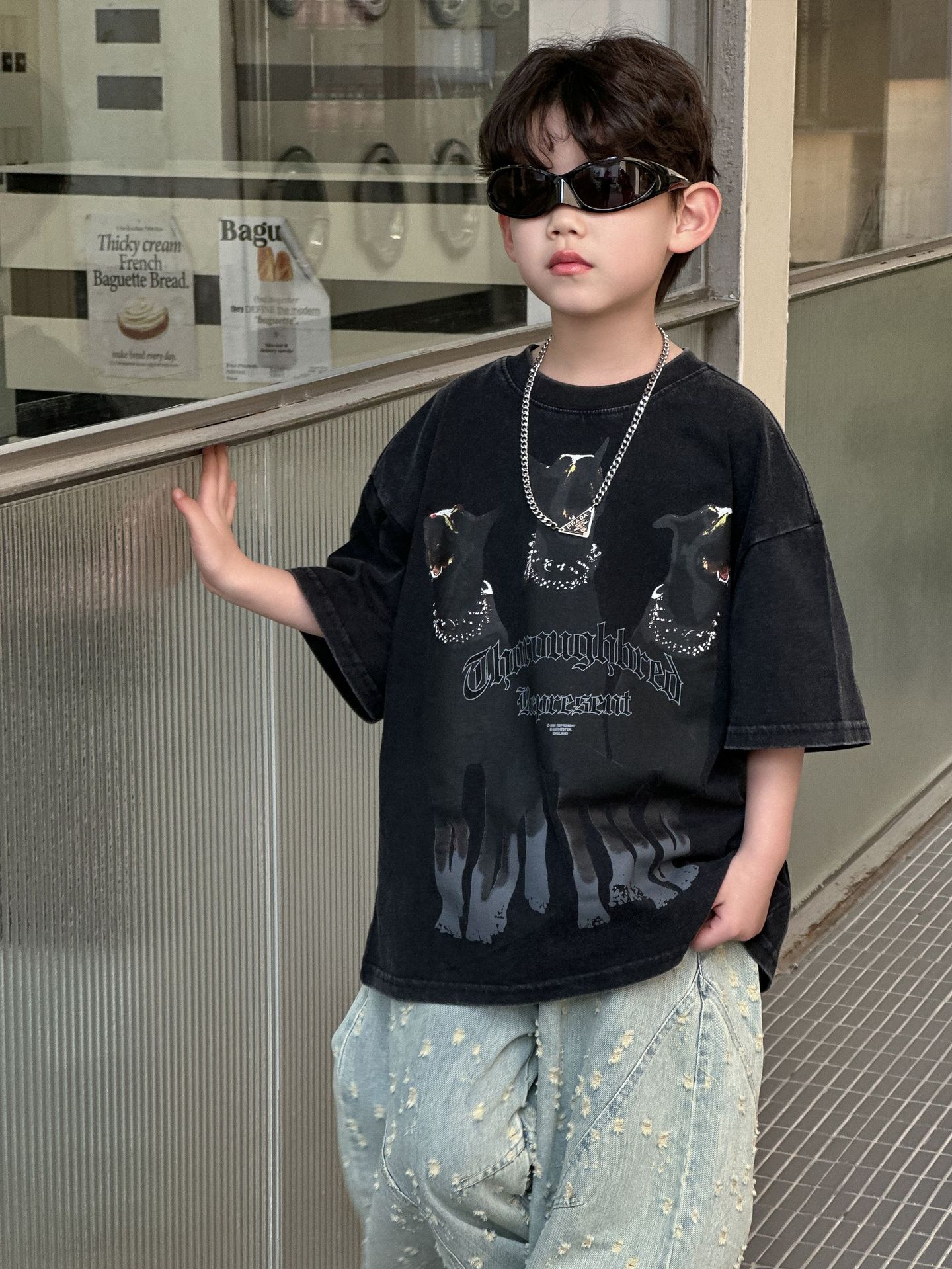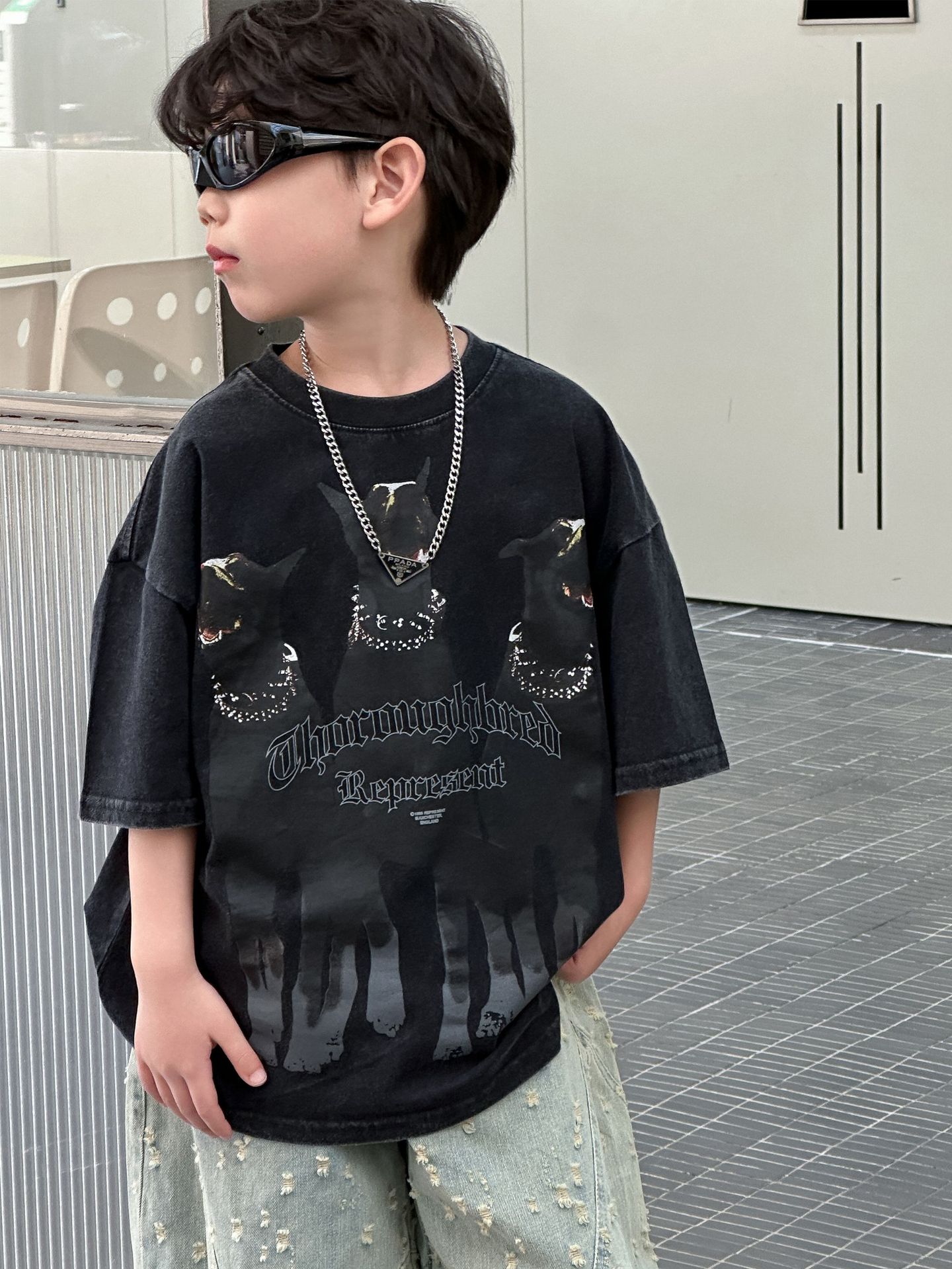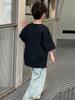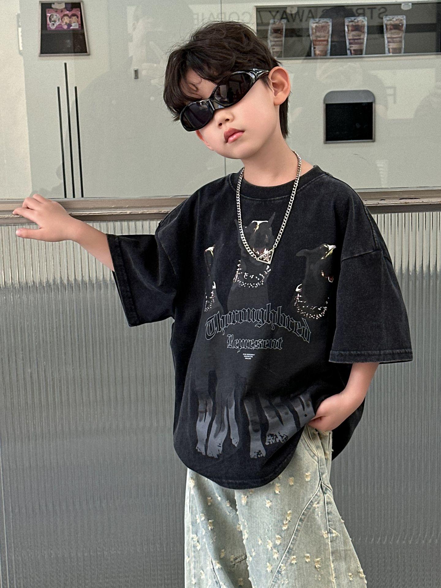 Camiseta de color sólido con dibujos animados para niños, novedad de verano de 2025, estilo coreano, estilo occidental, camiseta de manga corta de verano para niños, moderna
