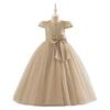 Venta al por mayor, nuevo vestido para niñas, vestido grande para niñas, manga abullonada, lentejuelas, vestido de princesa para boda, vestido con apliques para el suelo.