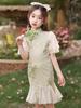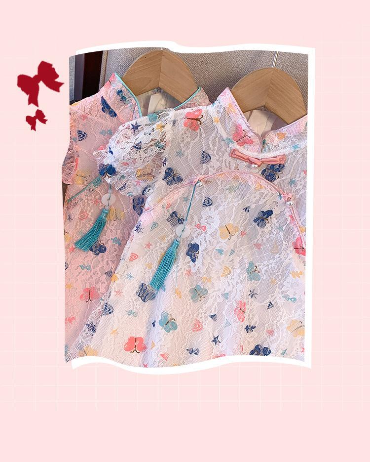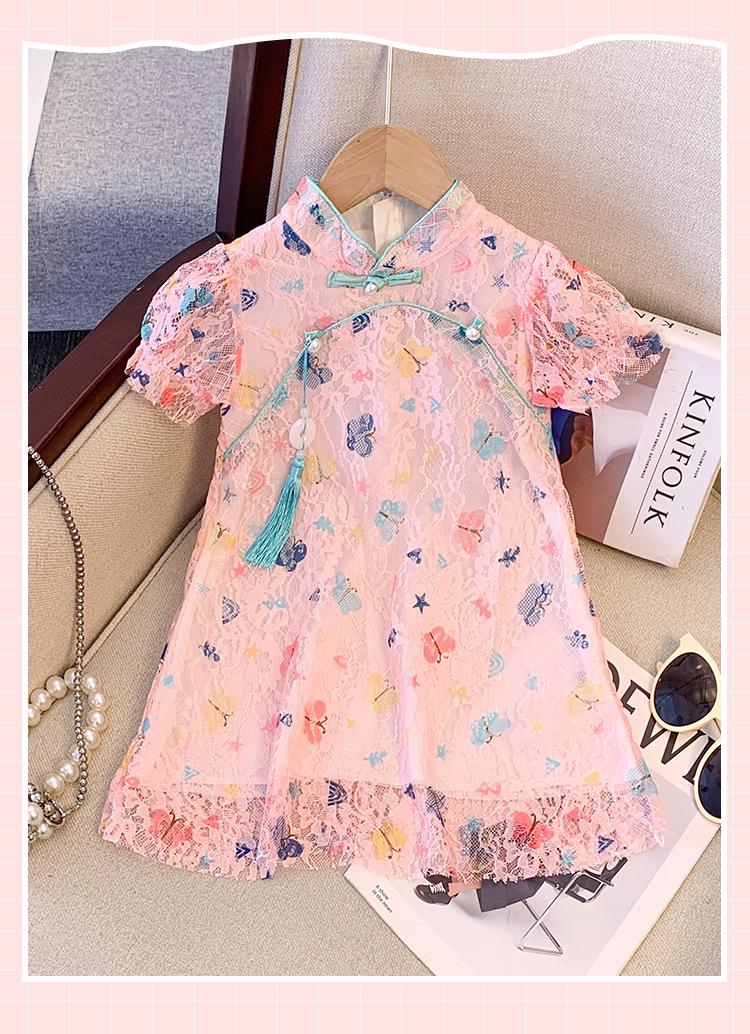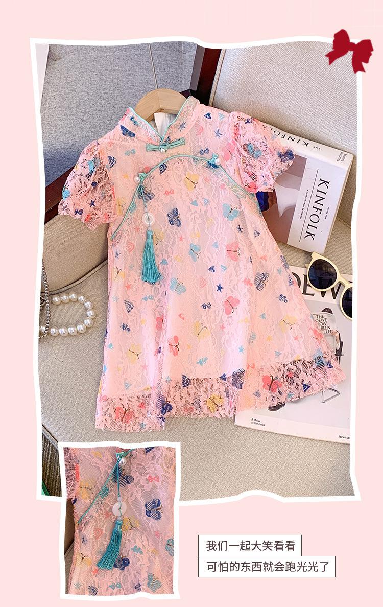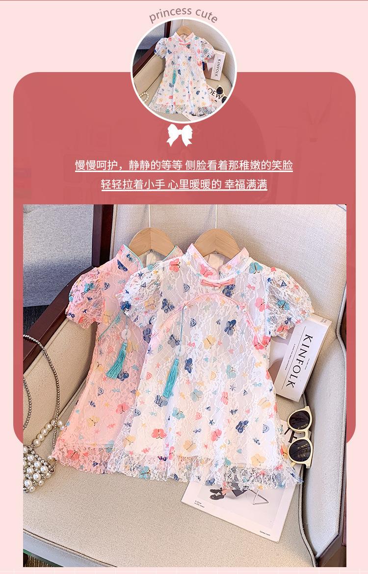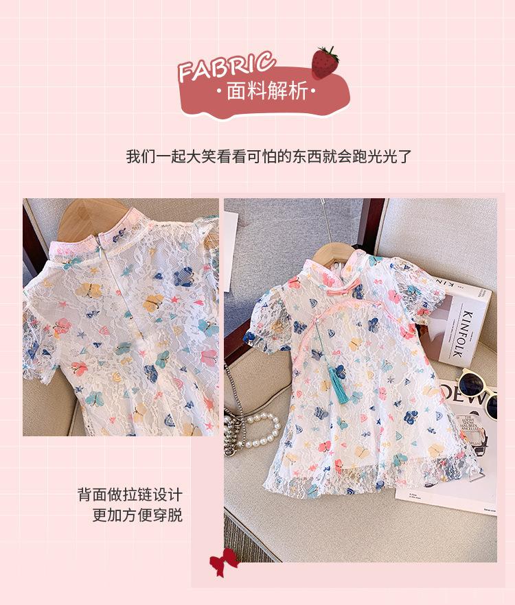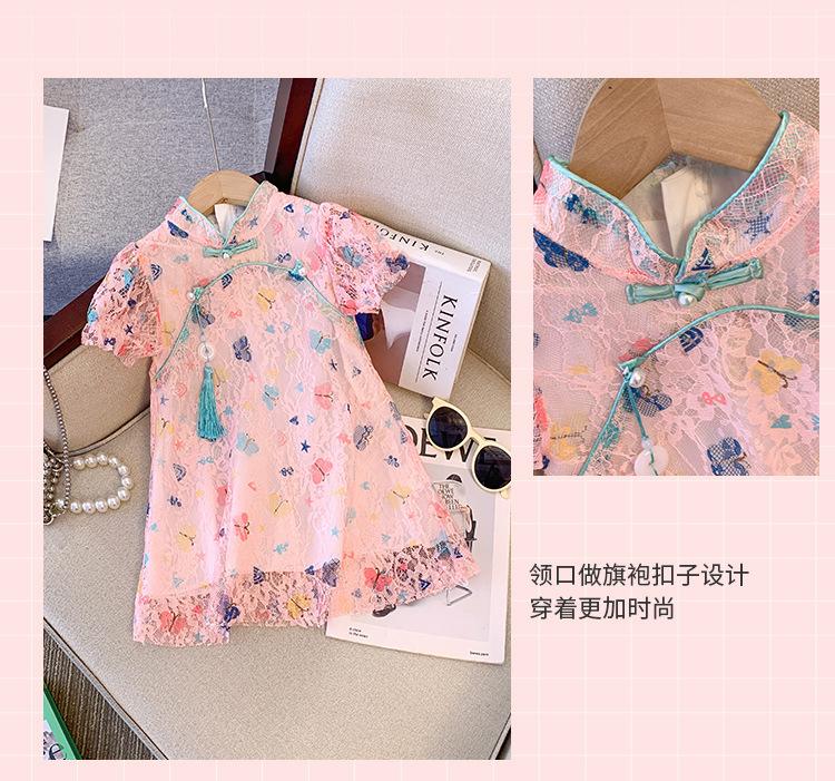 Falda cheongsam para niña verano nuevo cheongsam de manga corta vestido femenino bebé estilo chino vestido de verano falda una generación de cabello