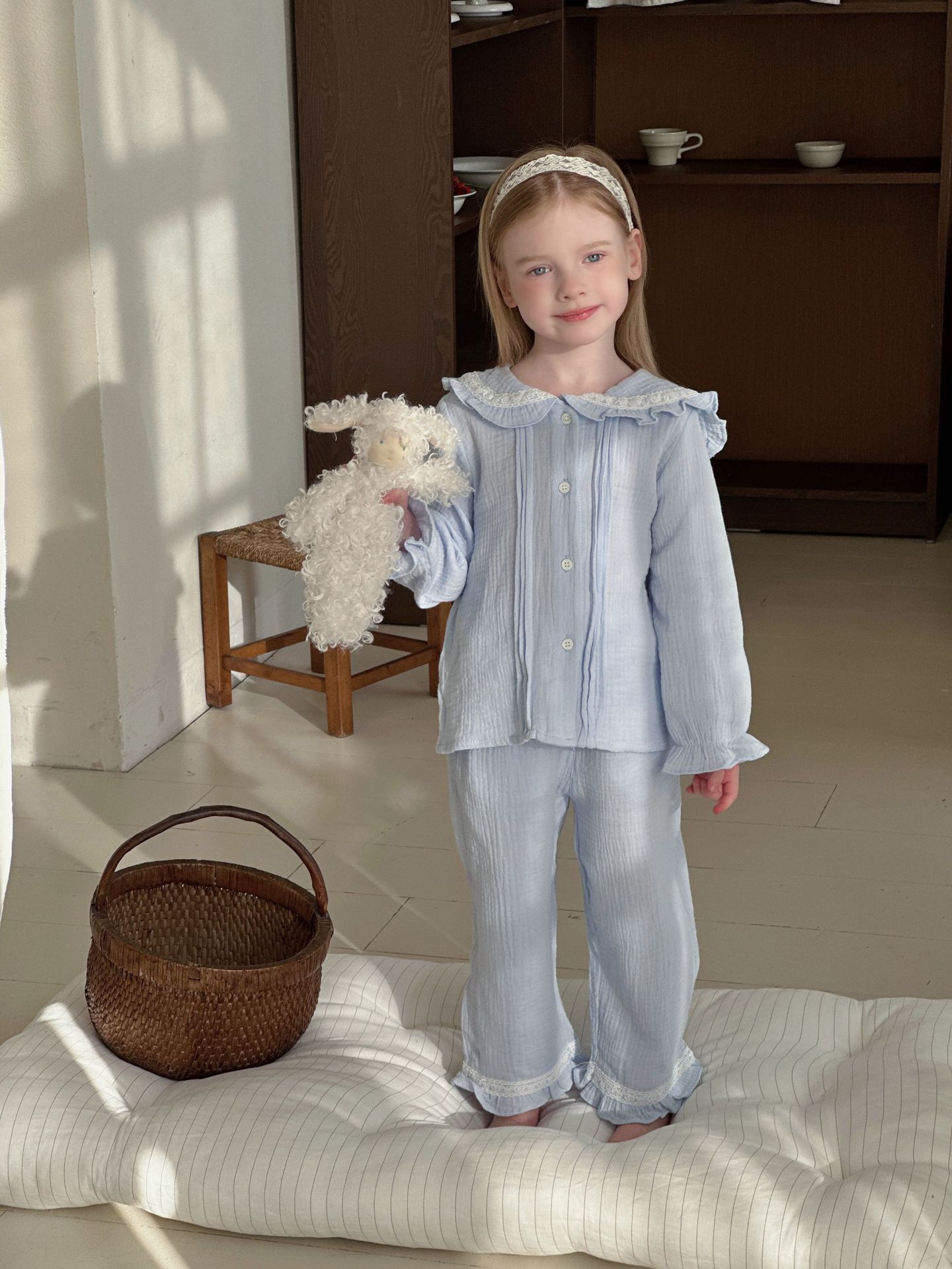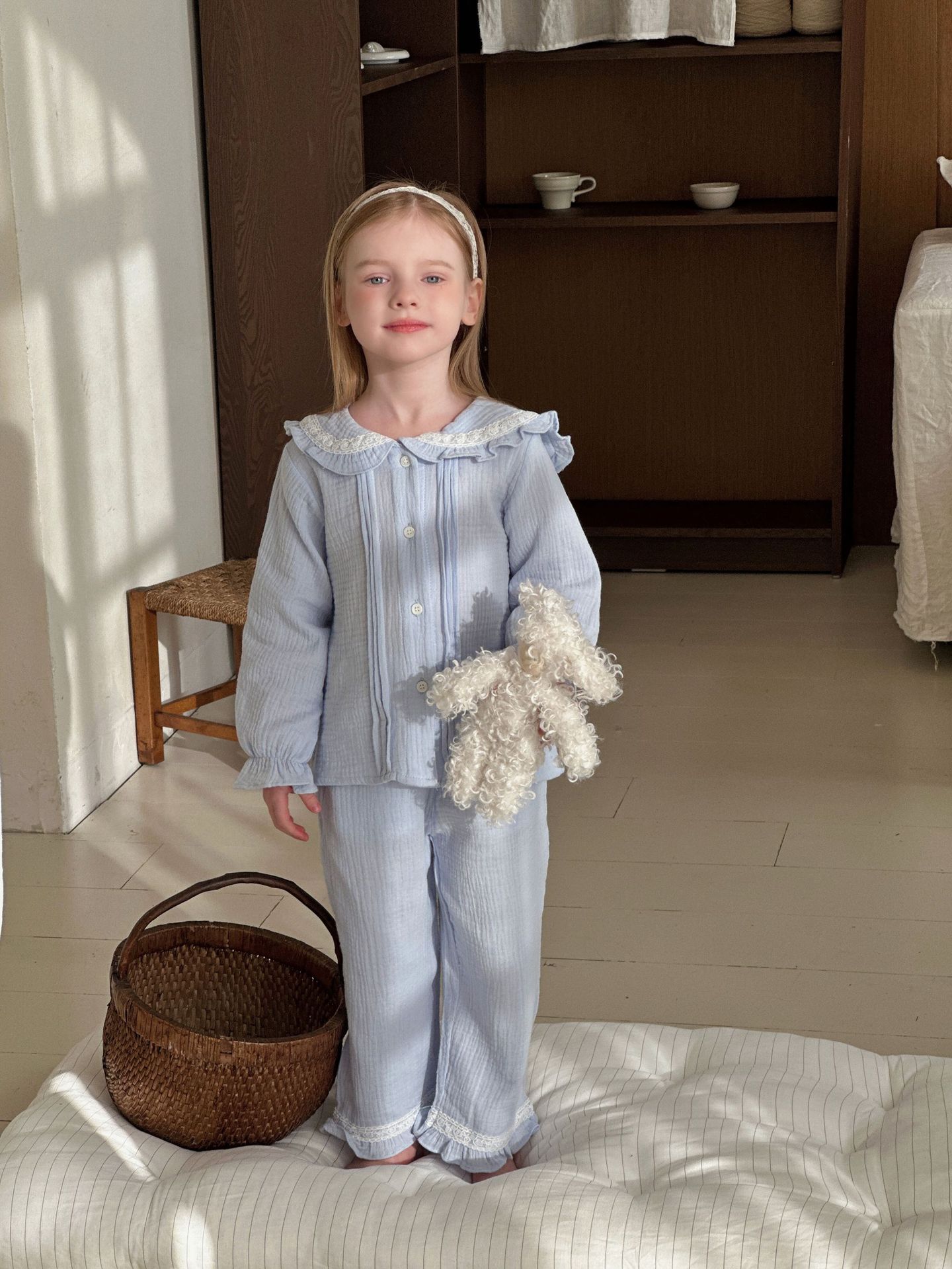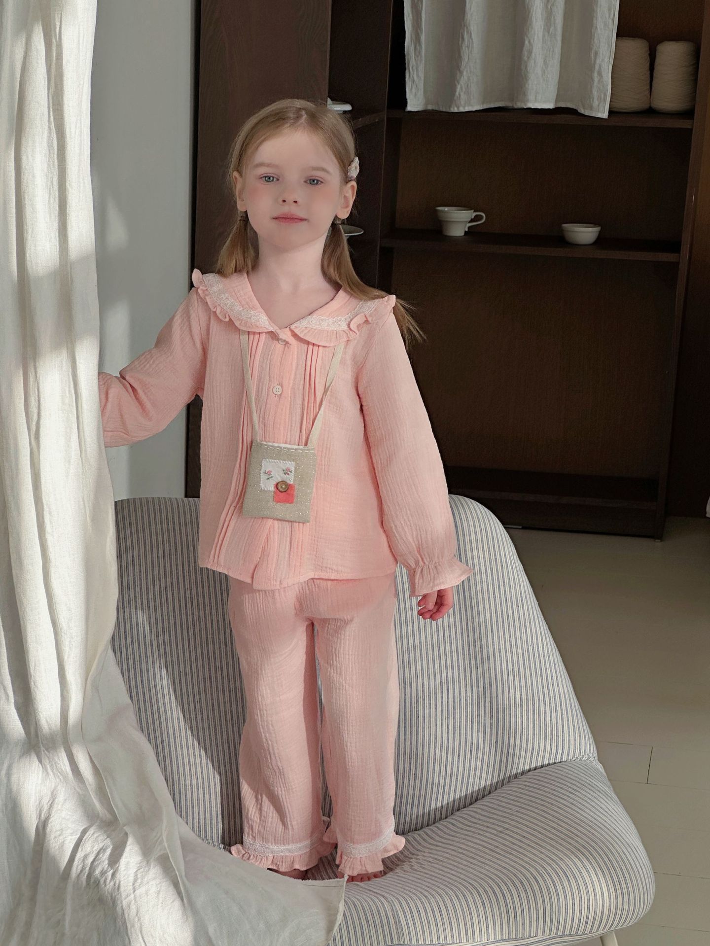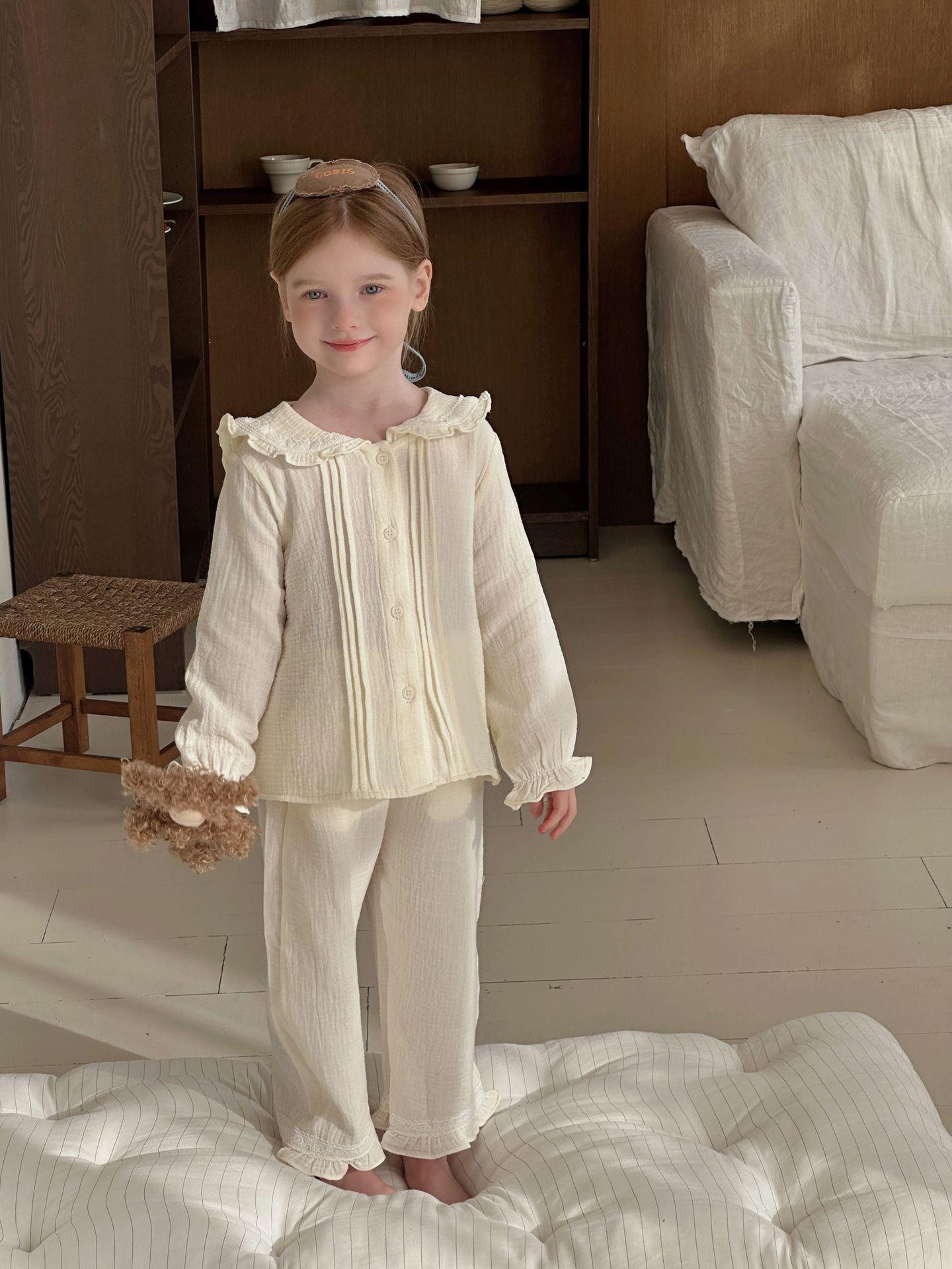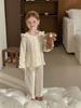 Conjunto de Ropa de Casa para Niñas 2025 Primavera y Otoño Nuevo Pijama de Encaje para Niños Bebé Algodón Puro Manga Larga Conjunto de Dos Piezas