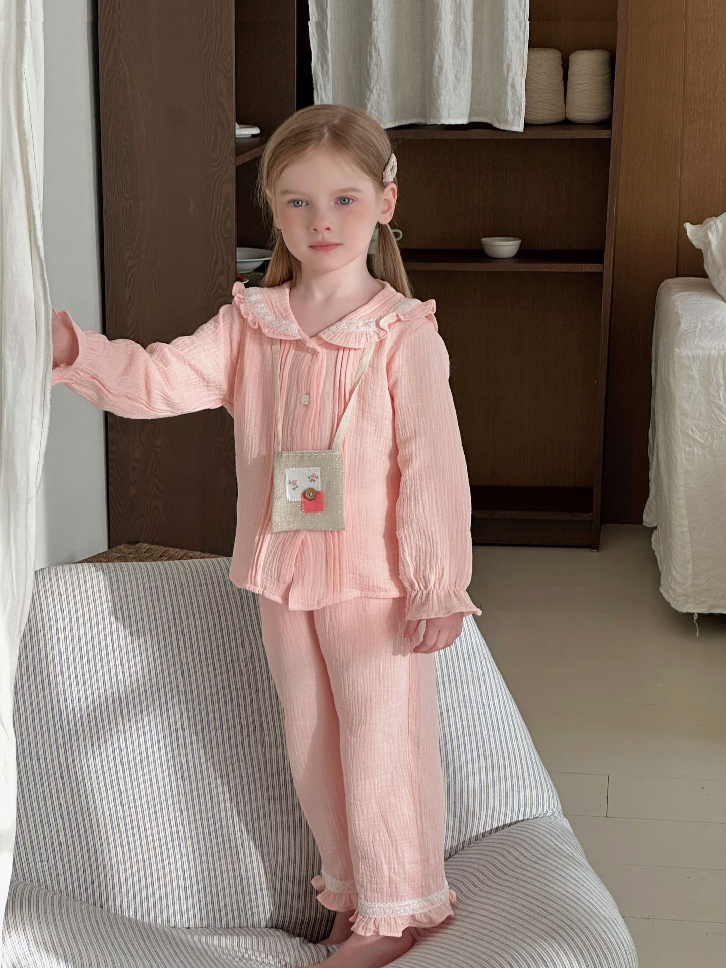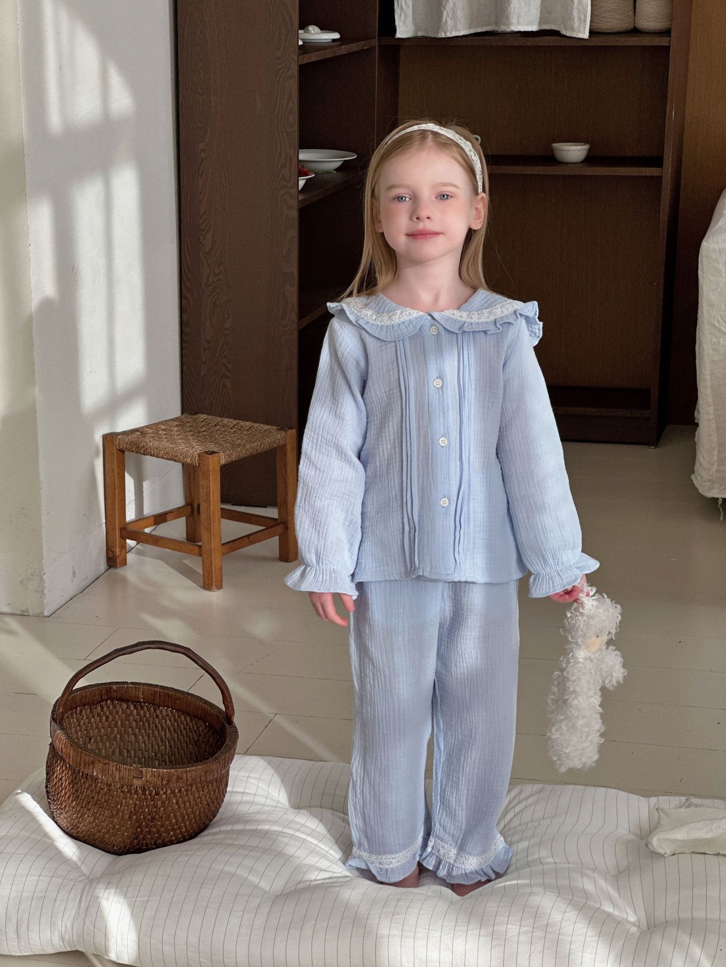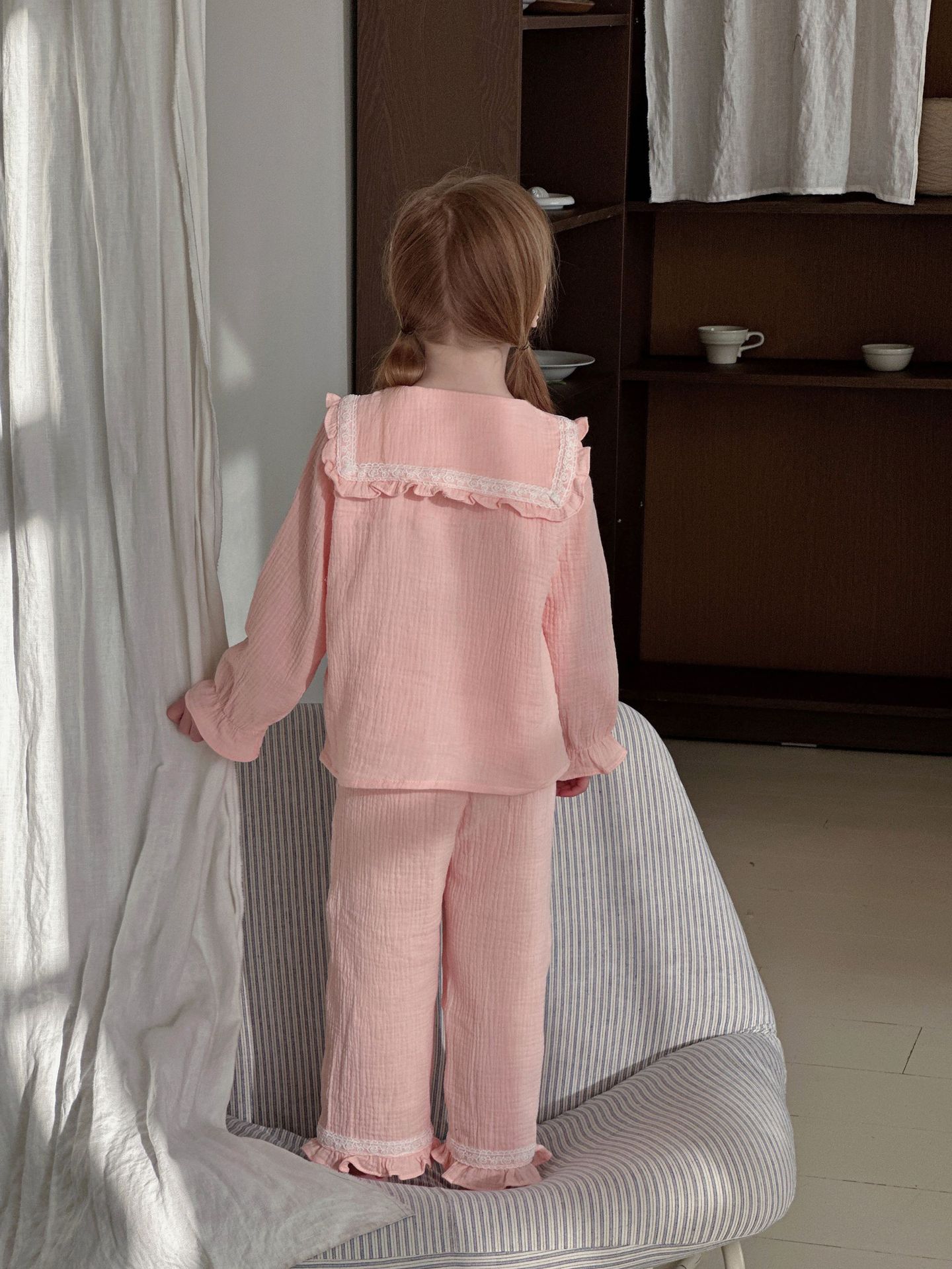 Conjunto de Ropa de Casa para Niñas 2025 Primavera y Otoño Nuevo Pijama de Encaje para Niños Bebé Algodón Puro Manga Larga Conjunto de Dos Piezas