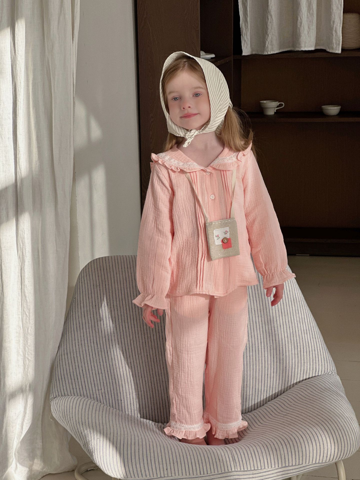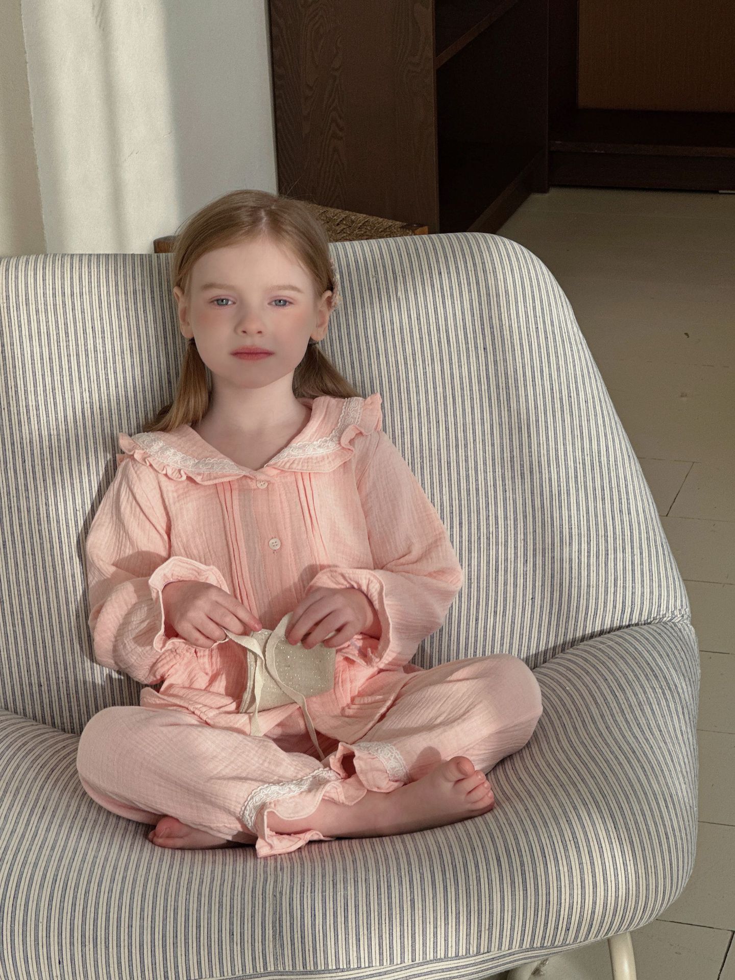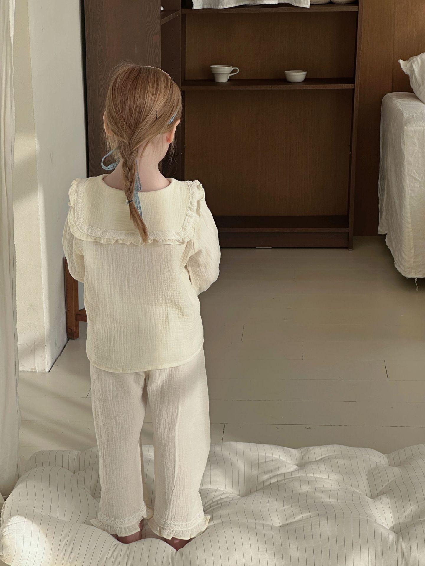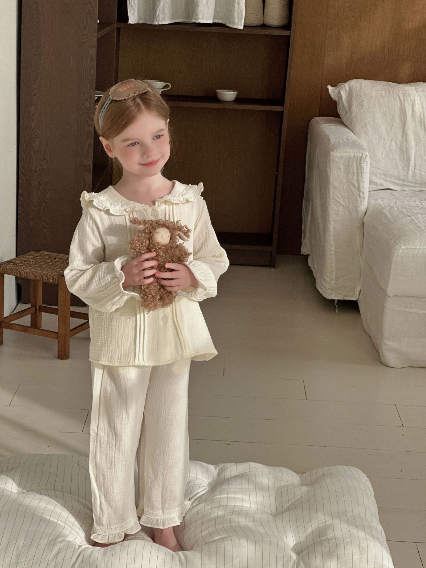 Conjunto de Ropa de Casa para Niñas 2025 Primavera y Otoño Nuevo Pijama de Encaje para Niños Bebé Algodón Puro Manga Larga Conjunto de Dos Piezas