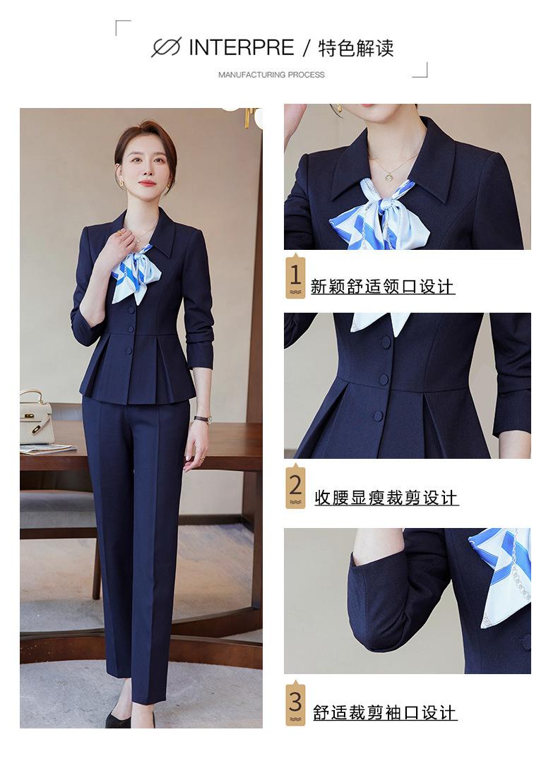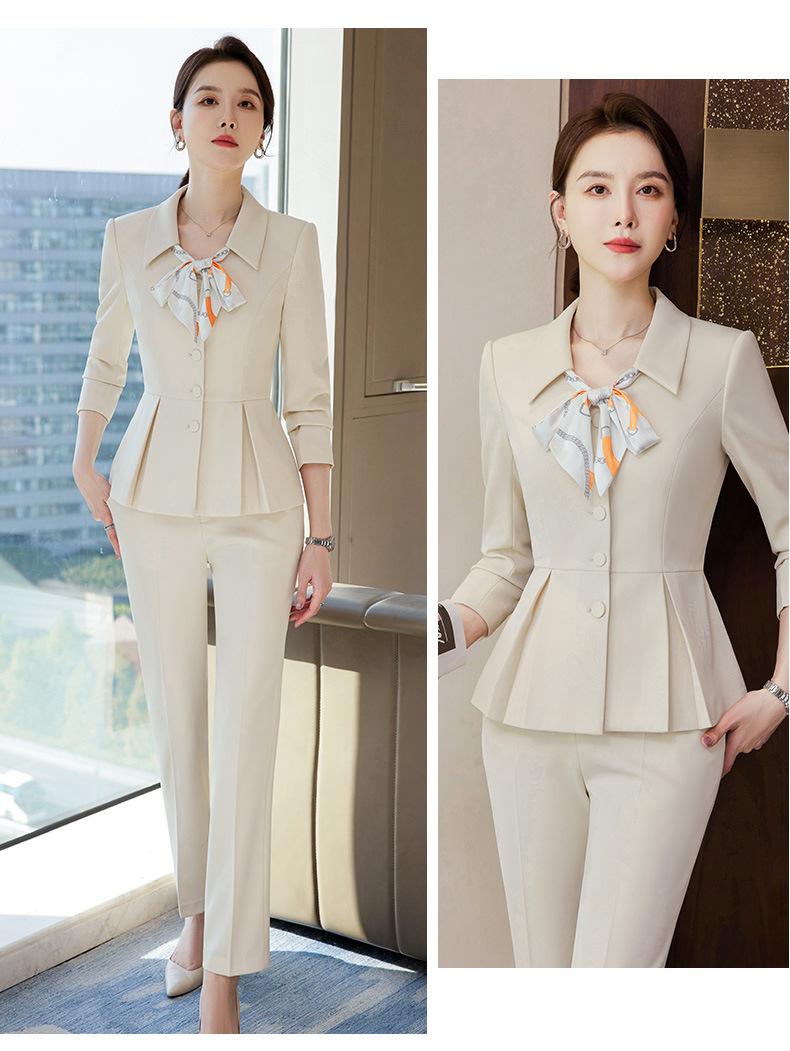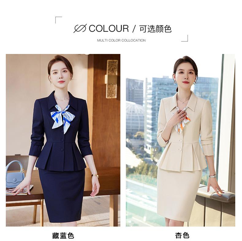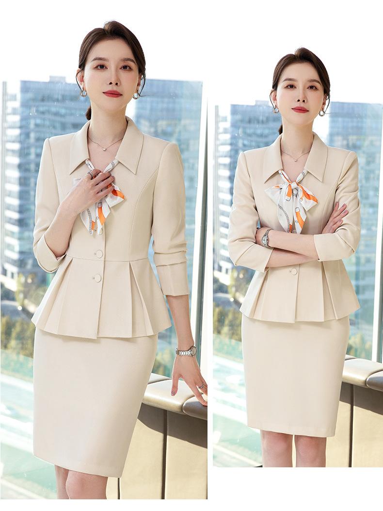 Blue one-piece suit, Apricot one-piece suit, Blue suit + shirt, Apricot suit + shirt, Blue suit + skirt, Apric...