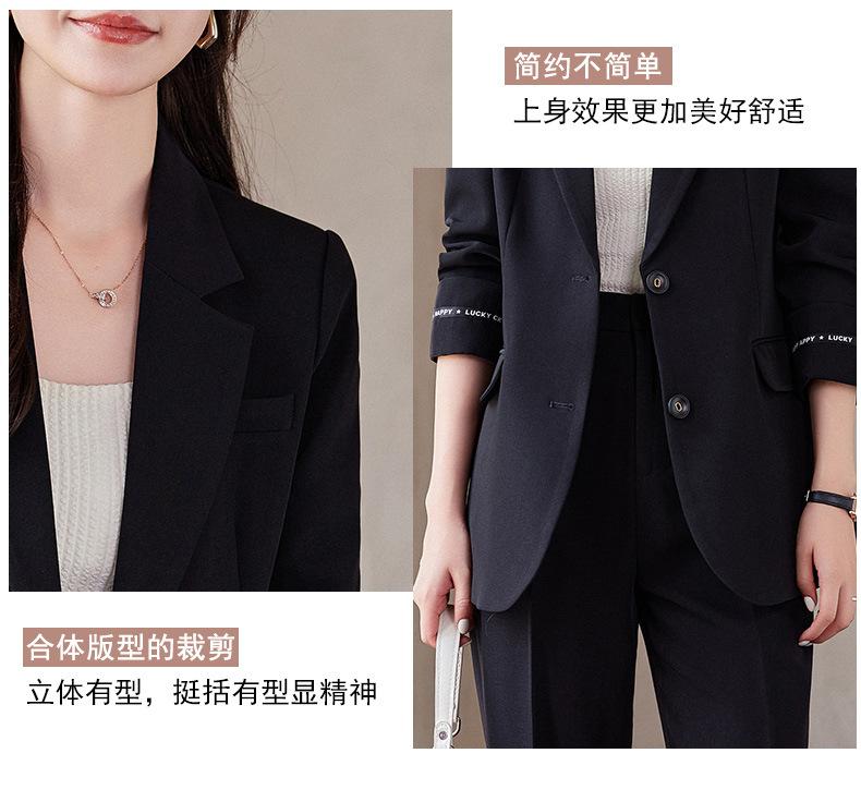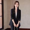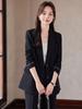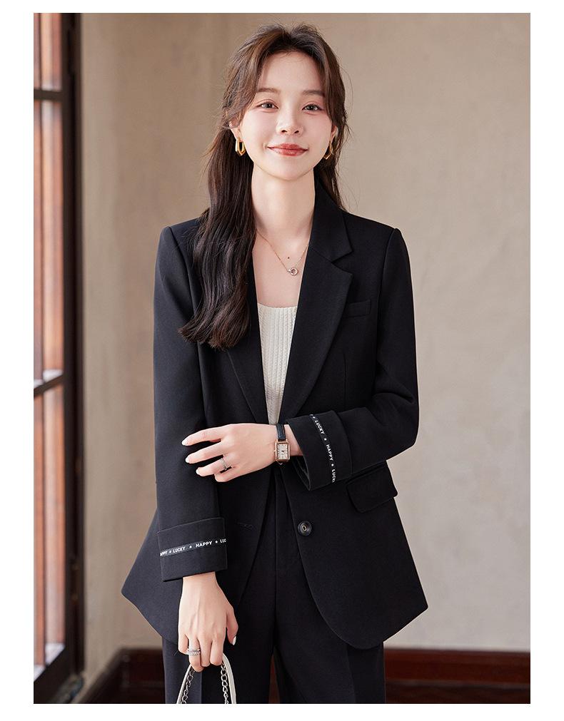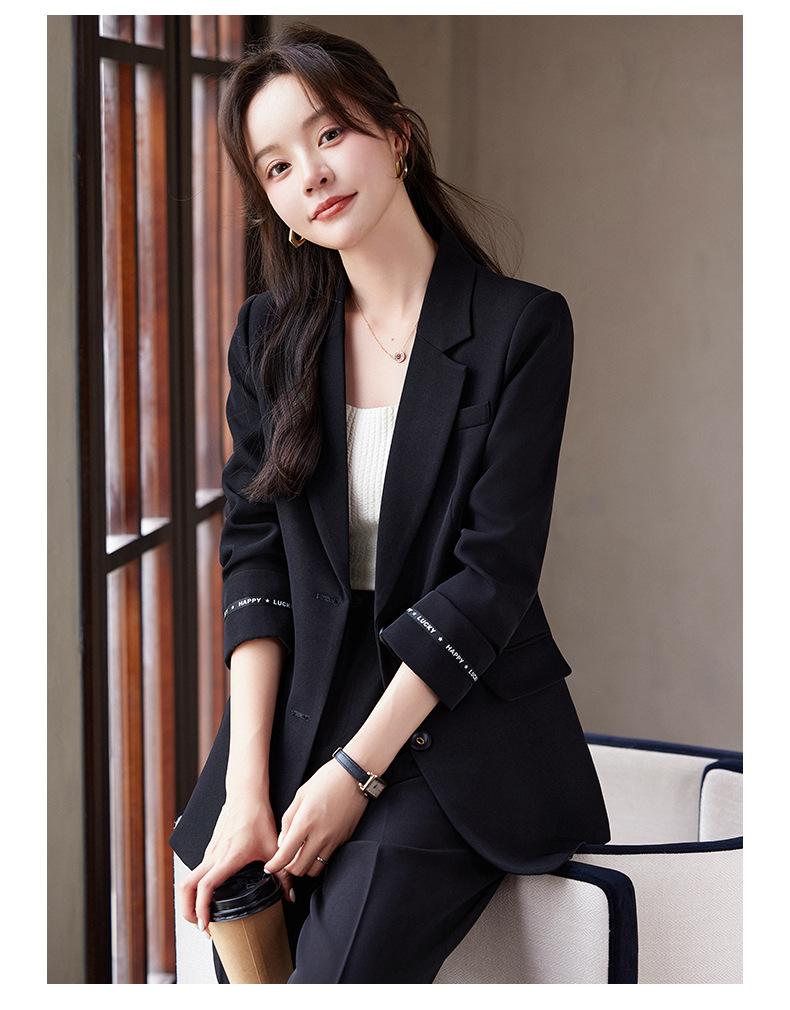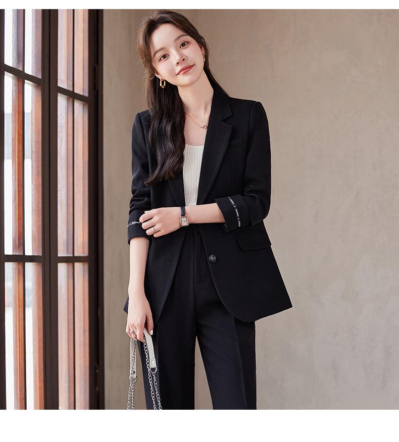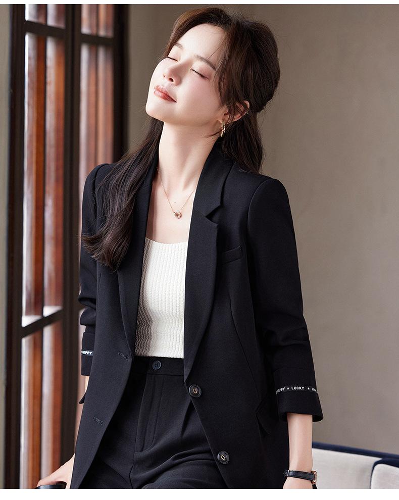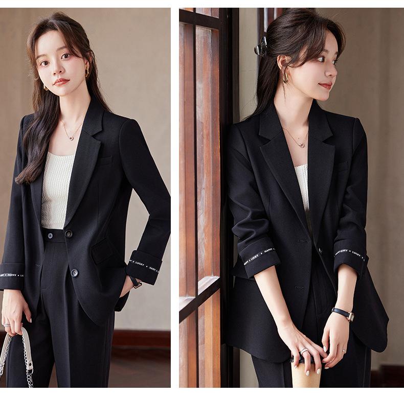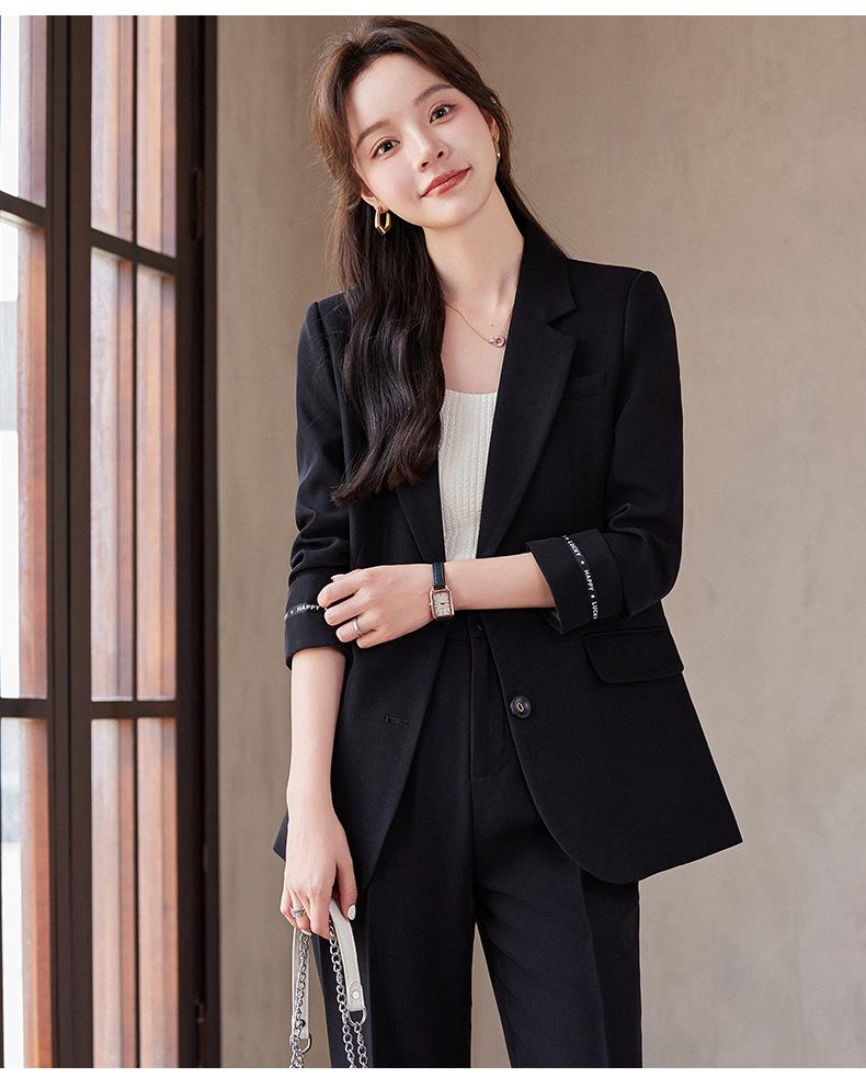 Traje informal de dos piezas para mujer, chaqueta y pantalones, color negro, manga larga, primavera y otoño, 2024