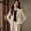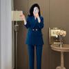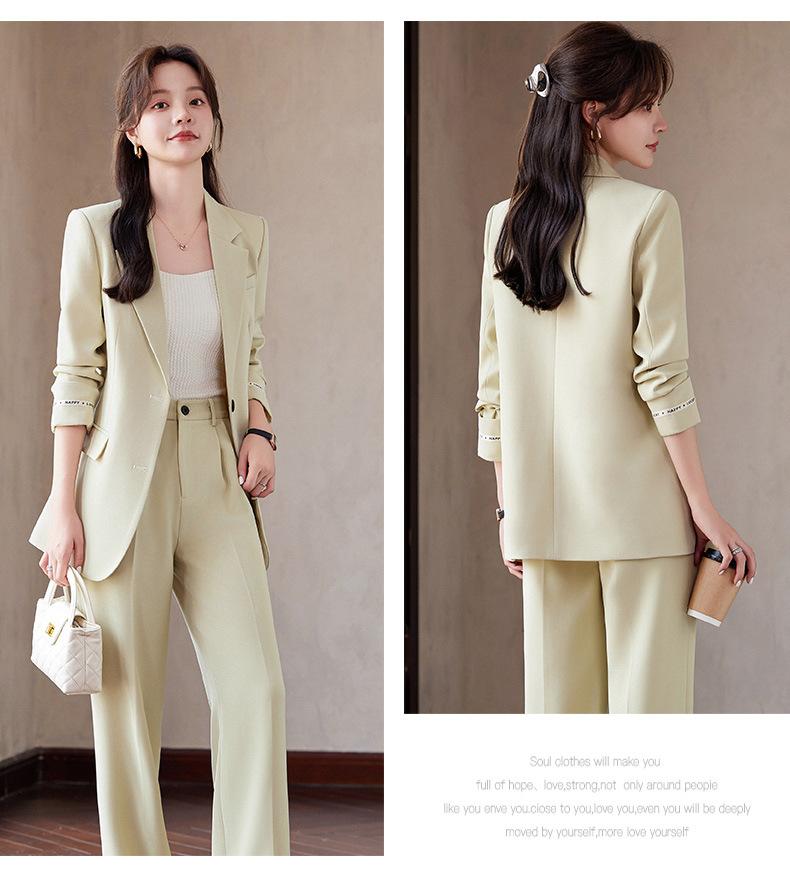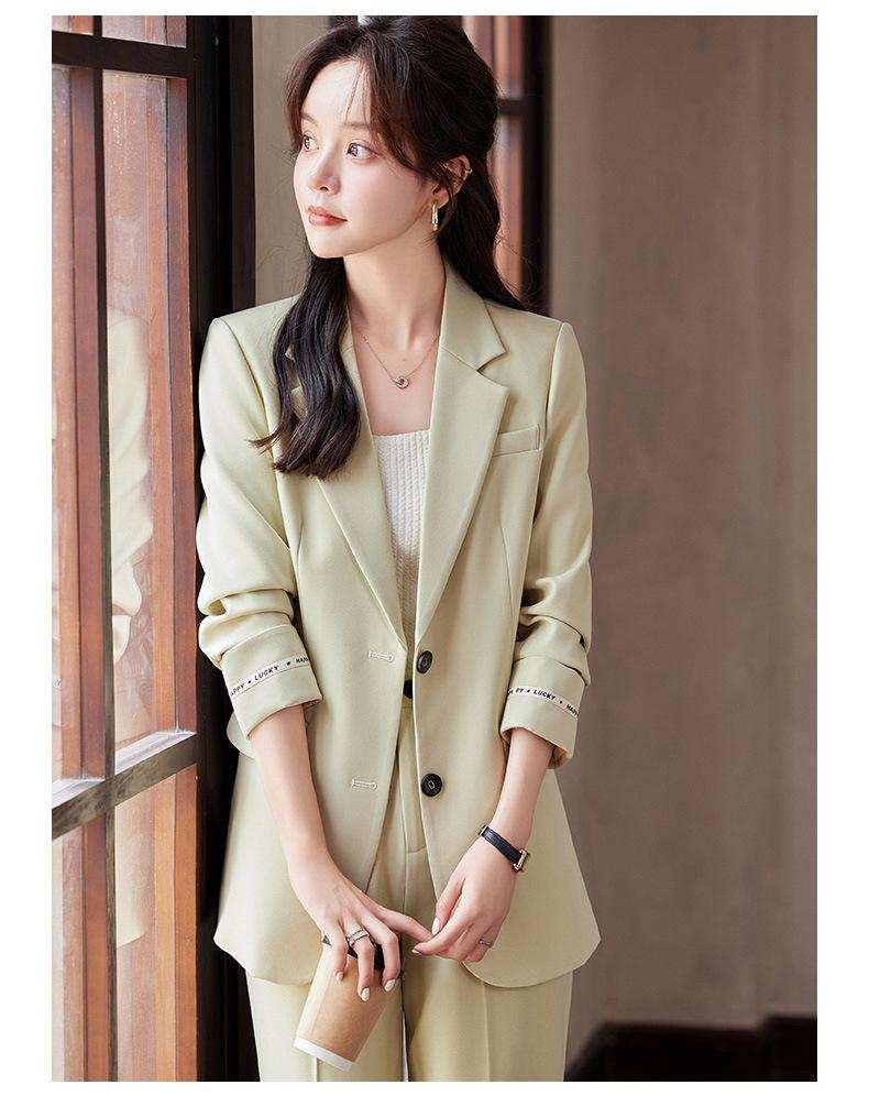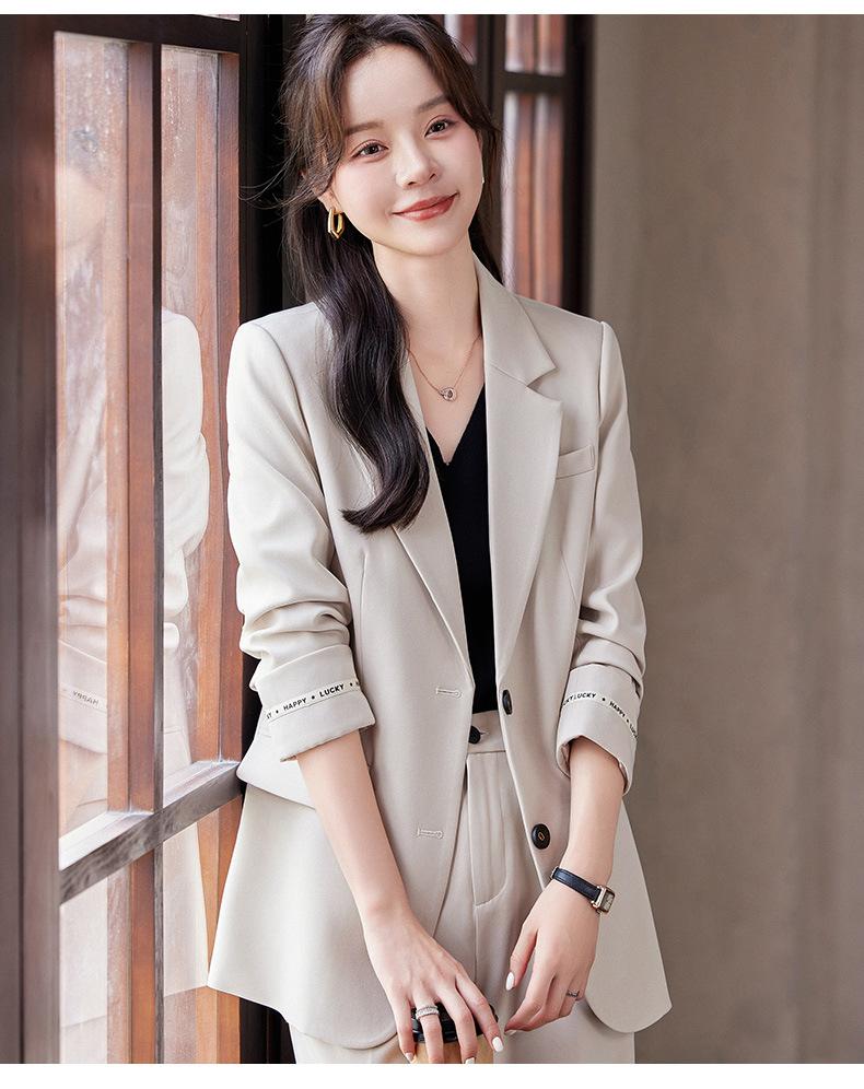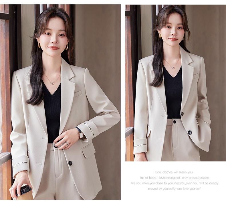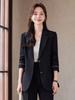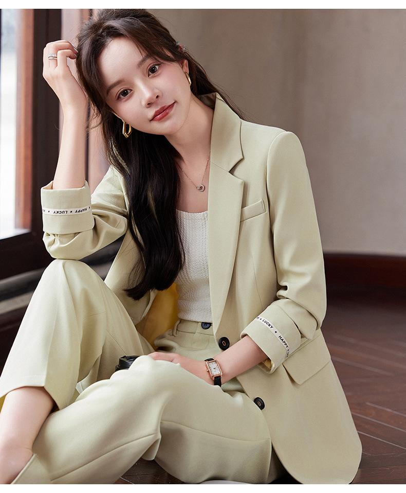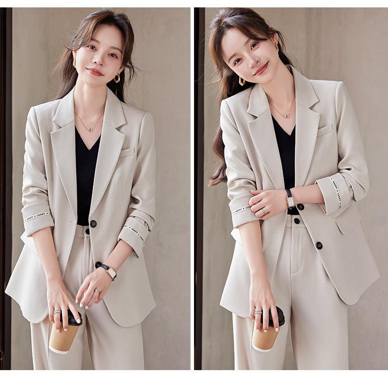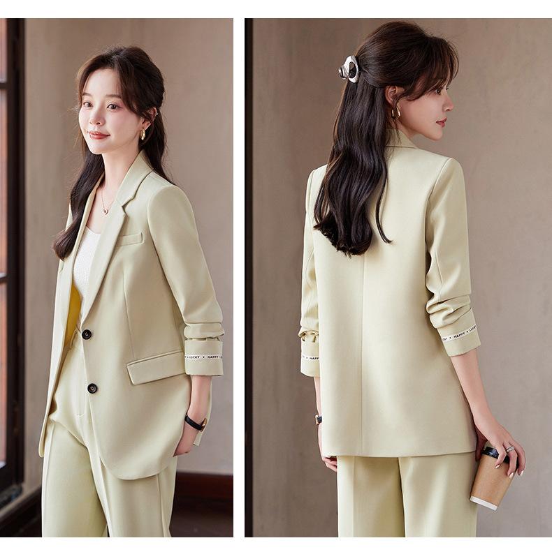 Traje informal de dos piezas para mujer, chaqueta y pantalones, color negro, manga larga, primavera y otoño, 2024