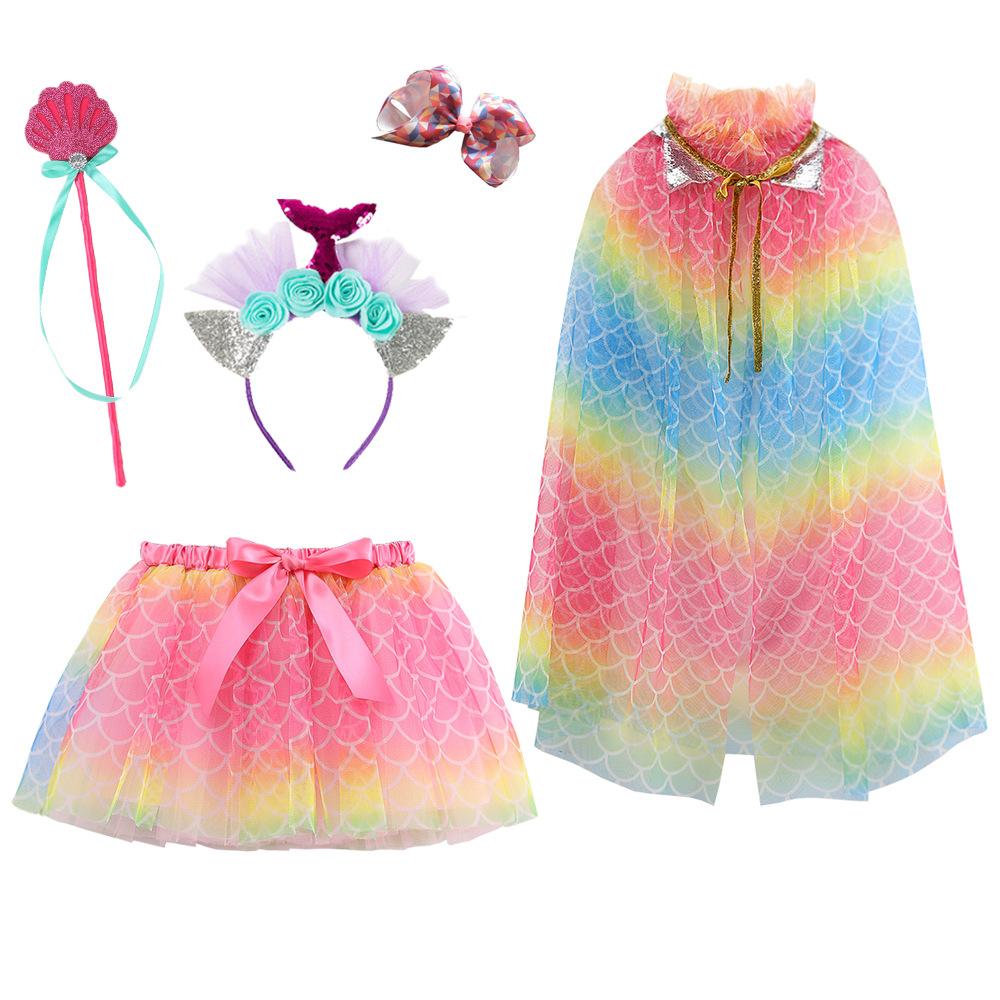 Nueva capa de malla de cinco piezas, falda, serie infantil, traje de actuación, vestido de princesa, capa, actuación infantil