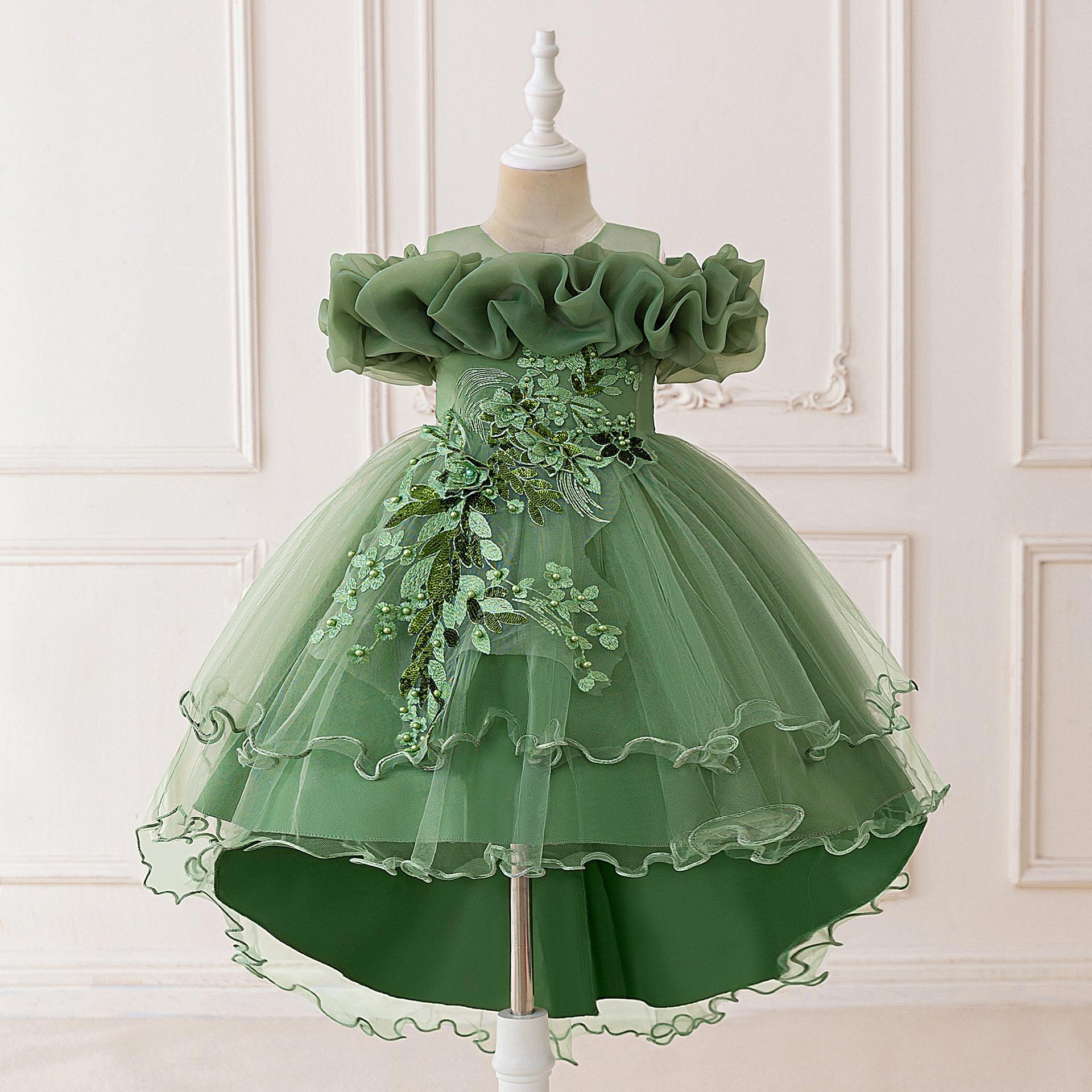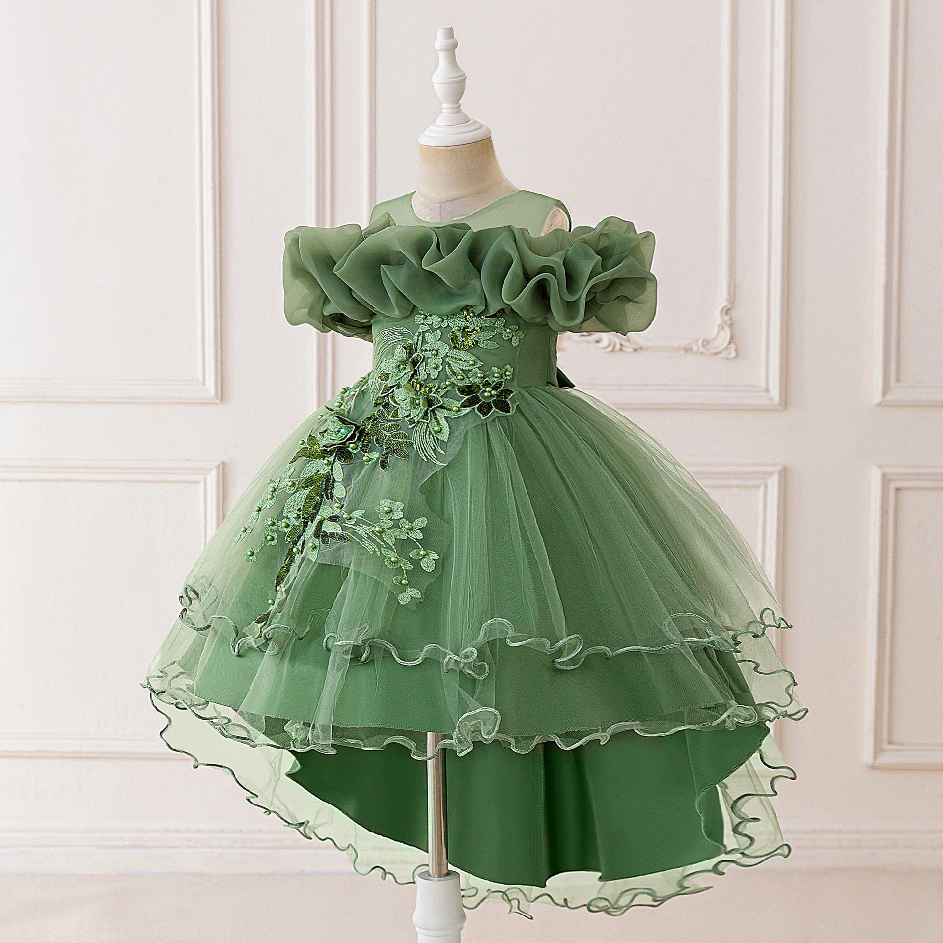 Vestido de Princesa con Lentejuelas para Niños Nuevo Transfronterizo Vestido de Cola para Niña Vestido de Hilo Pop Vestido de Boda Vestido de Actuación Vestido