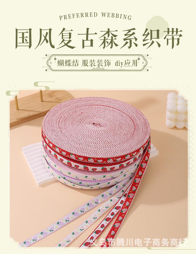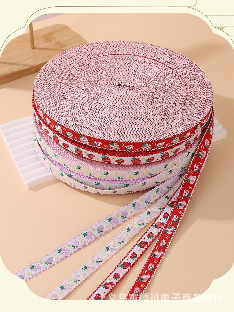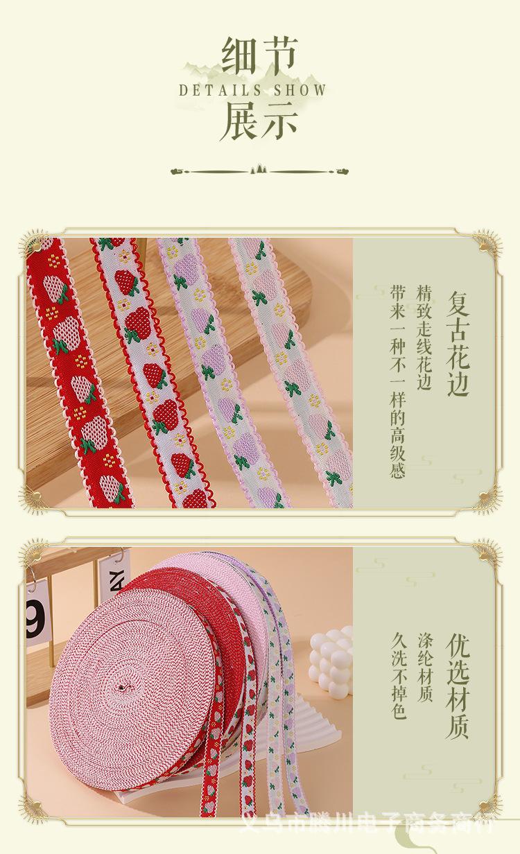 Nueva cinta de fresa bordada de jacquard para embalaje de regalo DIY, accesorios para el cabello, ropa, zapatos, sombreros, accesorios al por mayor