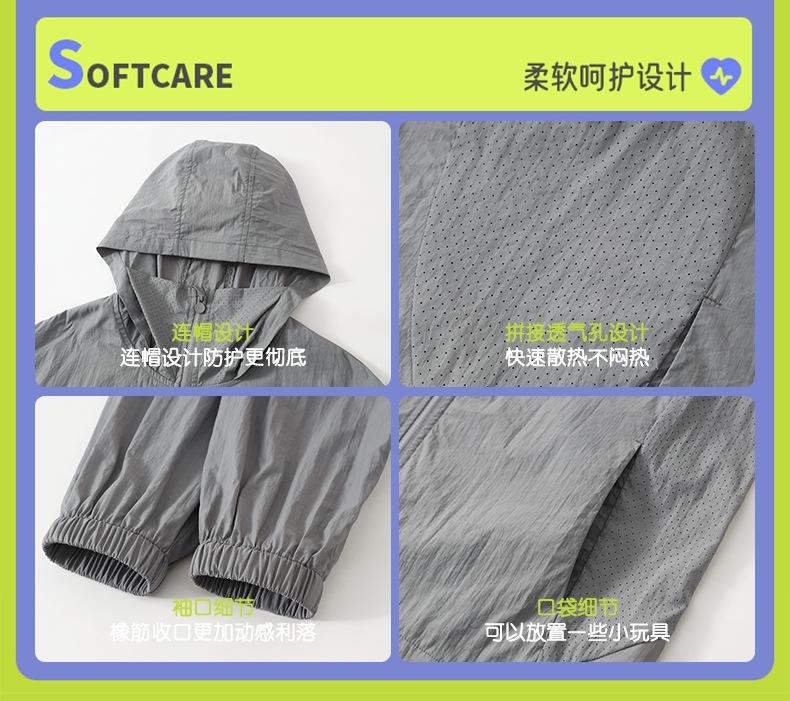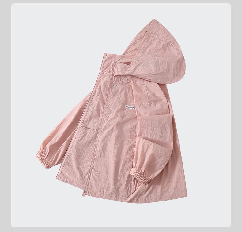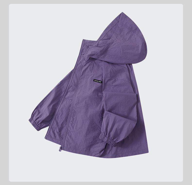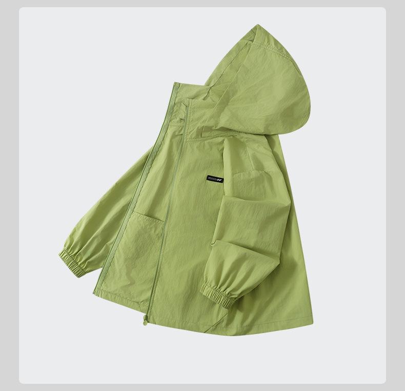 Mi Chun 2025 Ropa Infantil Protectora Solar Ropa Exterior de Moda con Capucha para Niños Medianos y Grandes Color Puro Ropa para la Piel UPF50 Anti-UV
