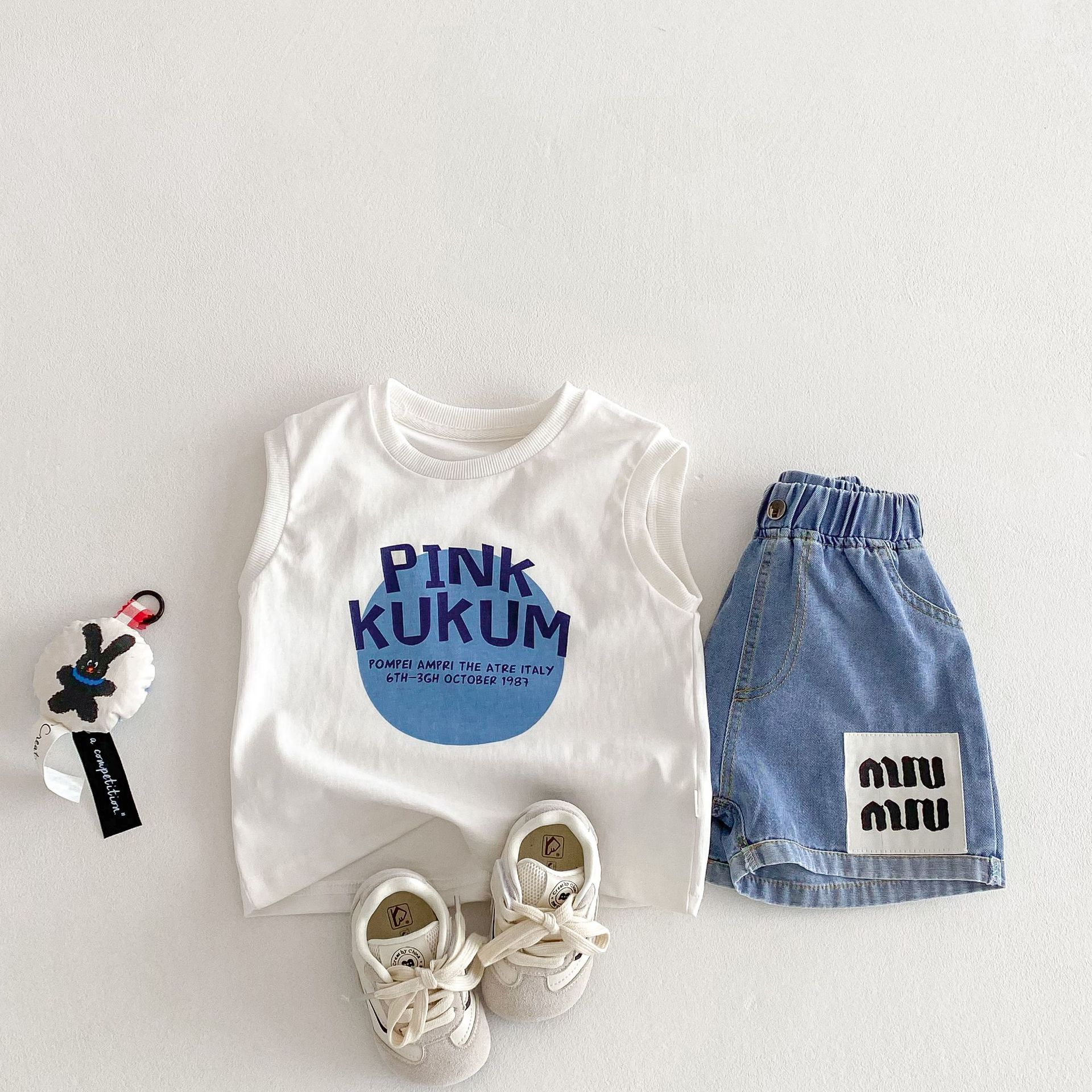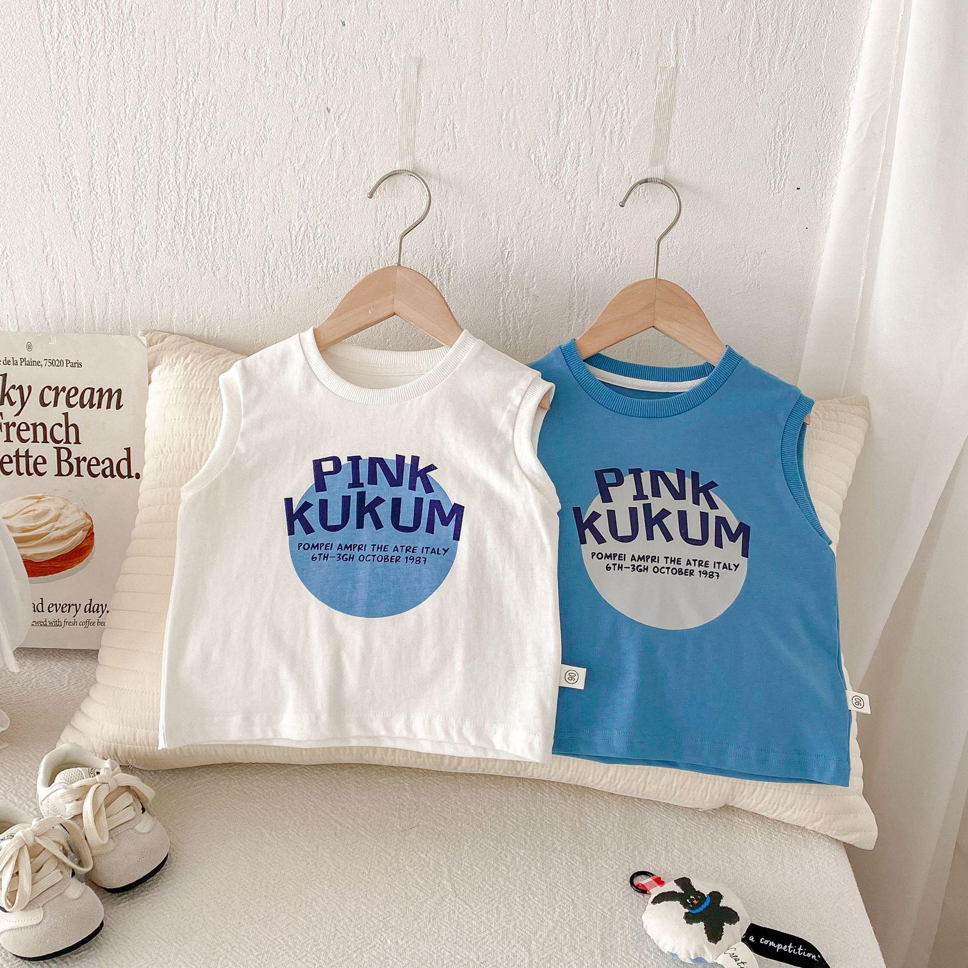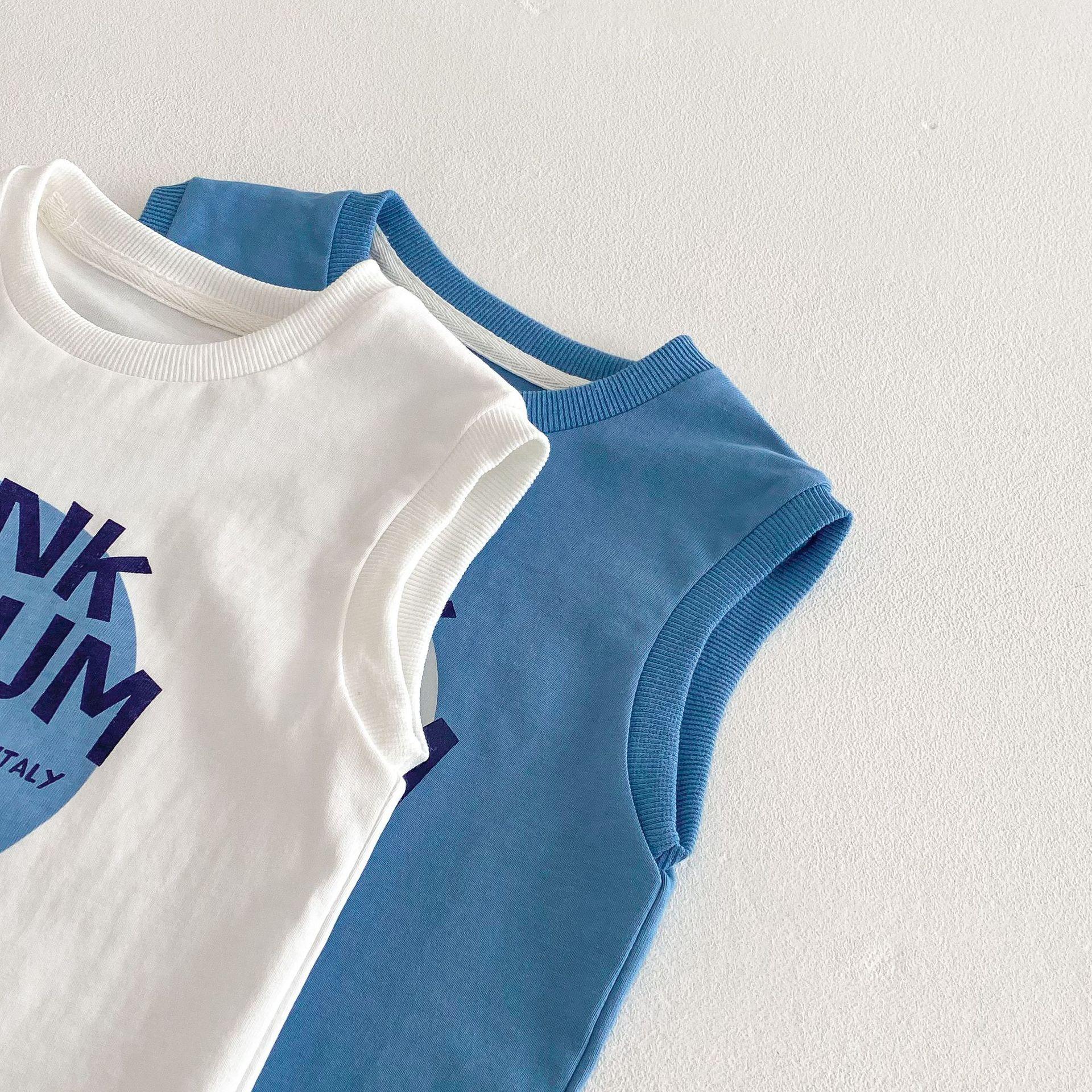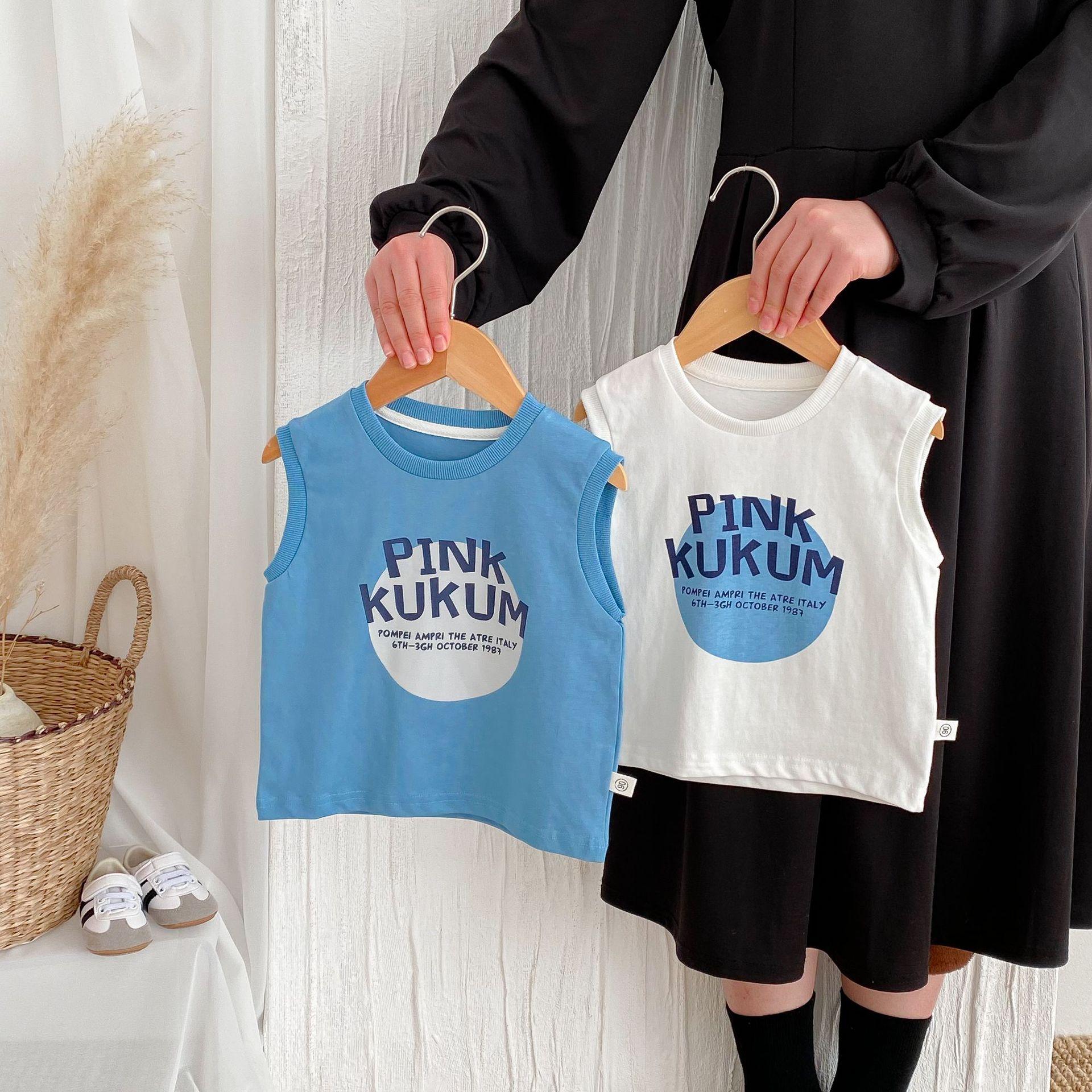 Chaleco informal sin mangas para niños, camiseta de verano de estilo coreano para niños, camiseta con letras de color liso y borde cruzado, 2025