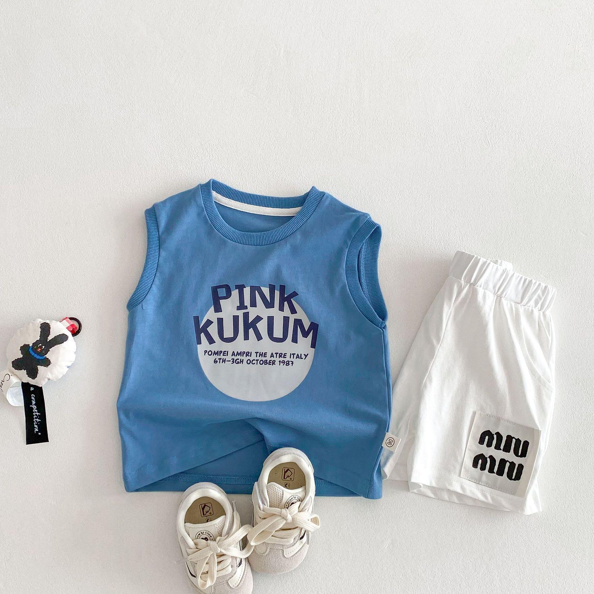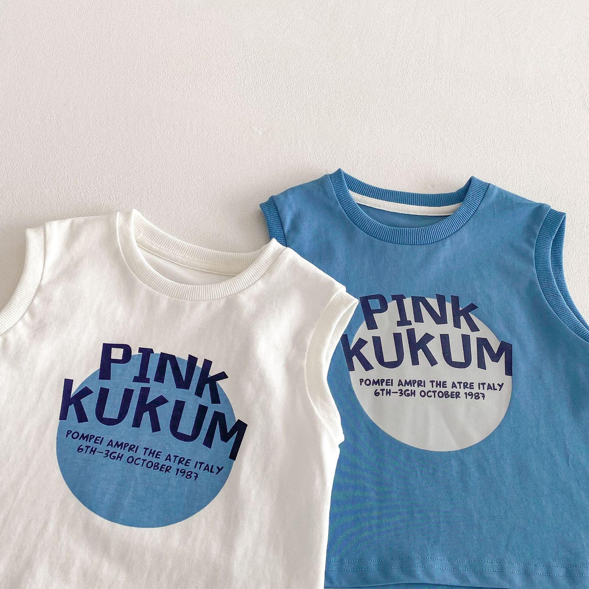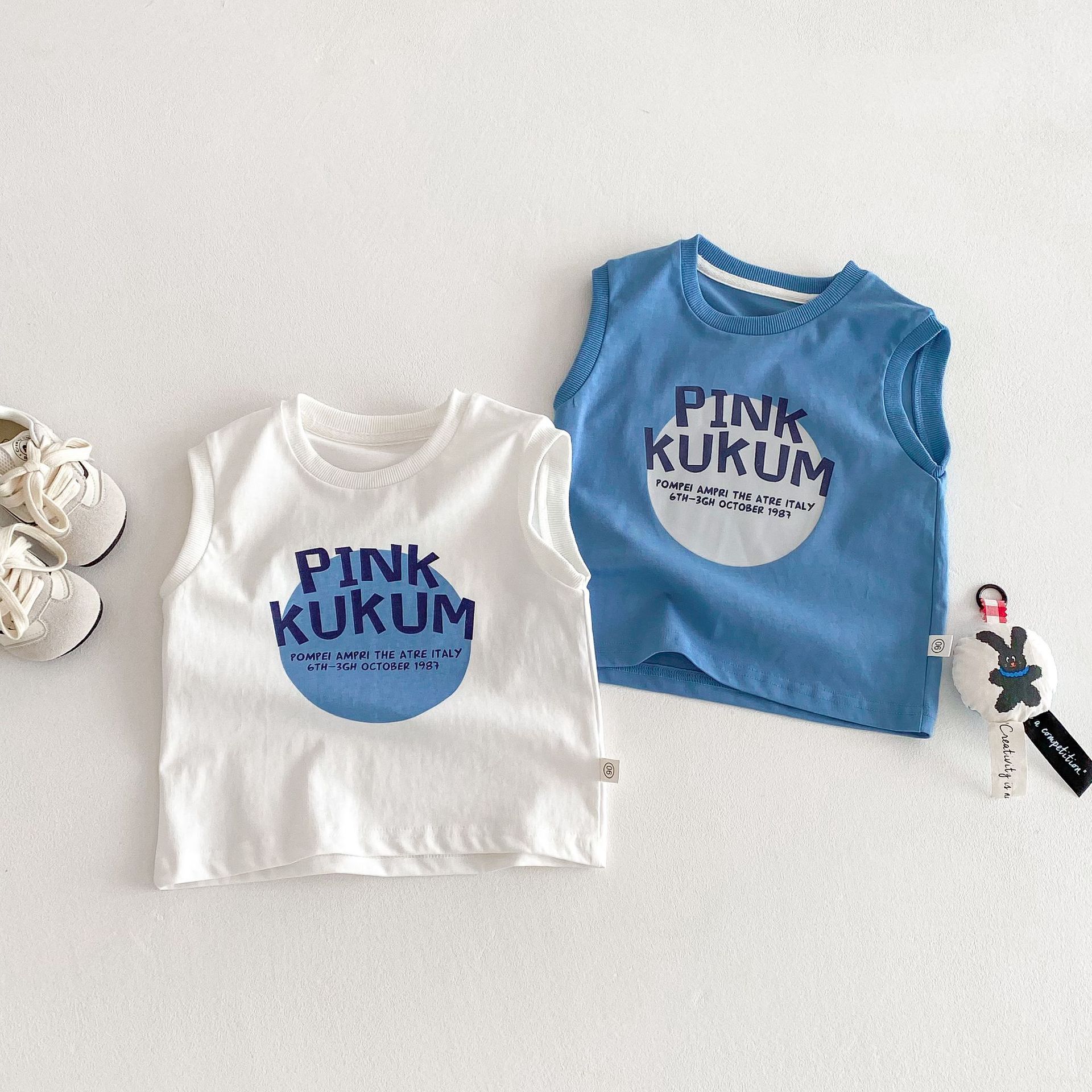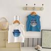 Chaleco informal sin mangas para niños, camiseta de verano de estilo coreano para niños, camiseta con letras de color liso y borde cruzado, 2025