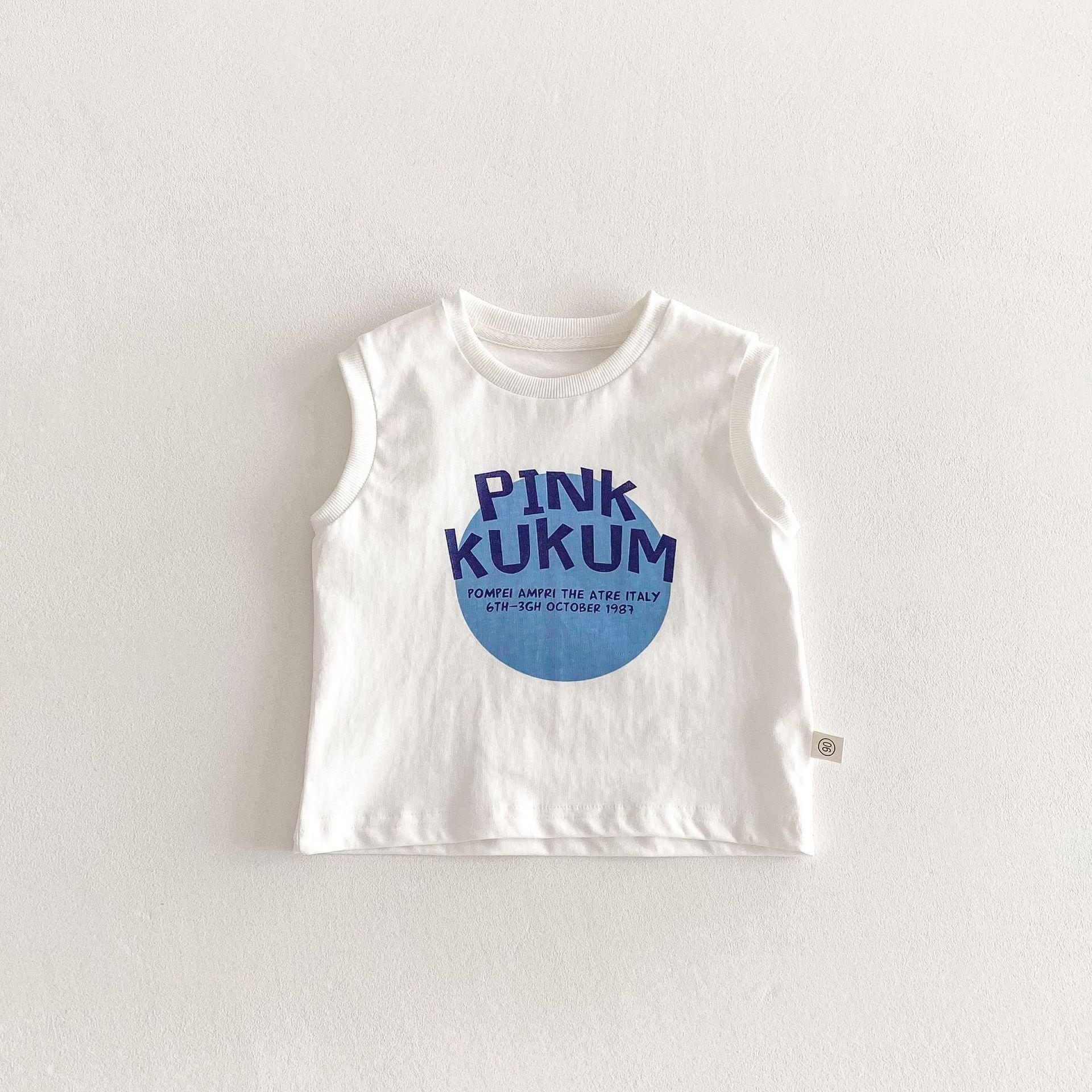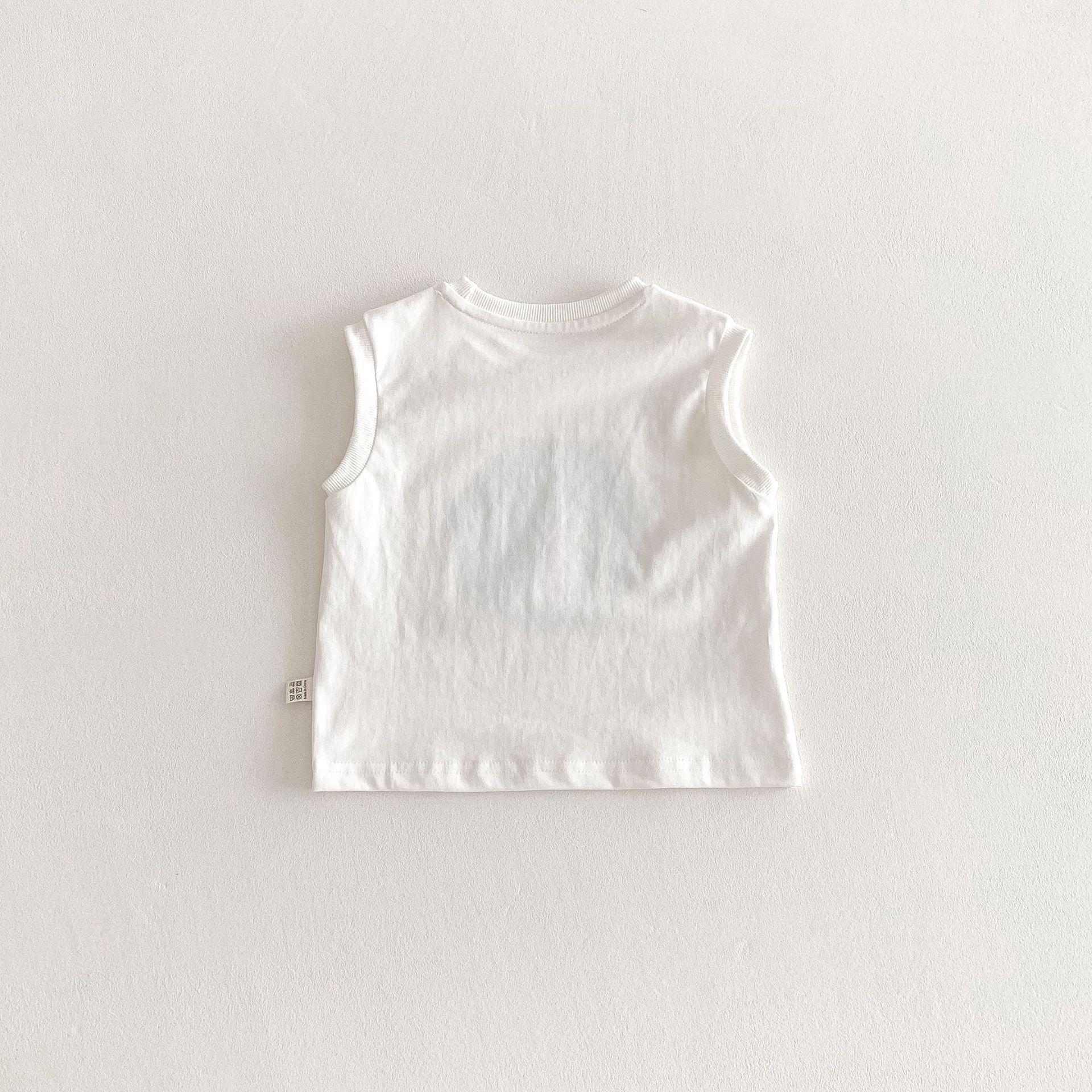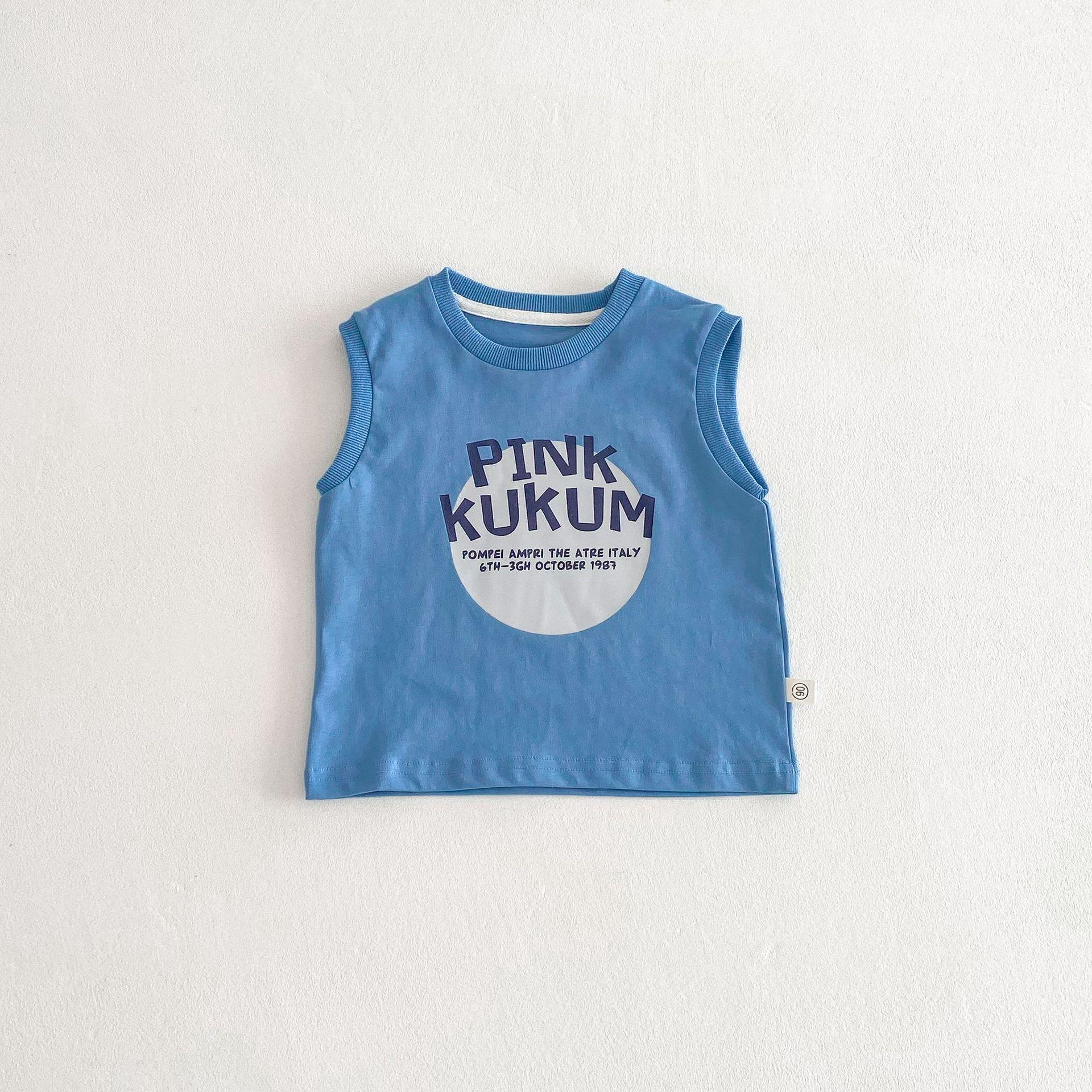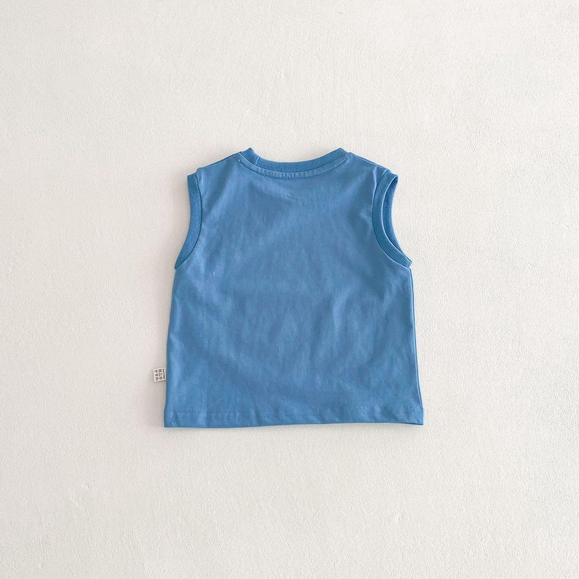 Chaleco informal sin mangas para niños, camiseta de verano de estilo coreano para niños, camiseta con letras de color liso y borde cruzado, 2025