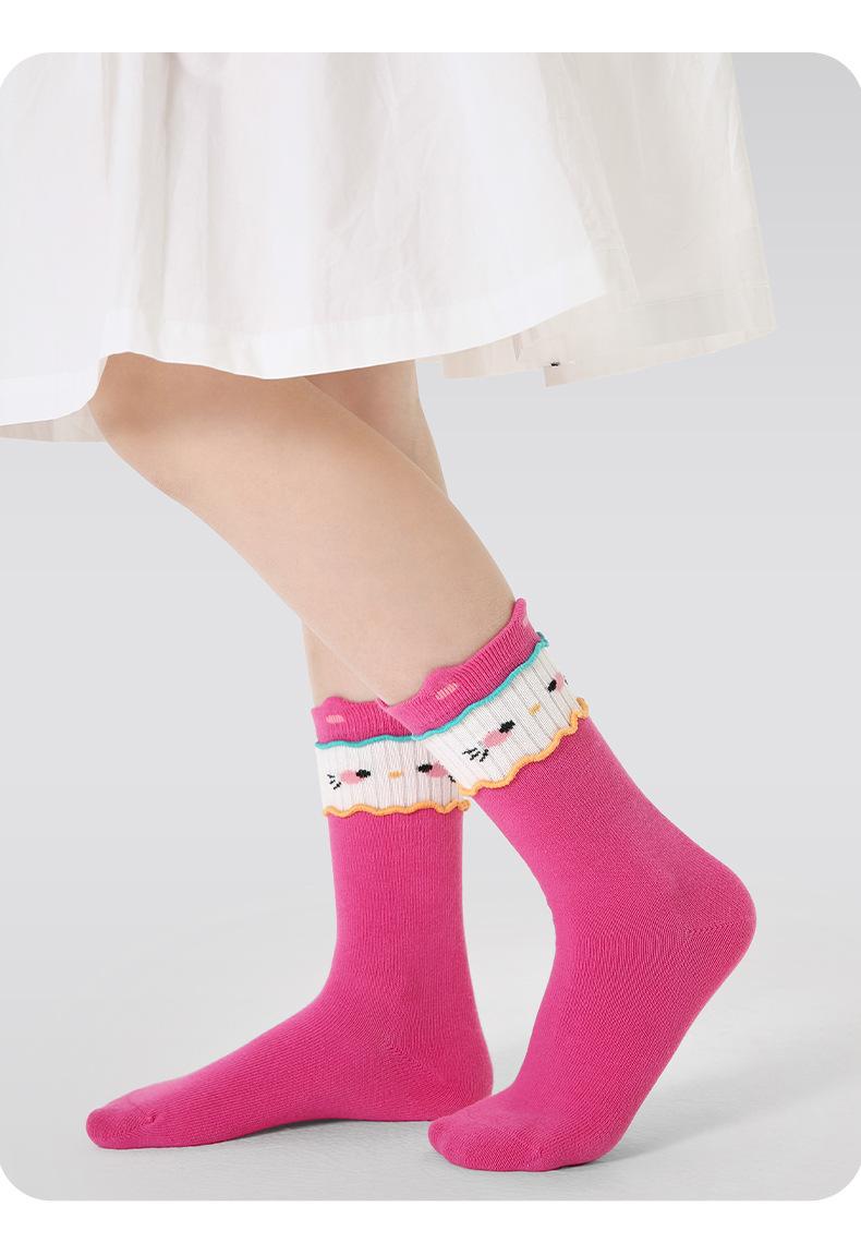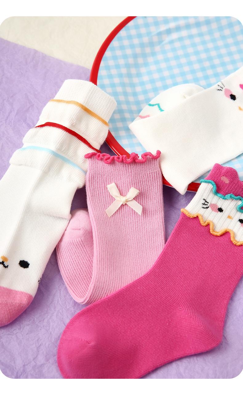 1801 calcetines para niños al por mayor 2025 primavera gato de dibujos animados calcetines de tubo para bebé algodón sin costuras encaje calcetines para niñas
