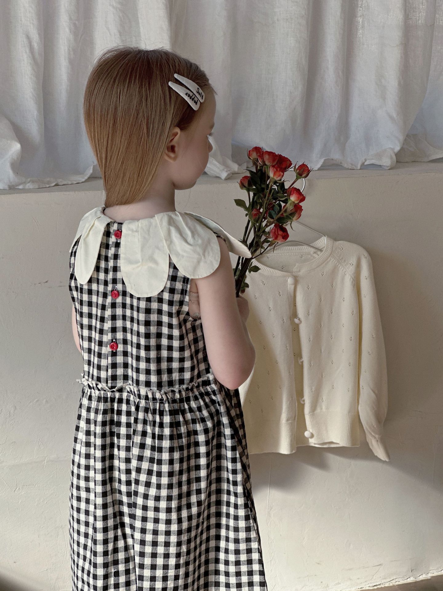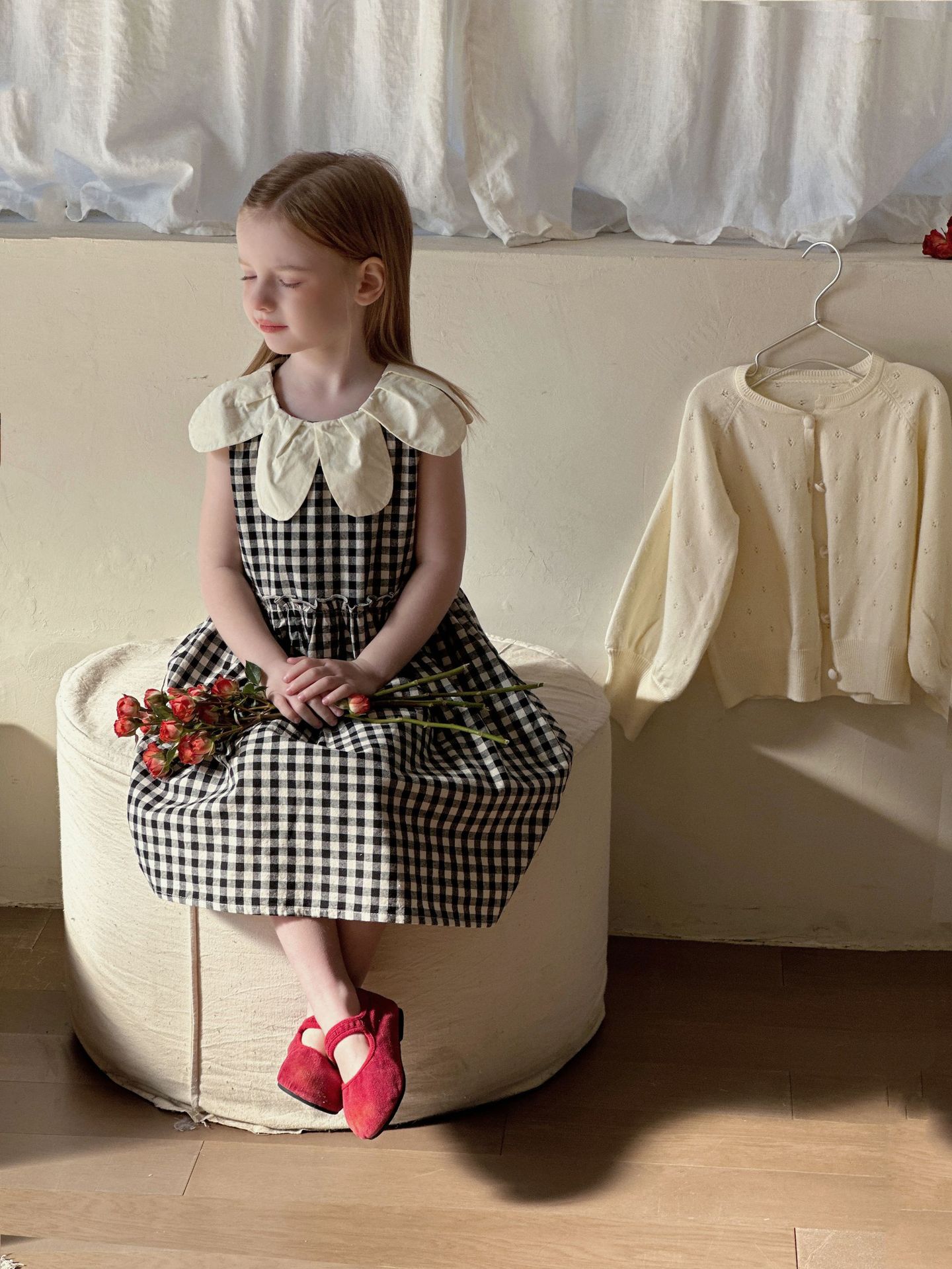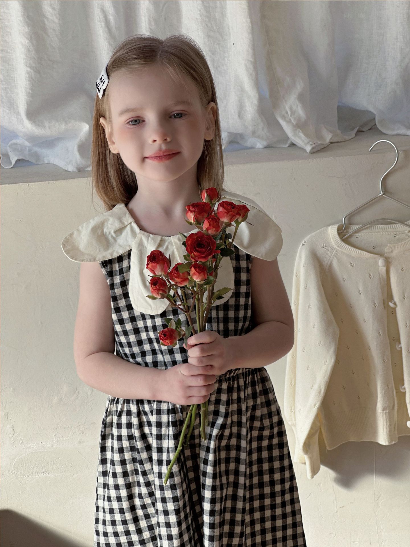 Vestido de Niña 2025 Verano Nuevo Estilo Coreano Vestido de Princesa sin Mangas para Niños Vestido de Bebé a Cuadros con Cuello de Encaje