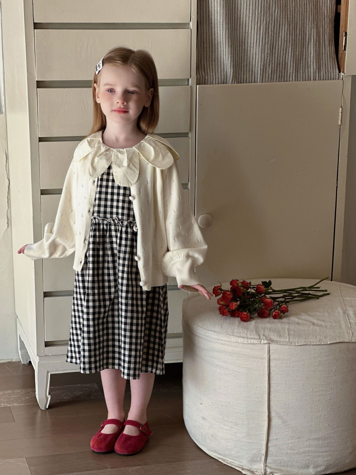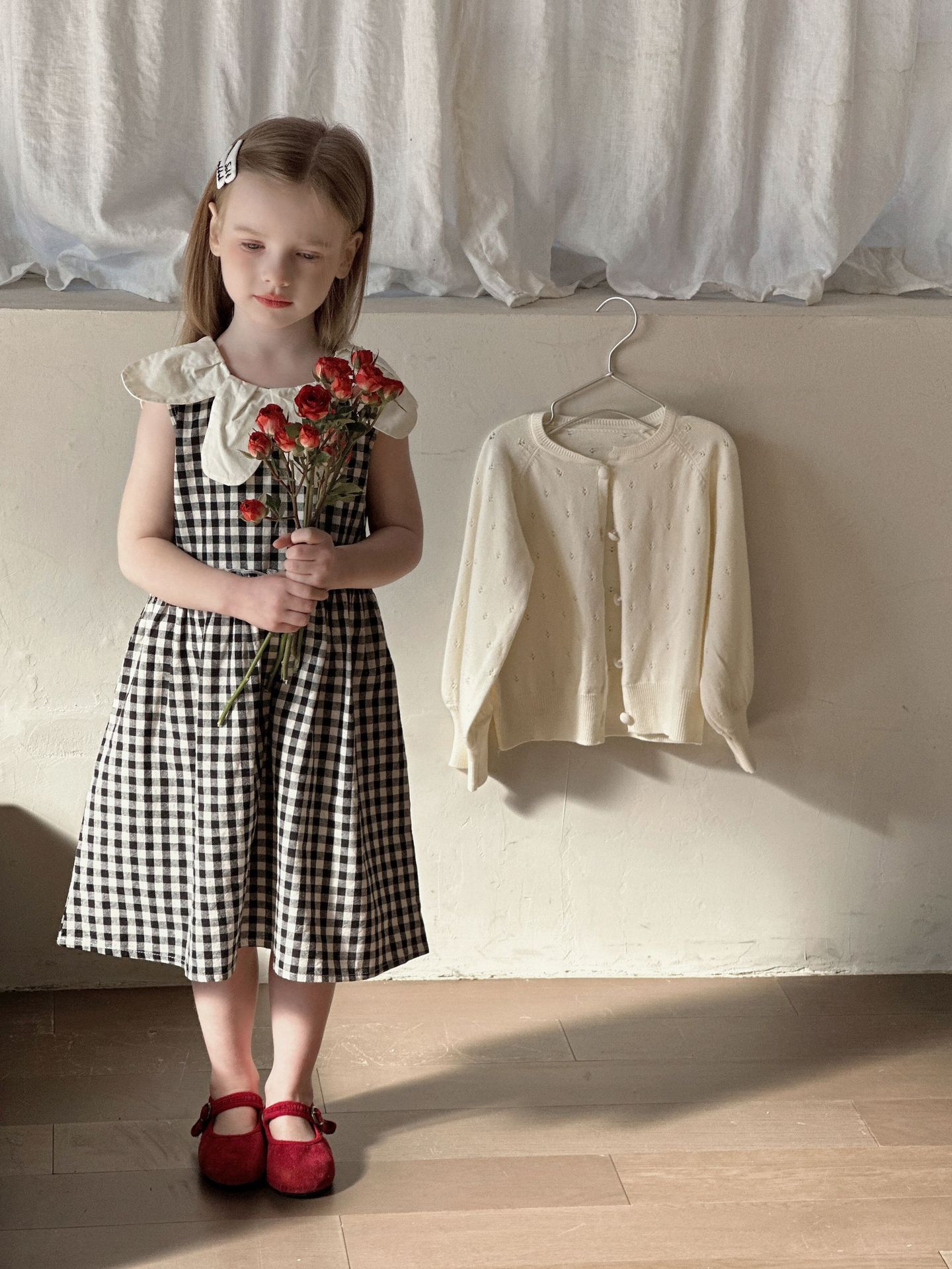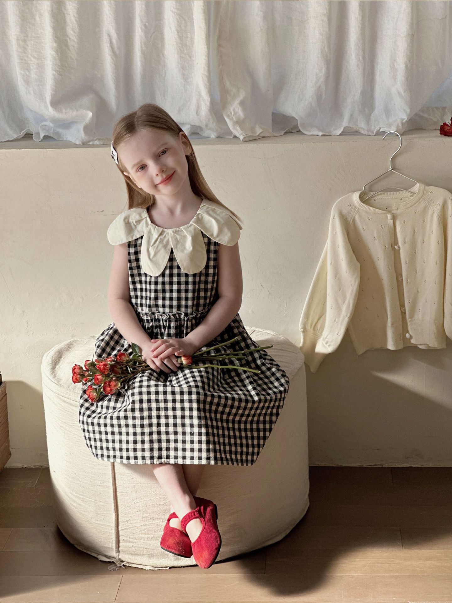 Vestido de Niña 2025 Verano Nuevo Estilo Coreano Vestido de Princesa sin Mangas para Niños Vestido de Bebé a Cuadros con Cuello de Encaje