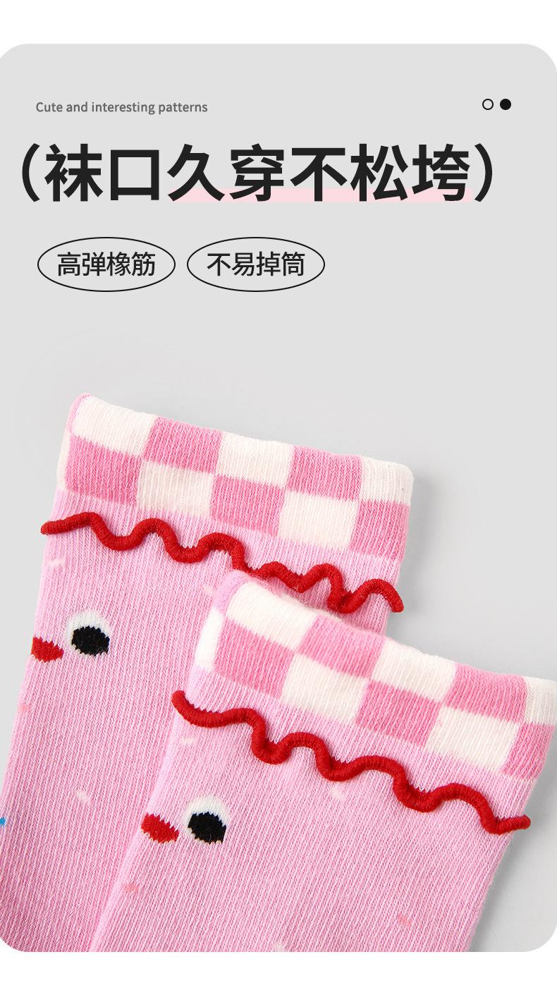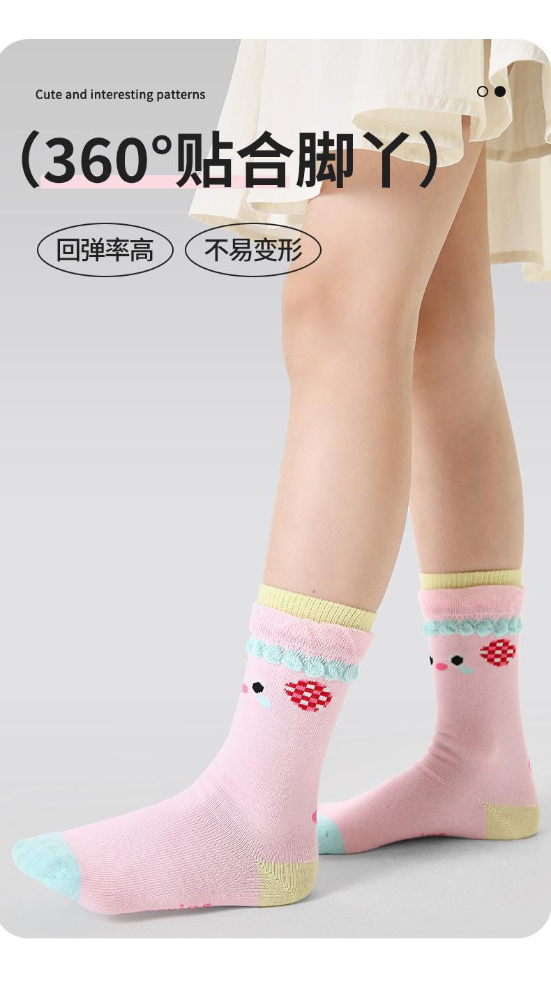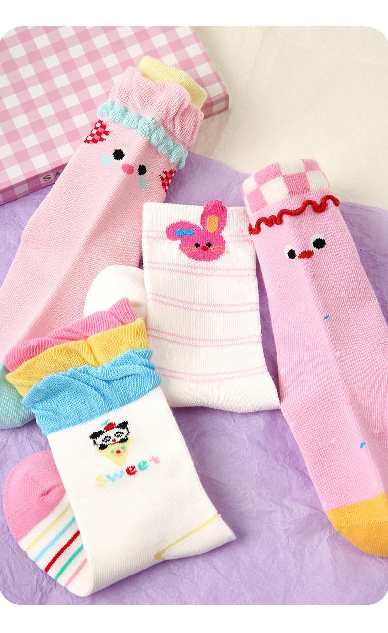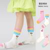 Calcetines para niños al por mayor, primavera 2025, con expresión de dibujos animados, calcetines de tubo para bebés, calcetines de algodón sin hueso con encaje a rayas para niñas.