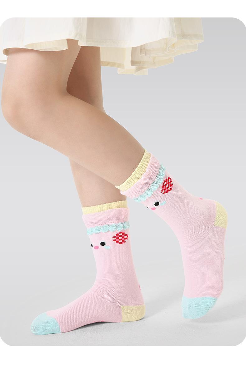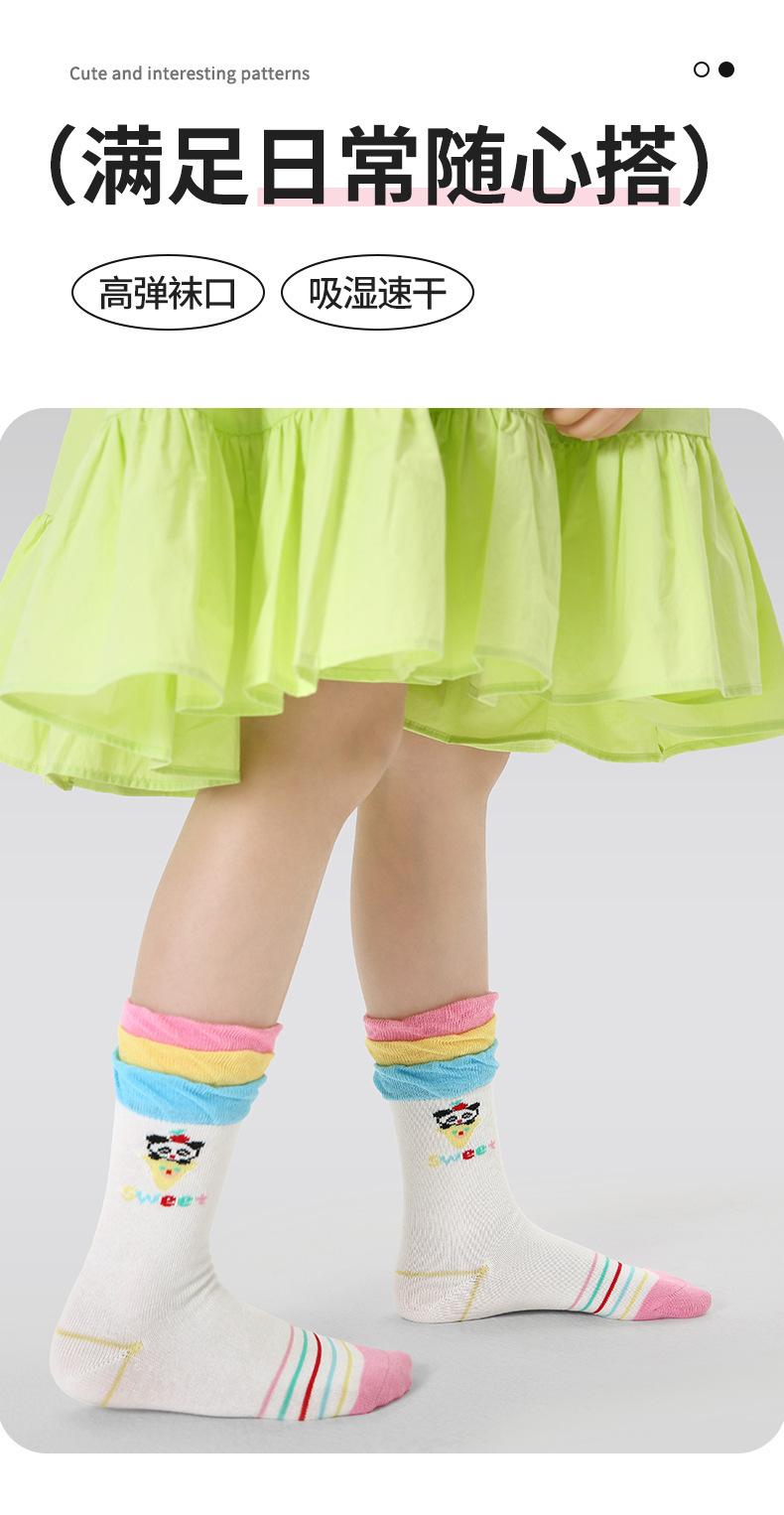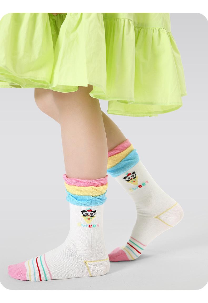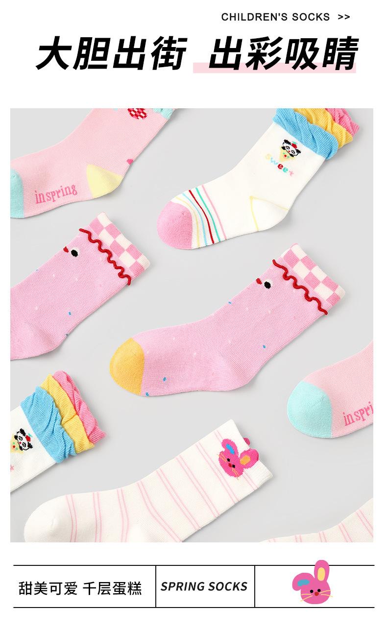 Calcetines para niños al por mayor, primavera 2025, con expresión de dibujos animados, calcetines de tubo para bebés, calcetines de algodón sin hueso con encaje a rayas para niñas.