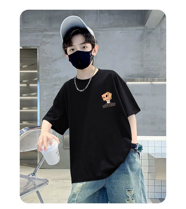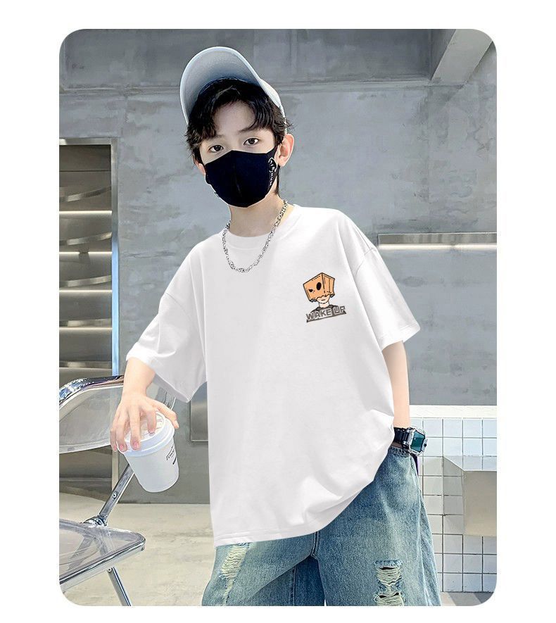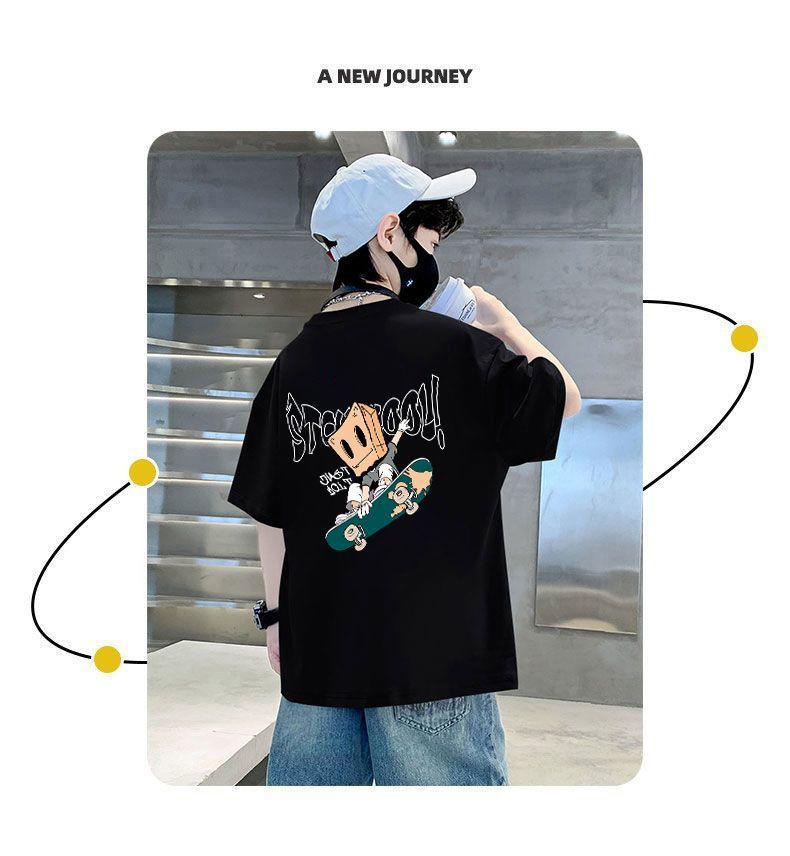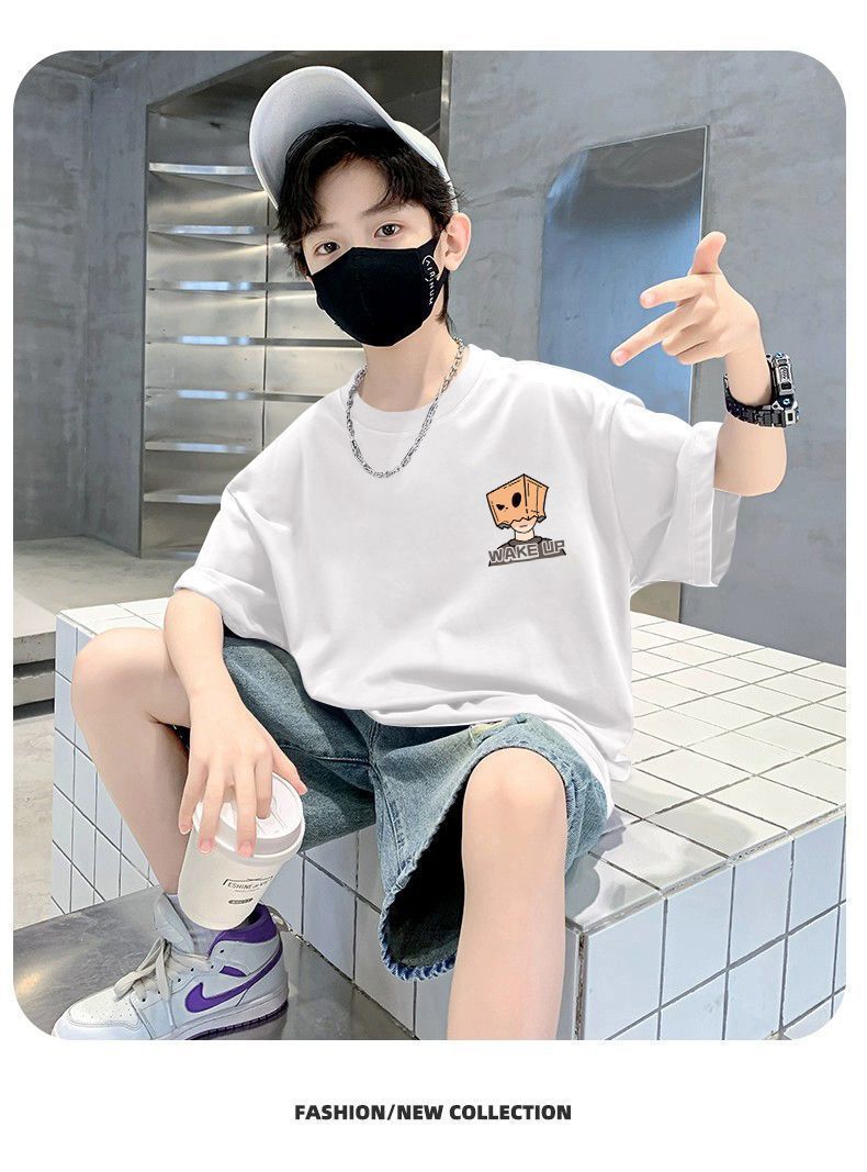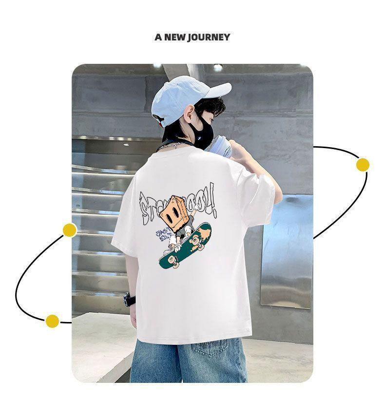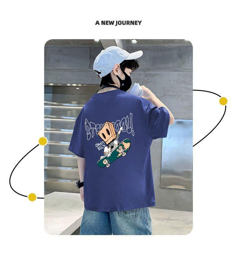 Camiseta de manga corta para niños, de algodón, con estampado de dibujos animados, para verano, para bebés de talla mediana y grande.
