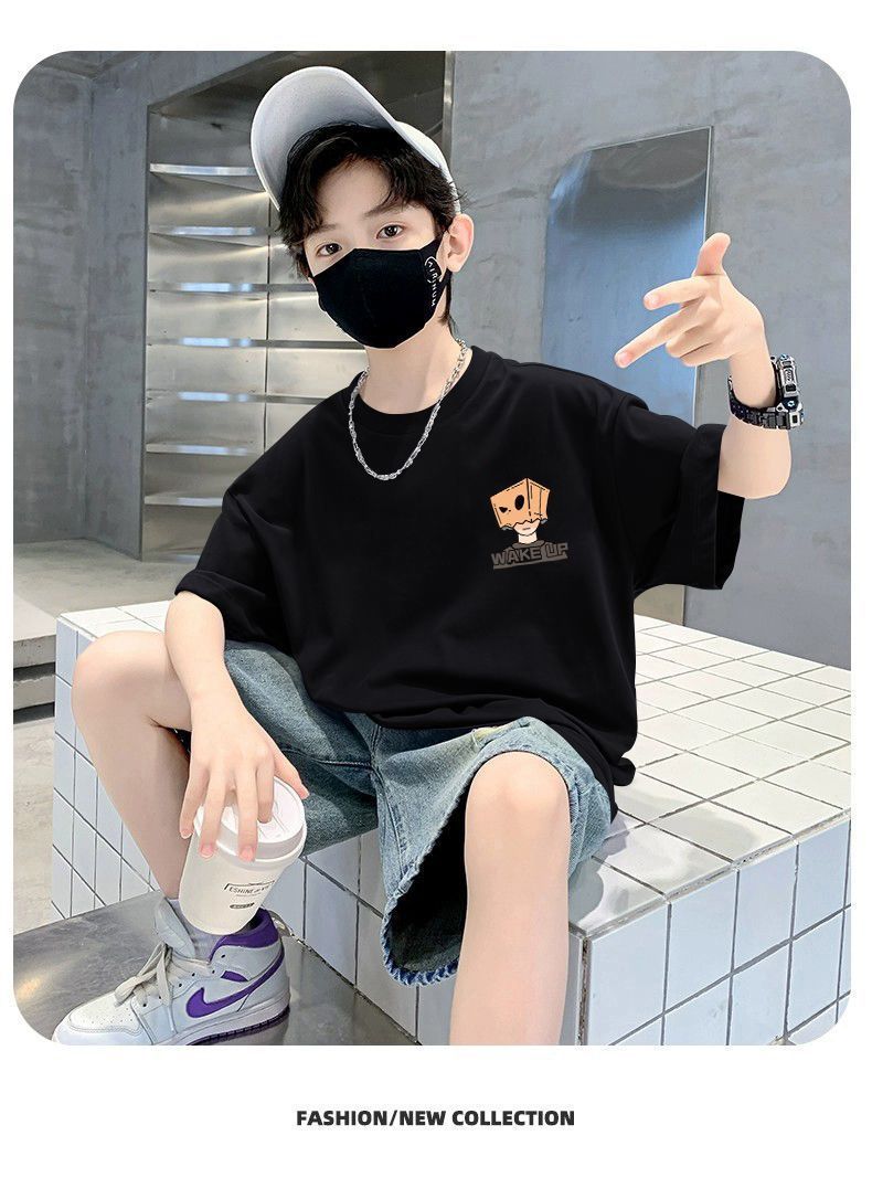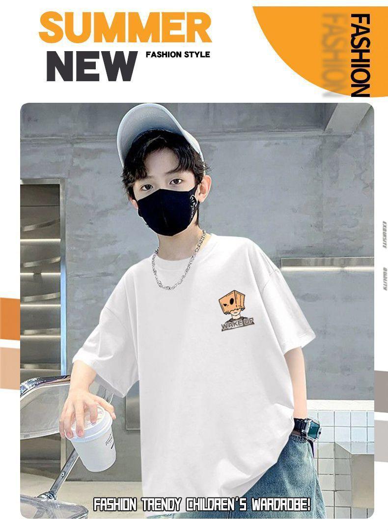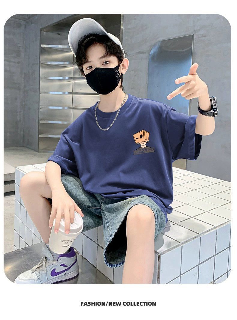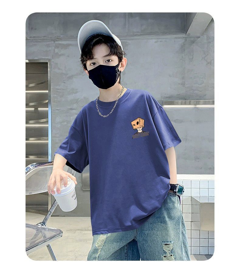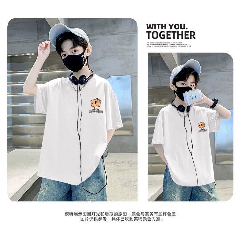 Camiseta de manga corta para niños, de algodón, con estampado de dibujos animados, para verano, para bebés de talla mediana y grande.