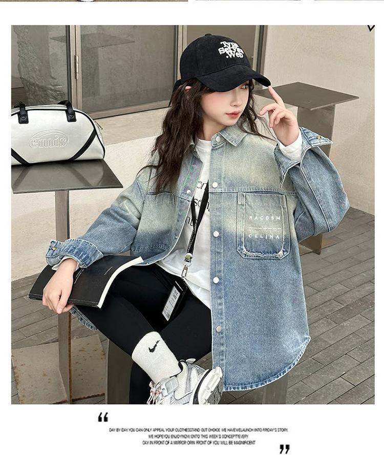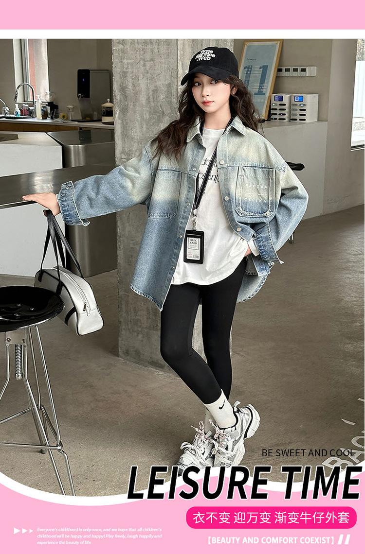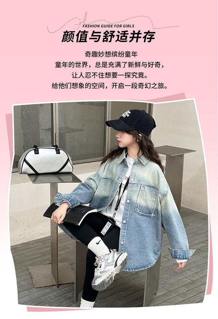 Camisa vaquera de moda para niñas, primavera y otoño de 2025, nueva chaqueta de estilo occidental para niños, top de primavera de moda para niños grandes.