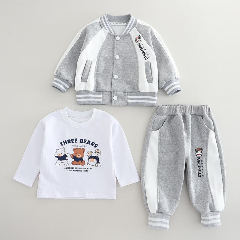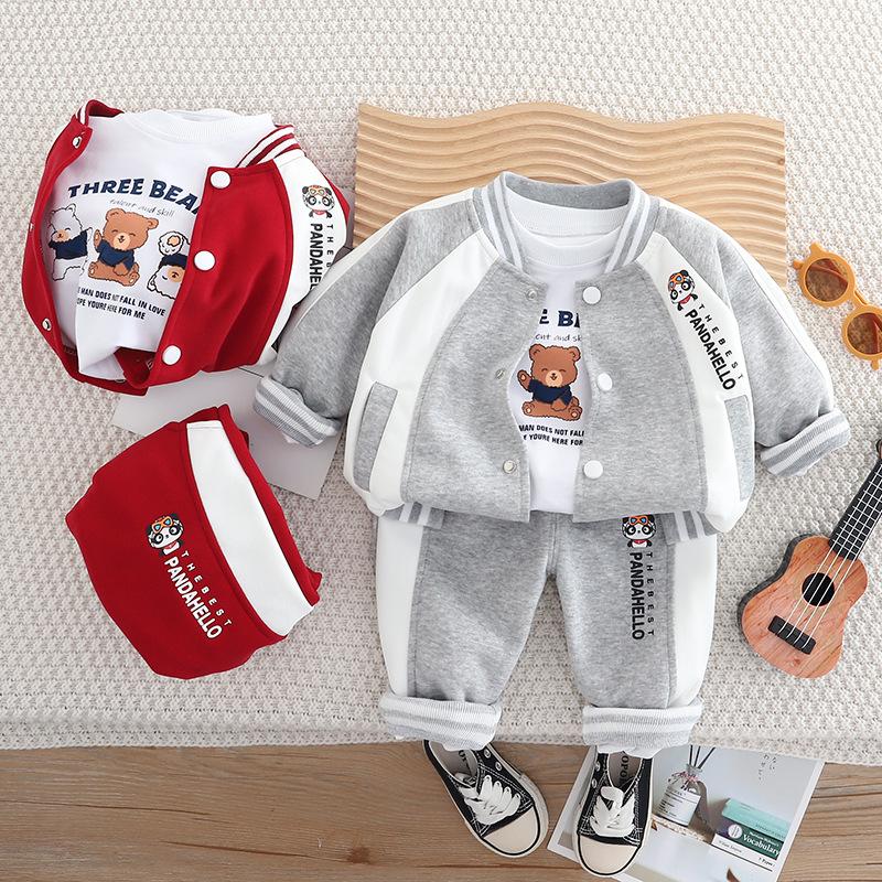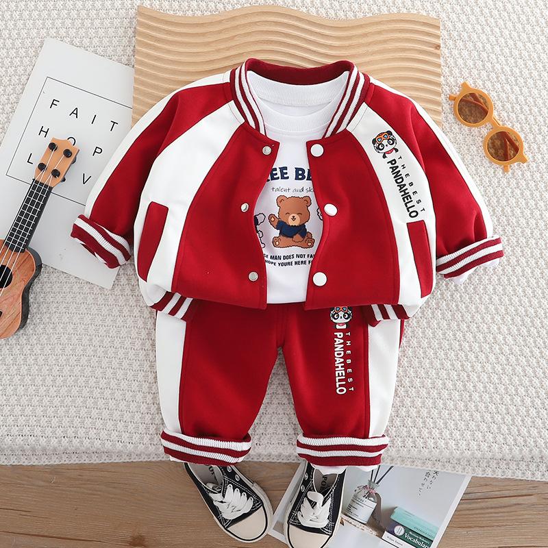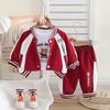 Traje de primavera para niño 2025 Nuevo Ropa guapa para bebé y niño Traje de béisbol de tres piezas Moda infantil de primavera y otoño