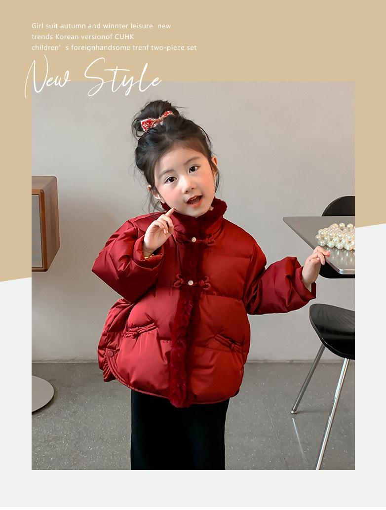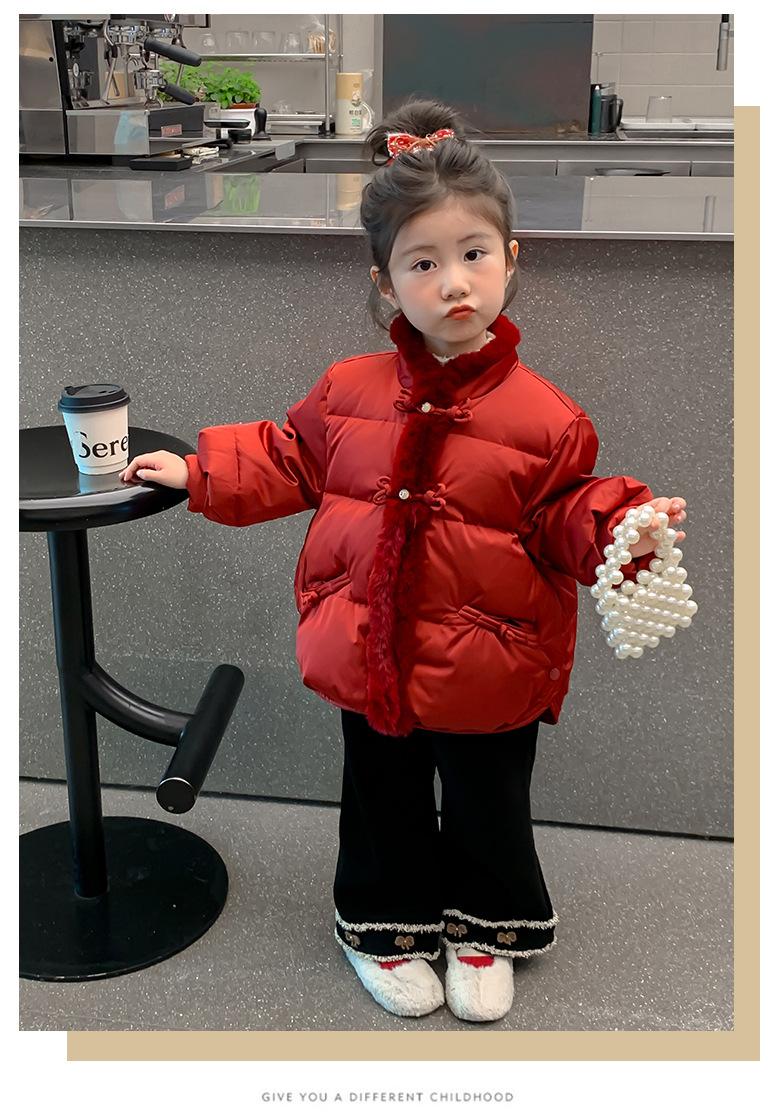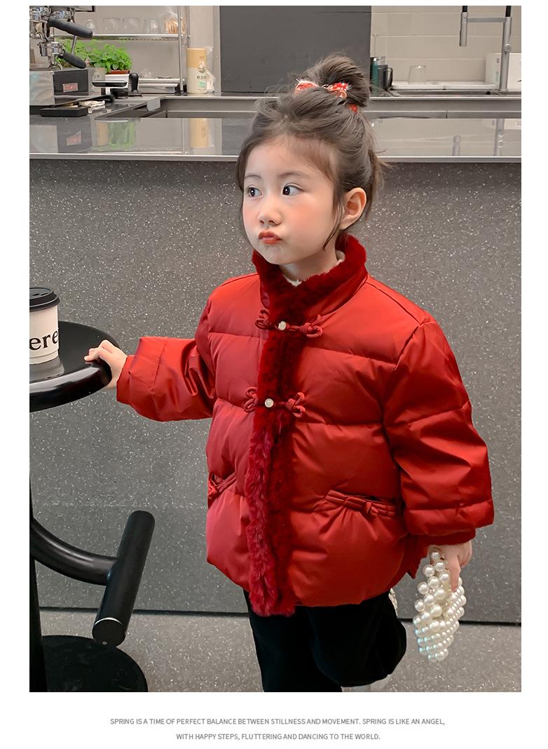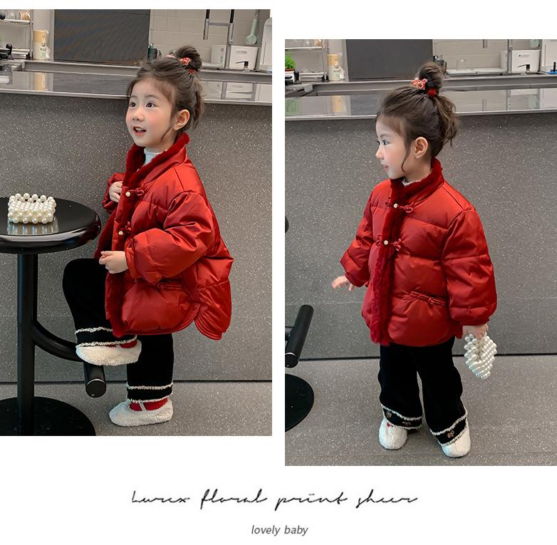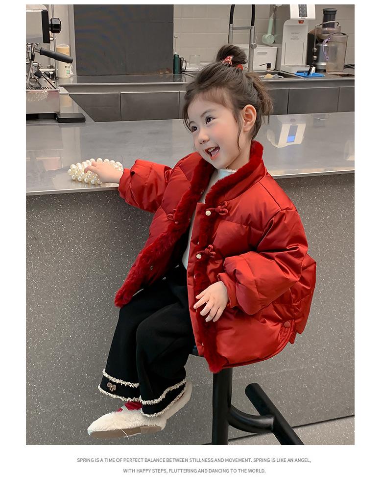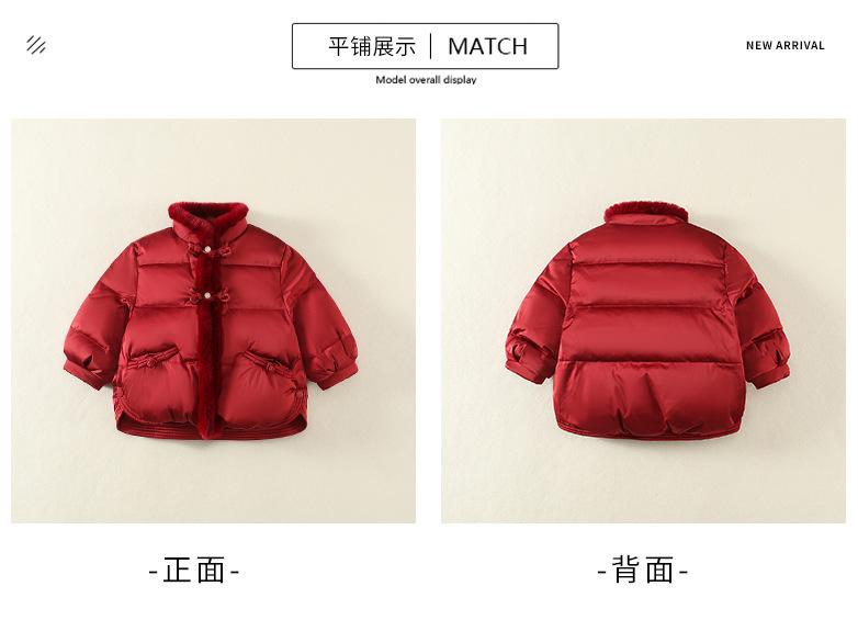 Chaqueta de plumón para niña 2025 Nuevo estilo chino Chaqueta acolchada de algodón para bebé niña Abrigo de plumón de pato blanco para niños Traje de Año Nuevo para niña