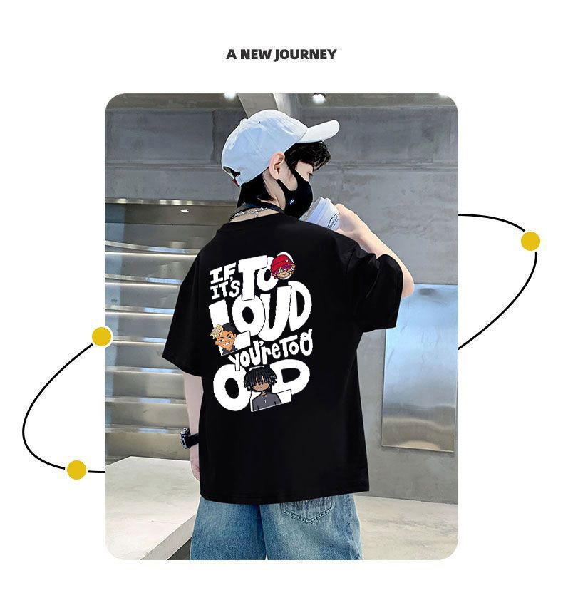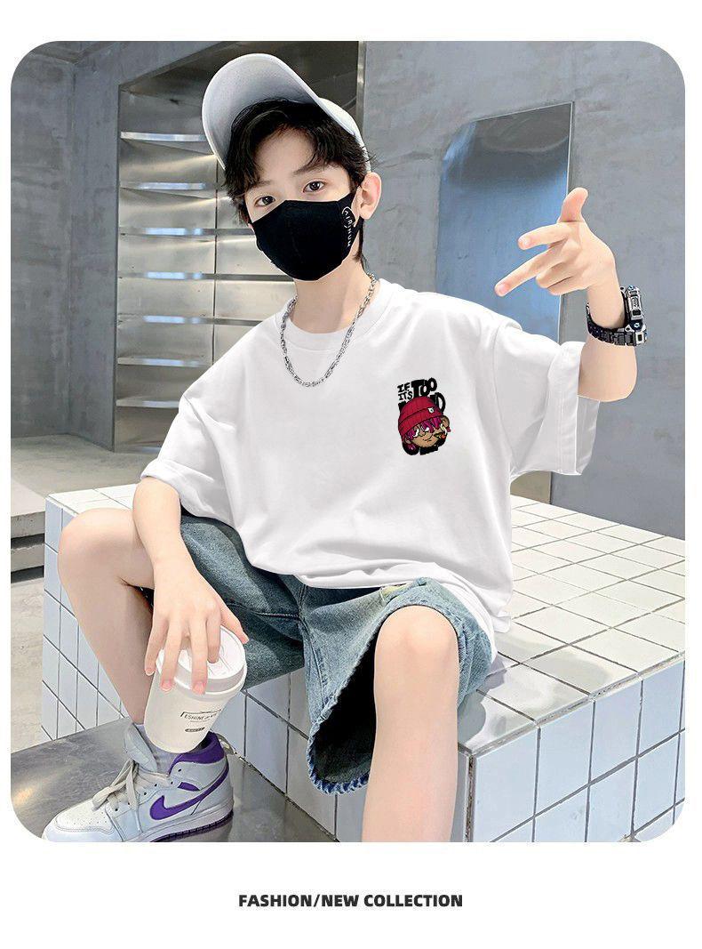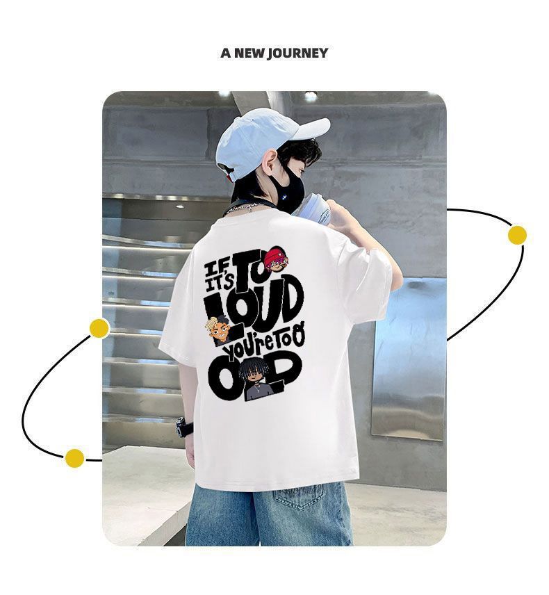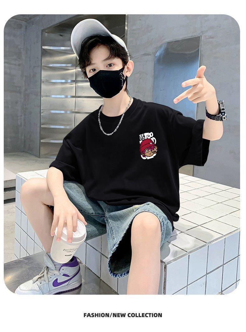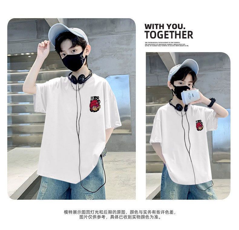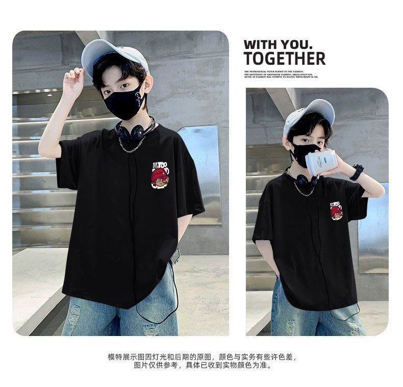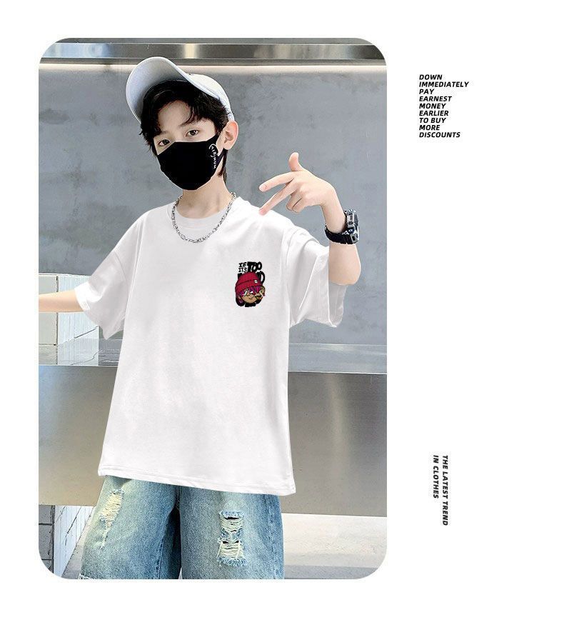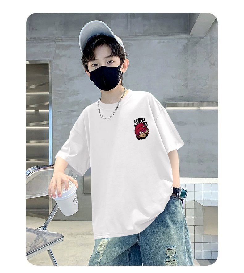 Camiseta de manga corta para niños, cuello redondo, dibujos animados, para verano, para bebés, de media manga, para niños de talla mediana y grande.