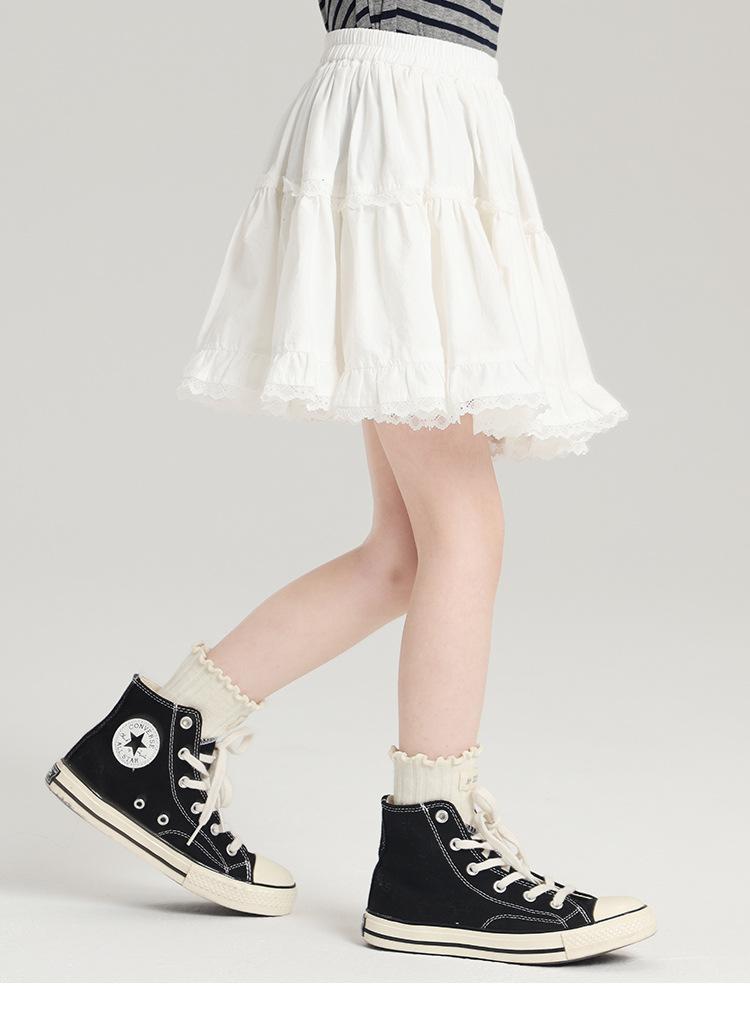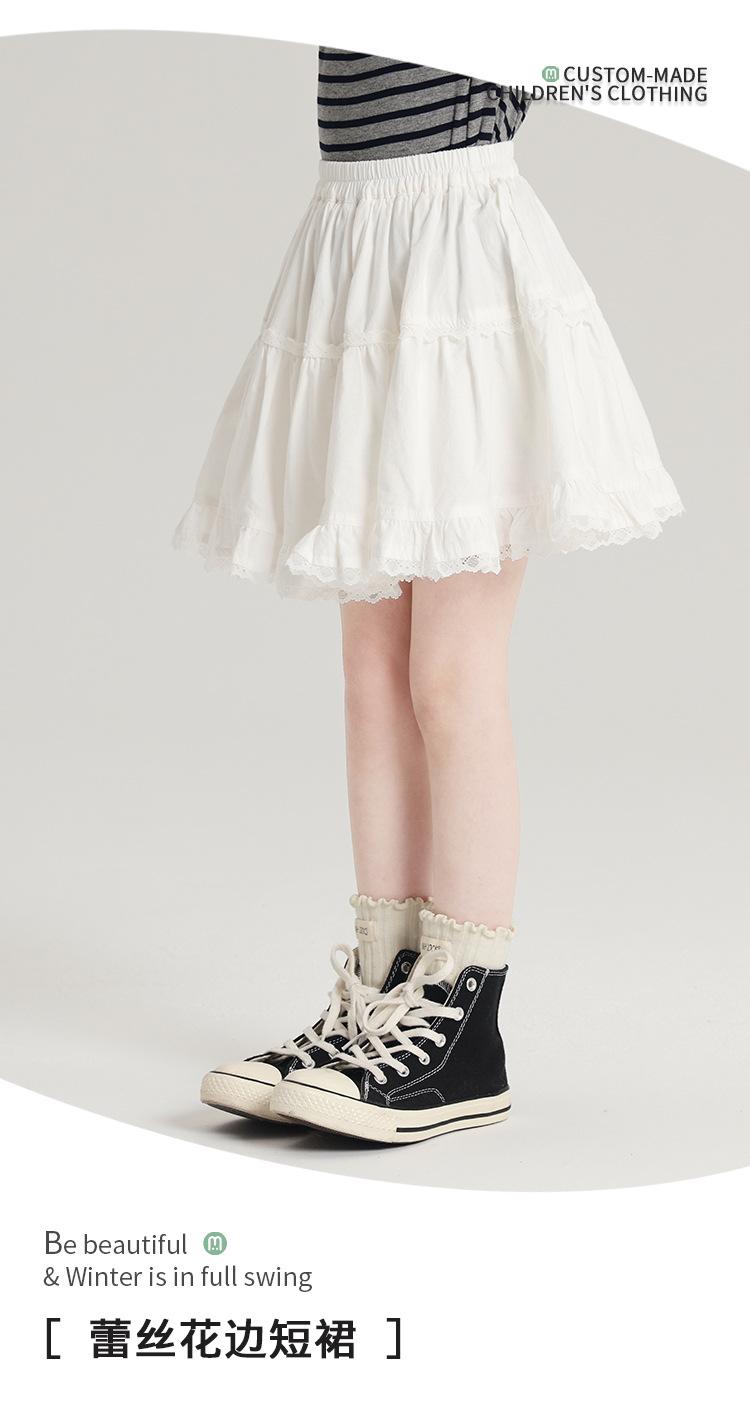 Falda de niña Pudding Haru, de encaje, transpirable y agradable para la piel, para primavera y verano.