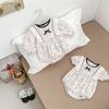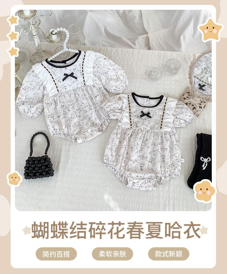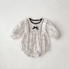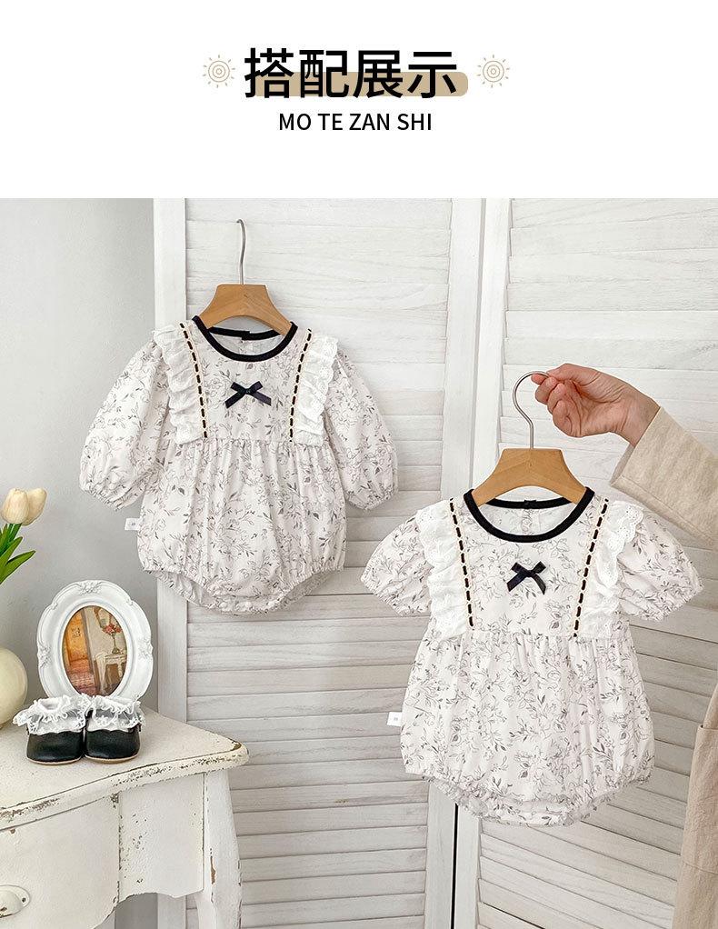 INS Primavera Nuevo Dulce Niña Bebé Encaje Lazo Bolsa Floral Ropa Gorda Vestido para Trepar Bebé Niña Manga Larga Ha