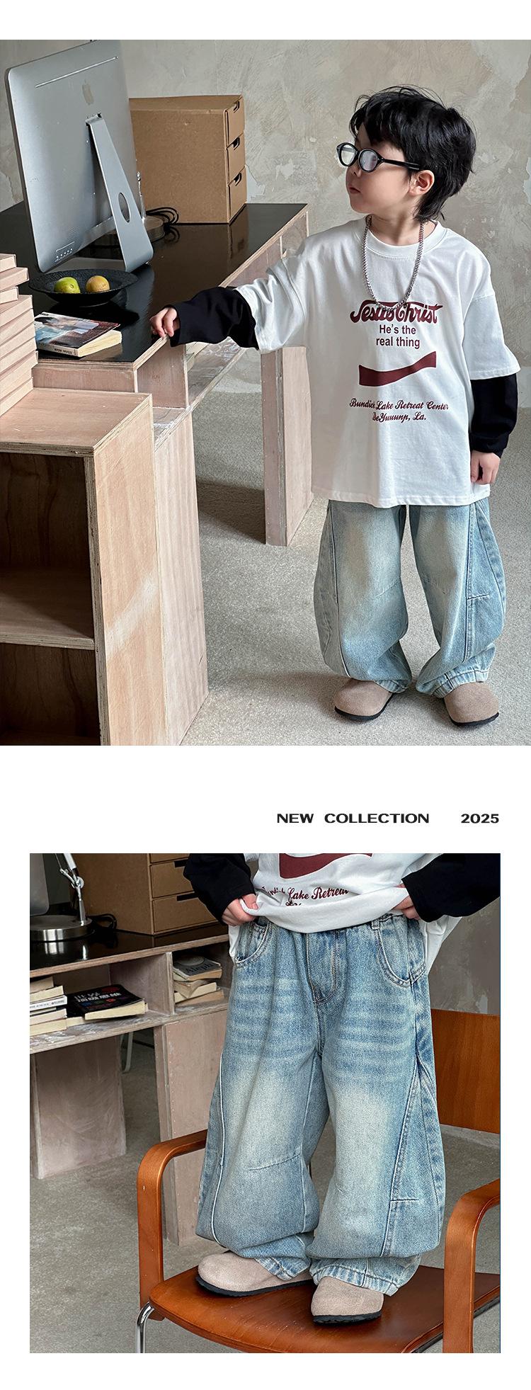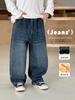 Jeans para niño con forro polar 2025 Invierno Nuevo Casual para niños Pantalones largos gruesos Niños grandes Otoño e Invierno Pantalones de moda