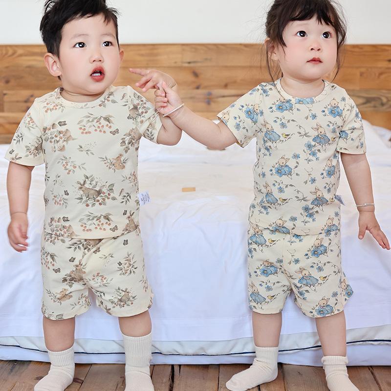 Ropa de Casa para Niños 2025 Verano Nuevo Pijama para Niños Conjunto de Pantalones Cortos de Manga Corta para Niños y Niñas Conjunto de Pijama para Bebé