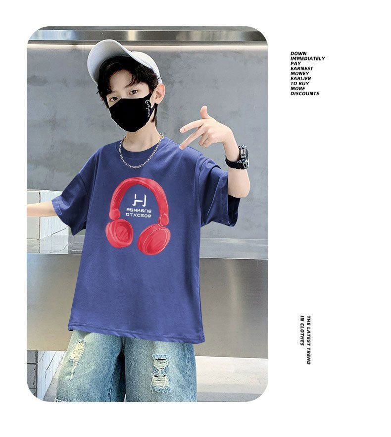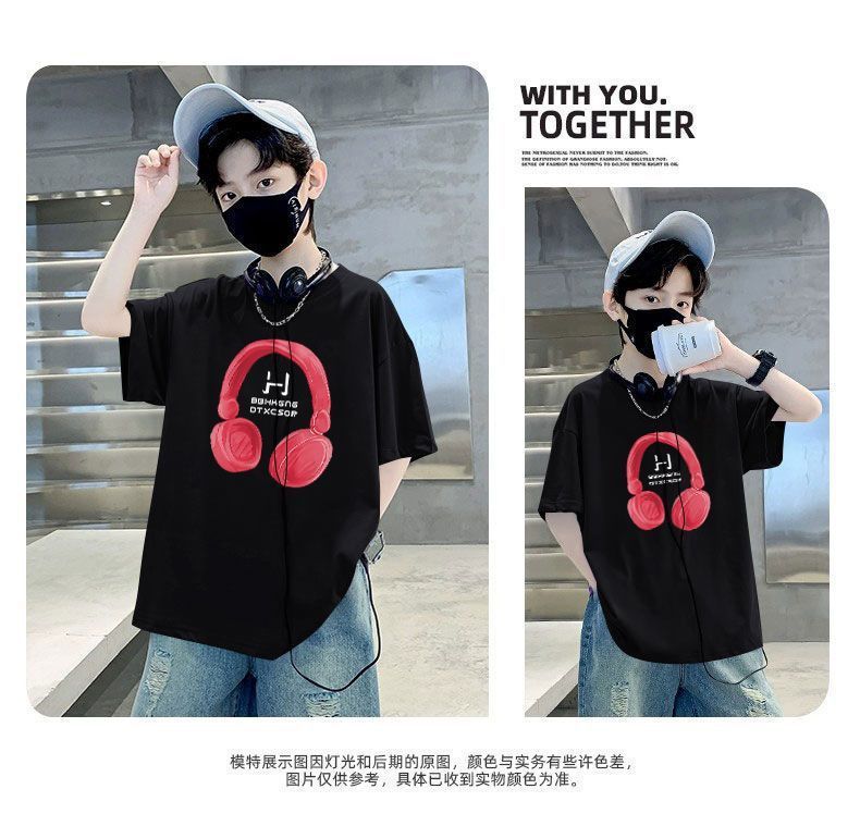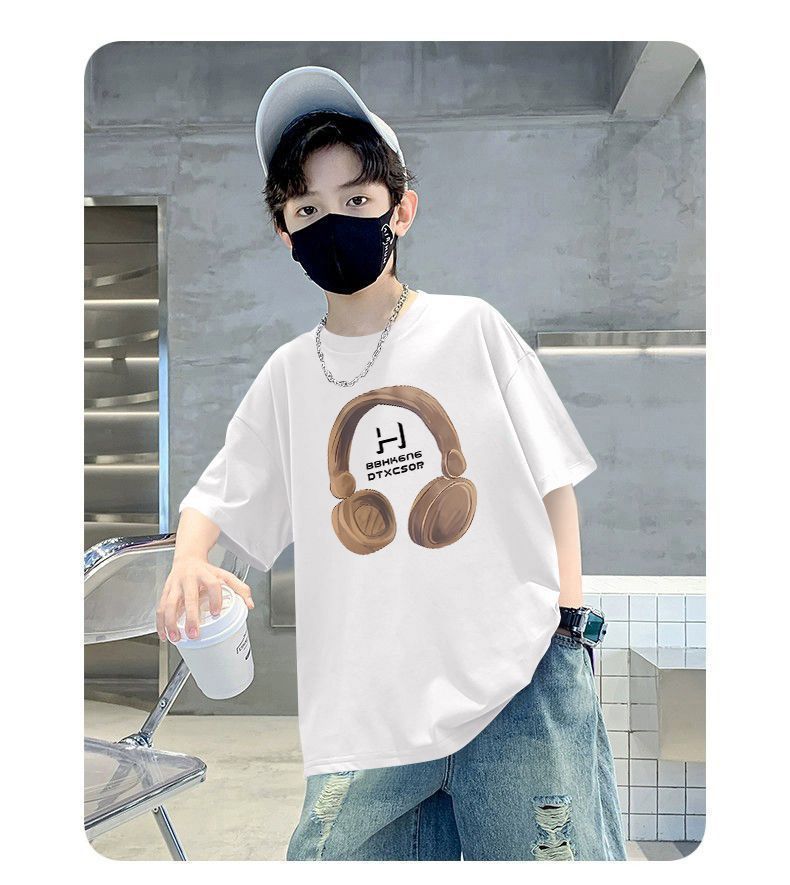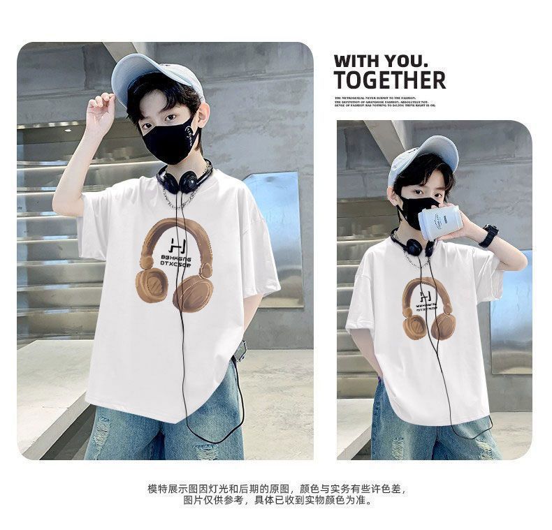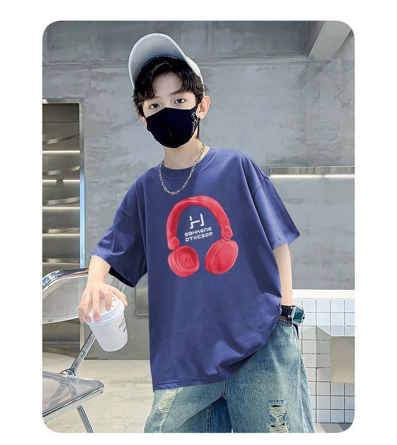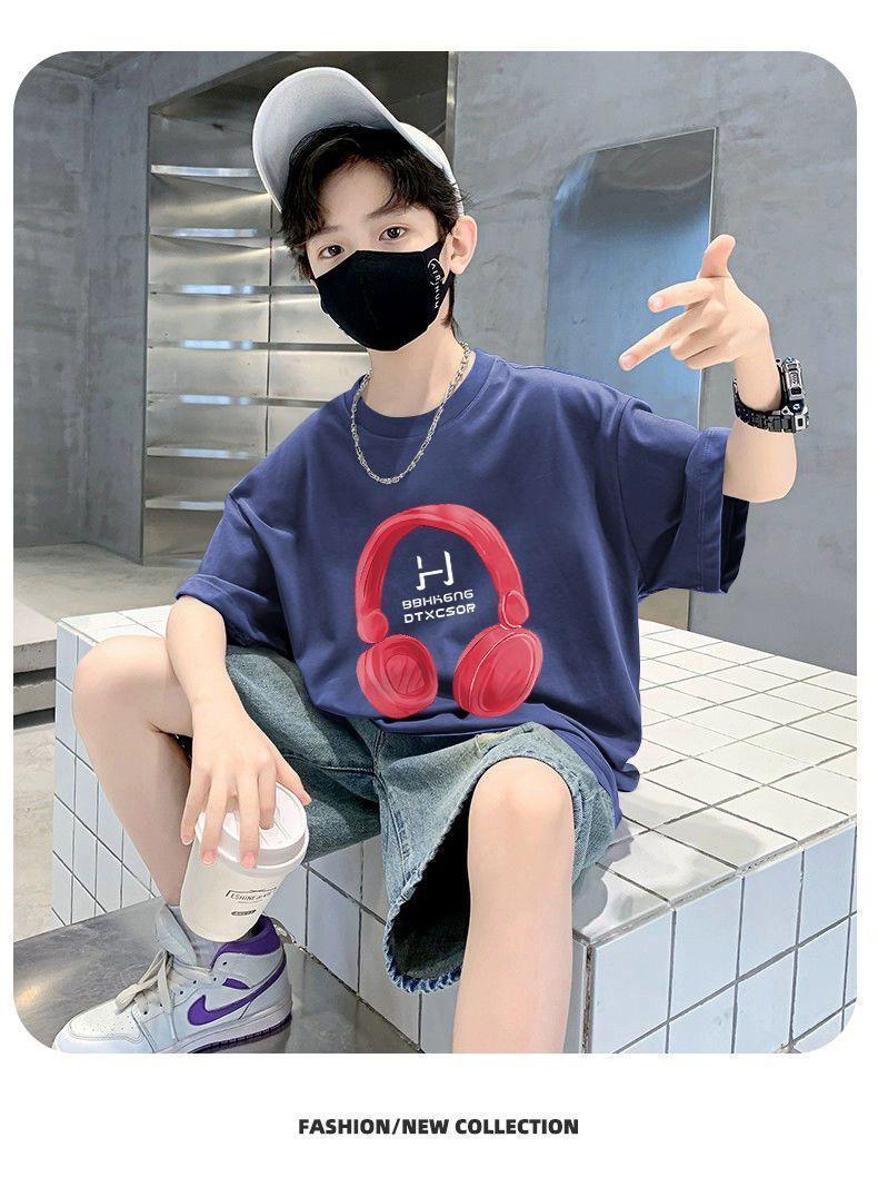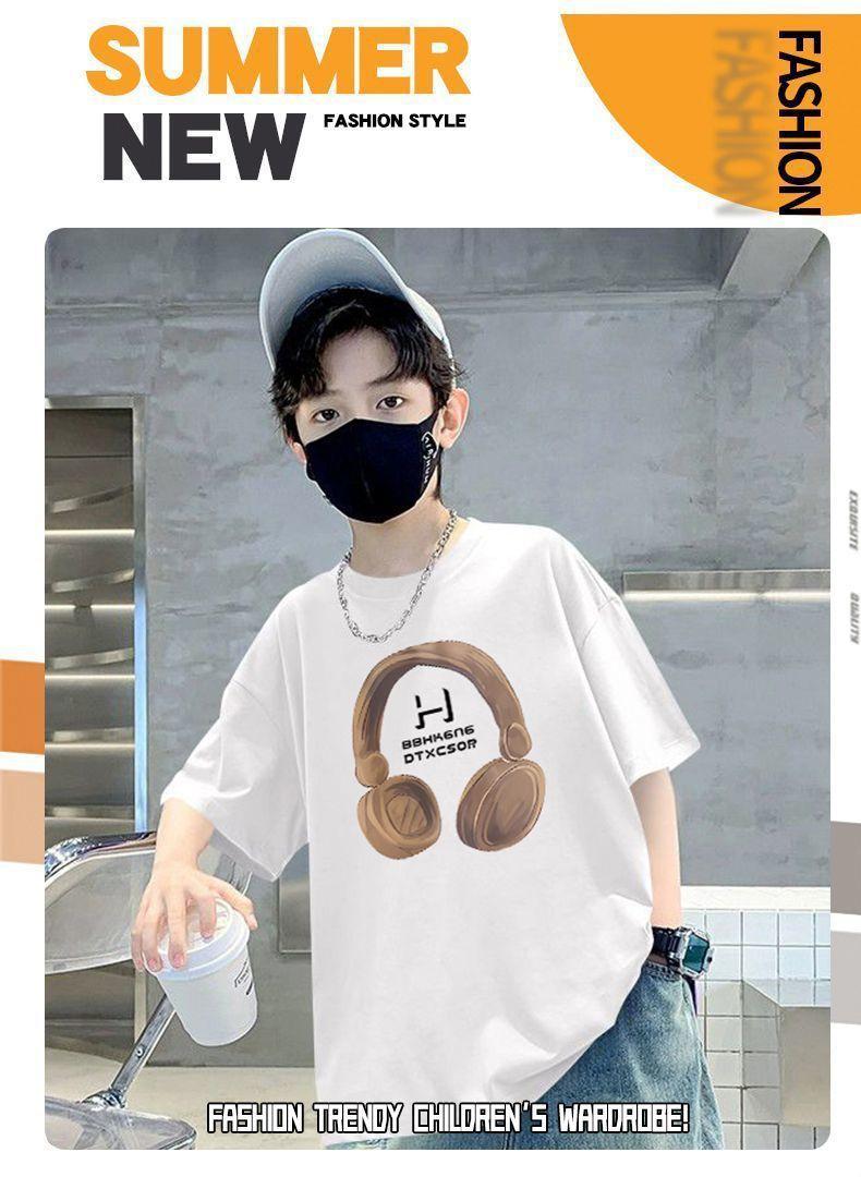 Camiseta de manga corta para niños, de algodón, con cuello redondo y dibujos animados, para verano, para bebés de talla mediana y grande.