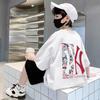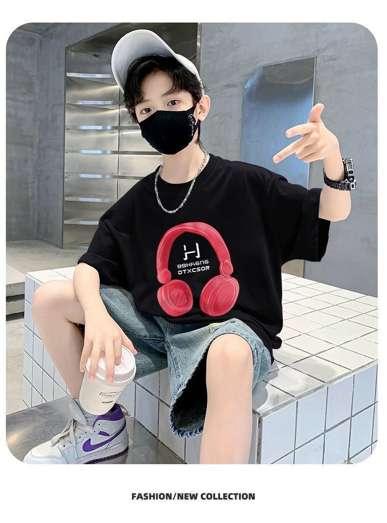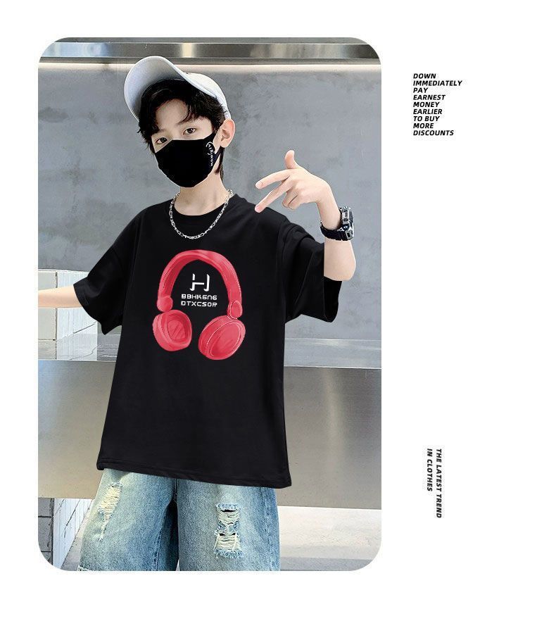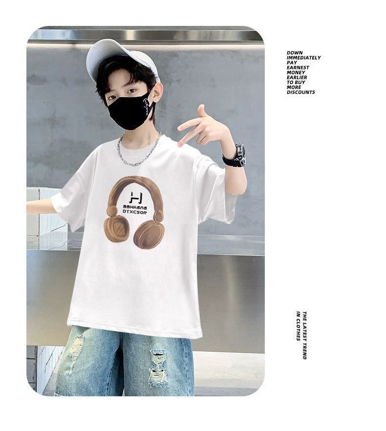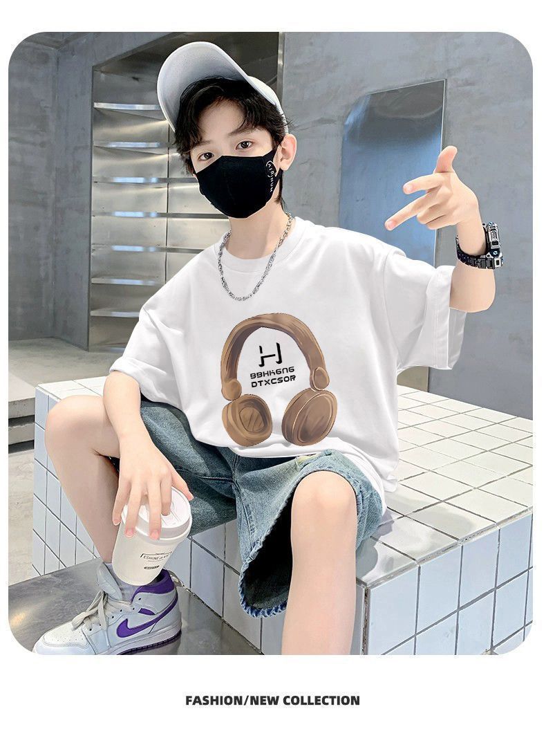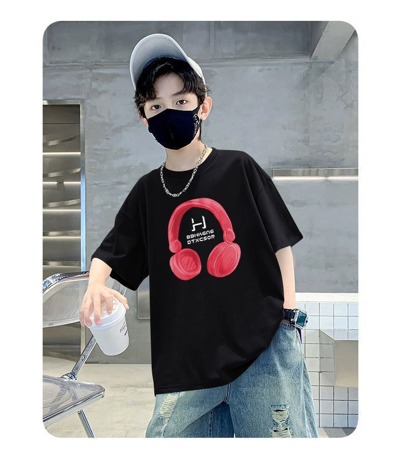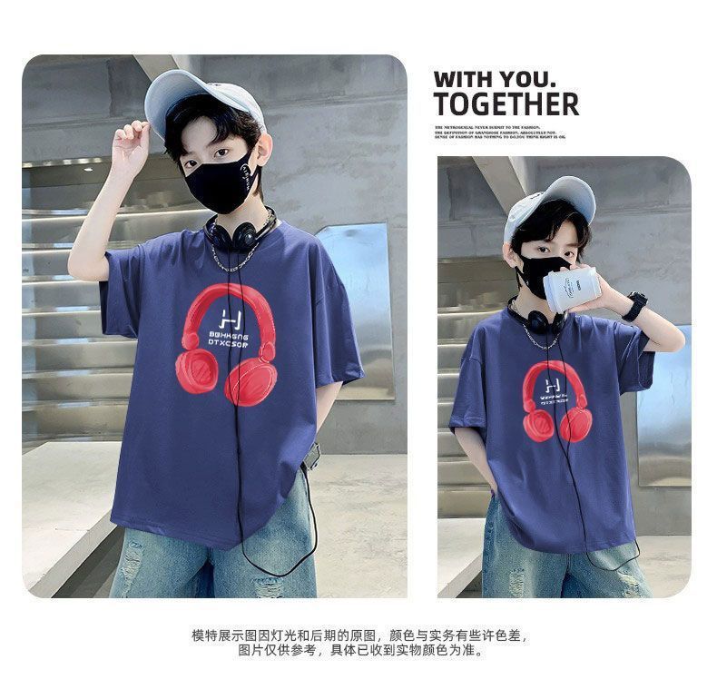 Camiseta de manga corta para niños, de algodón, con cuello redondo y dibujos animados, para verano, para bebés de talla mediana y grande.
