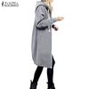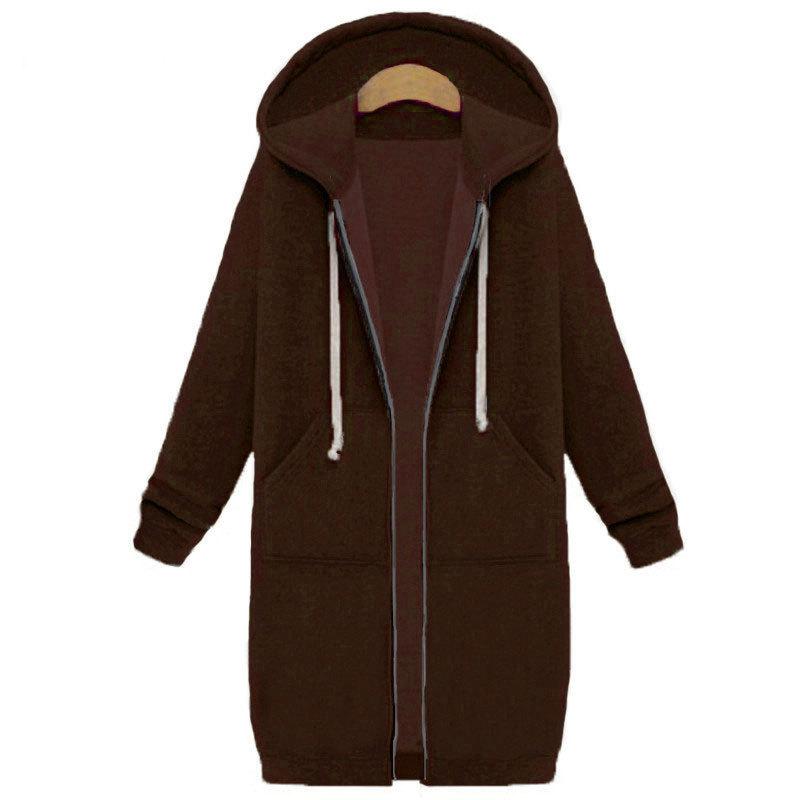 9729 Otoño e Invierno Amazon más vendido suéter de mujer largo más terciopelo bolsillo capucha cremallera gabardina abrigo mujer