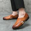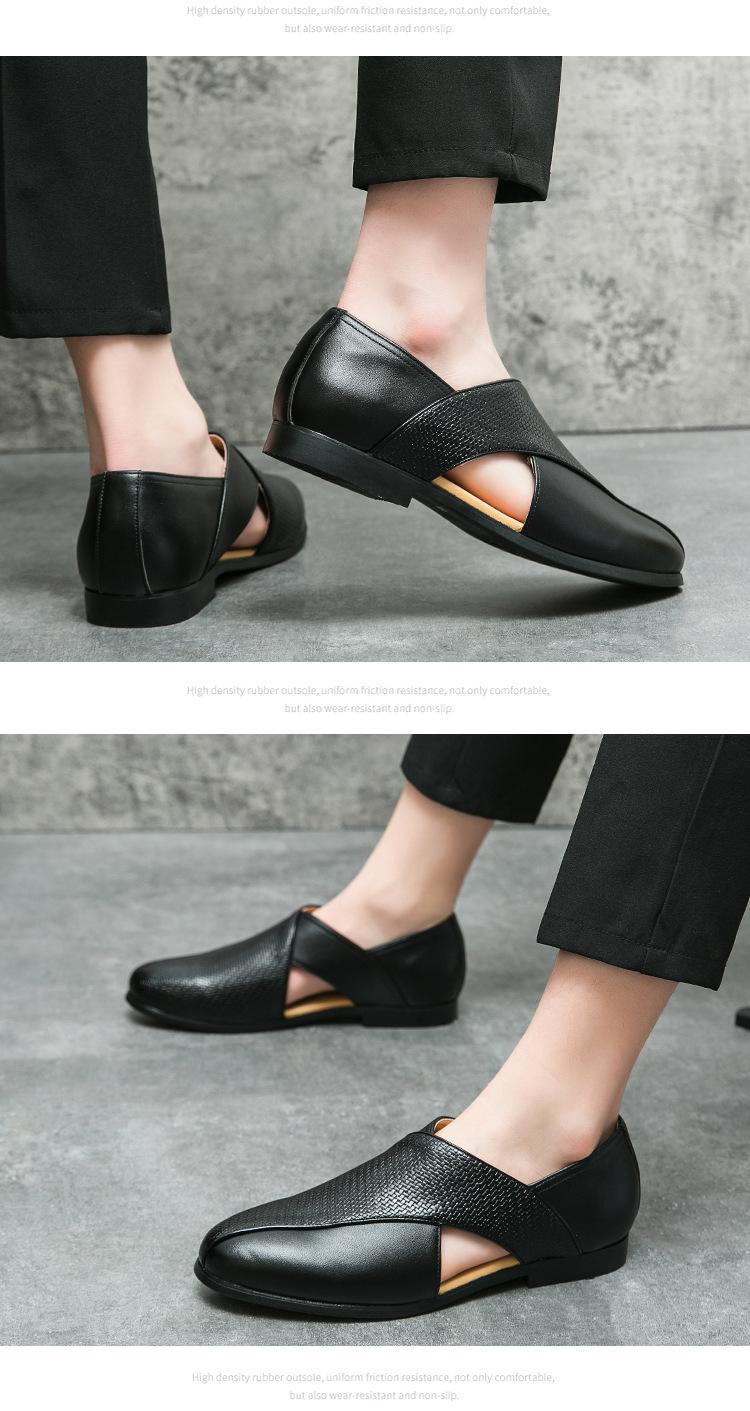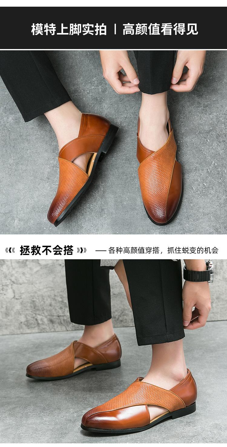 Sandalias de cuero de verano para hombre, estilo británico, de talla grande, con plataforma, huecas, para verano