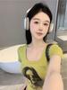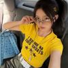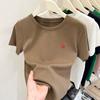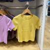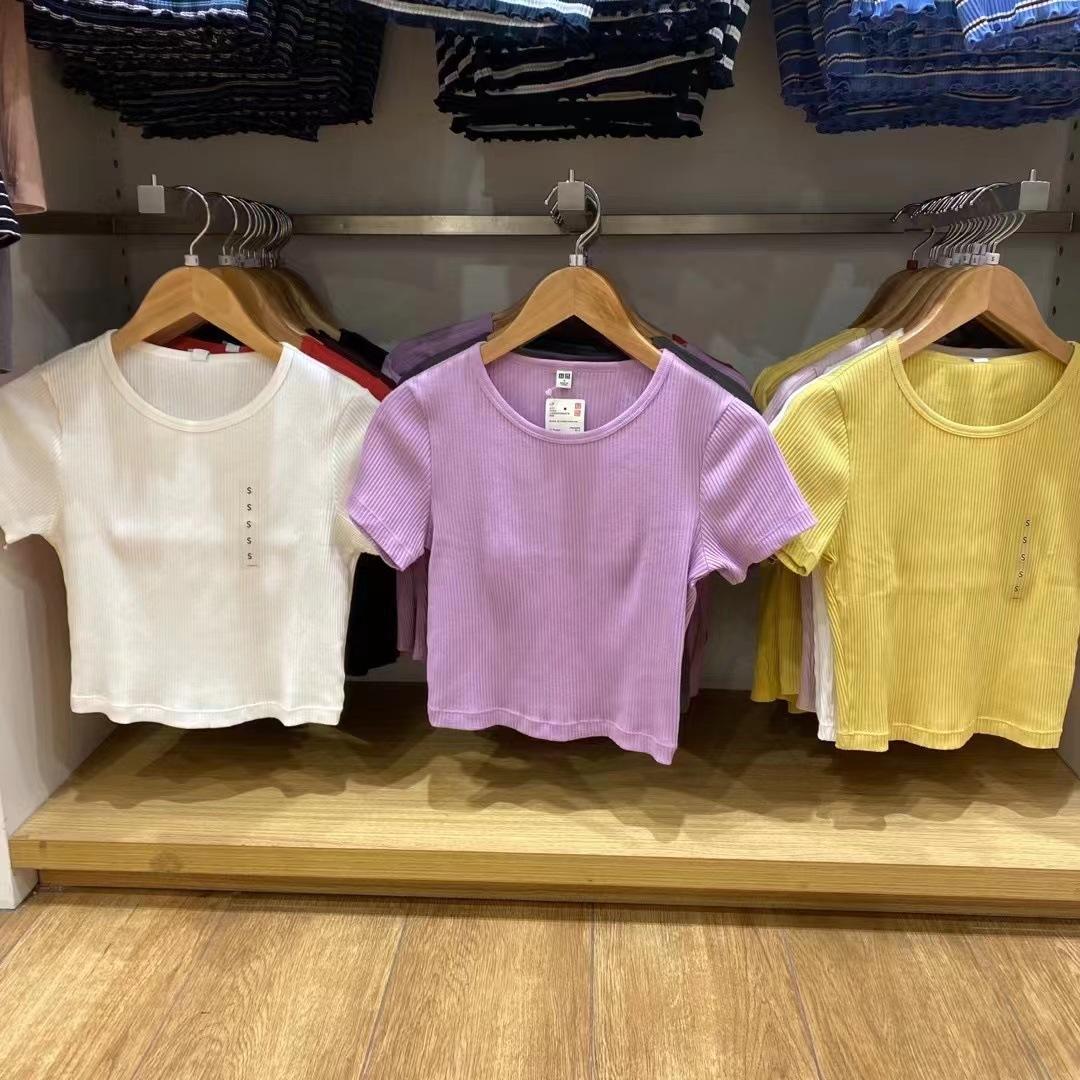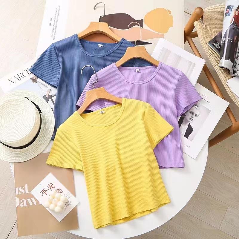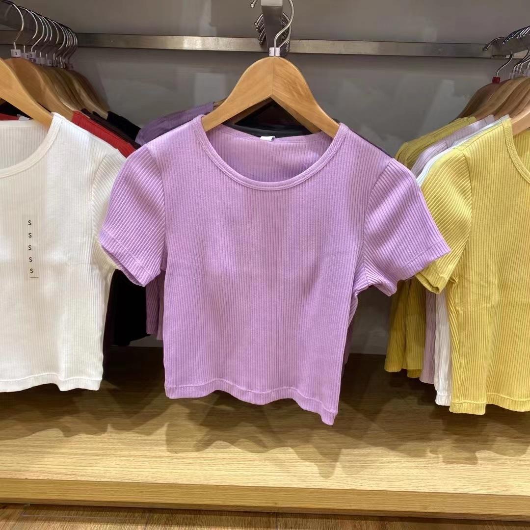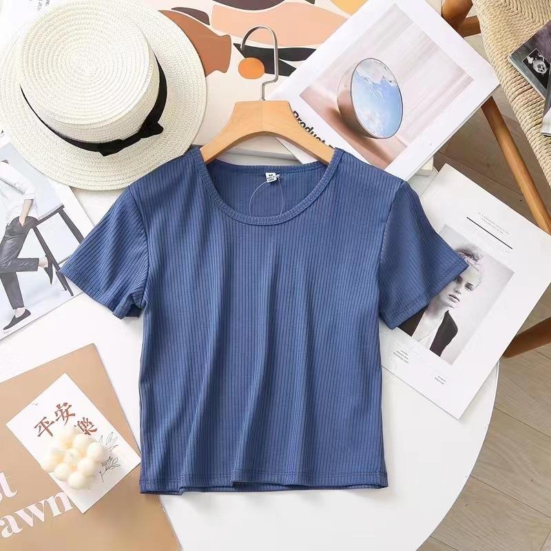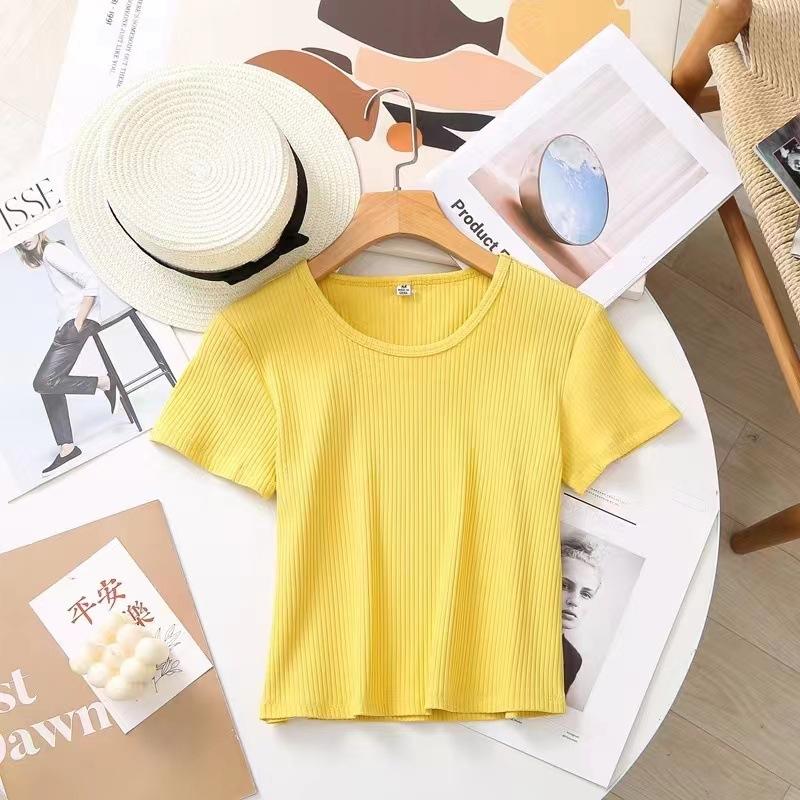 Camiseta de Verano para Mujer 2023 Hot Girl t Algodón Acanalado Cuello Redondo Manga Corta Corta Cintura Alta 452289