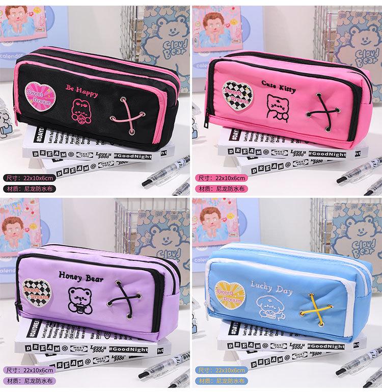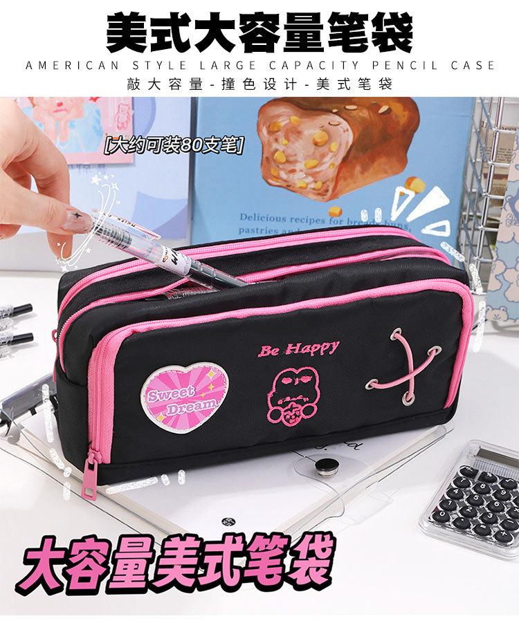 Estuche de lápices de gran capacidad para la temporada escolar 2024 Estuche de papelería americano para estudiantes Bolsa de almacenamiento portátil con clasificación Estuche de lápices para niña Venta al por mayor