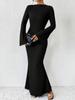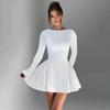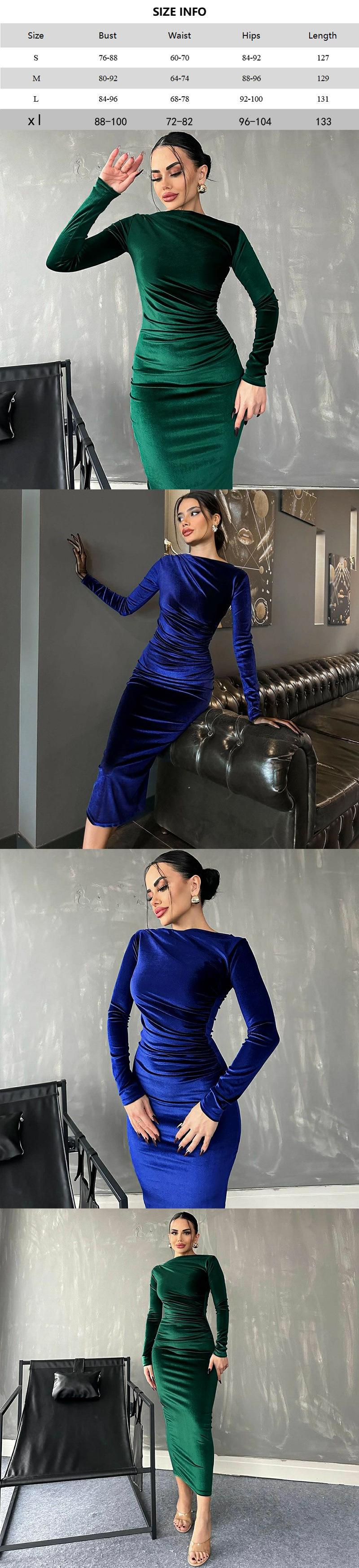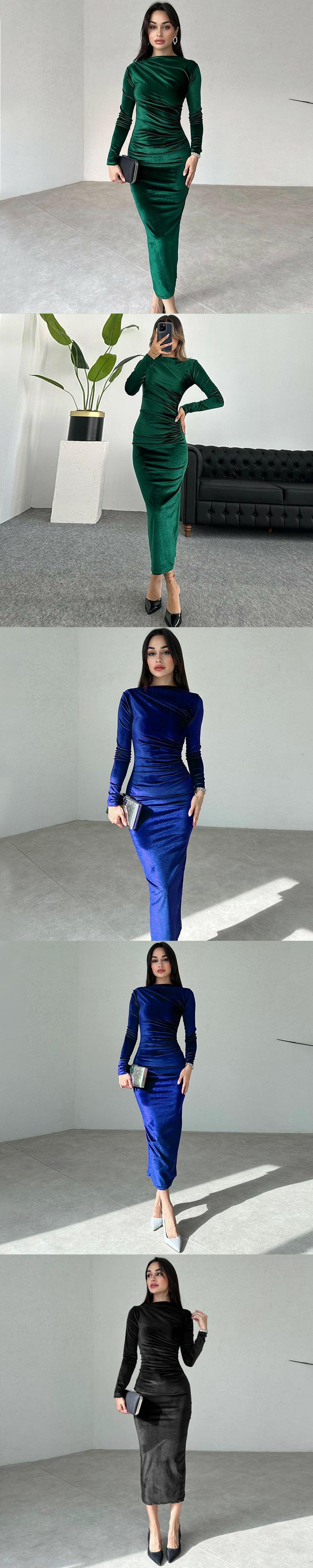 Vestido de otoño e invierno 2024, nuevo estilo europeo y americano, de moda, color sólido, ajustado, plisado, cuello redondo, manga larga