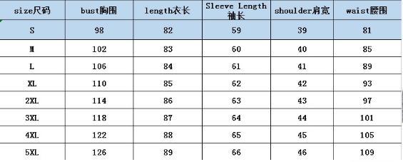 S, M, L, XL, 2XL, 3XL, 4XL, 5XL