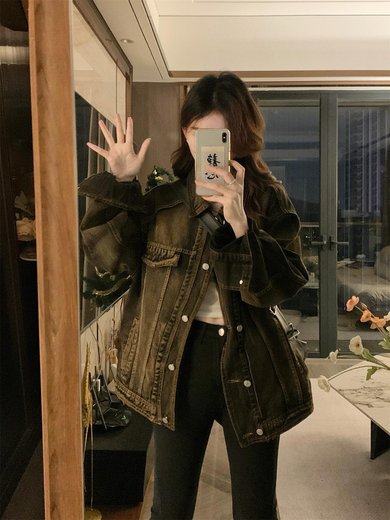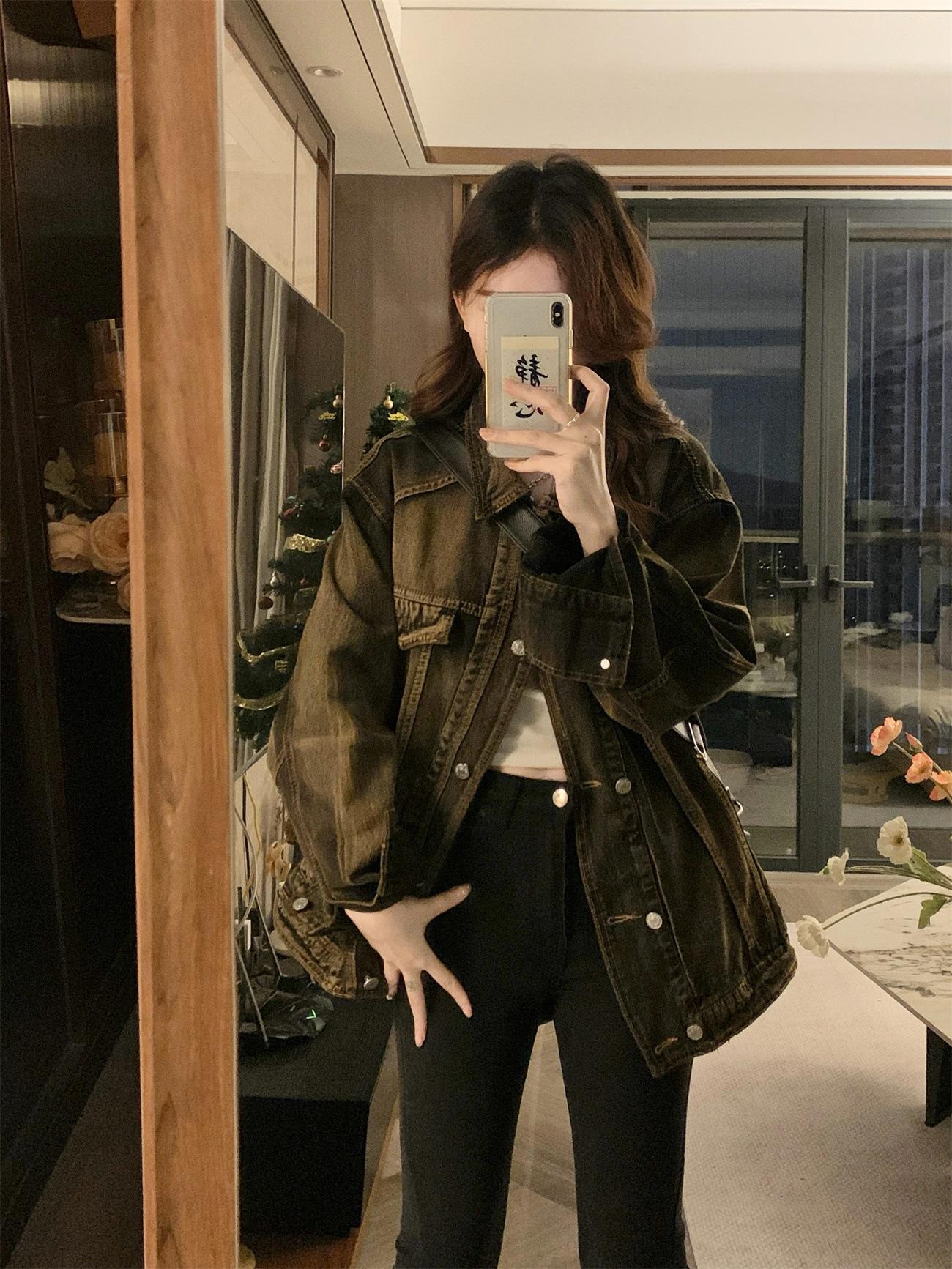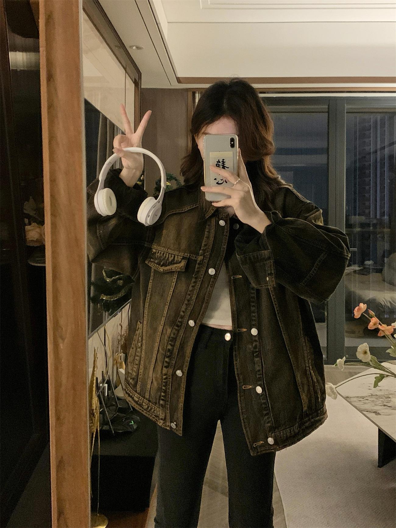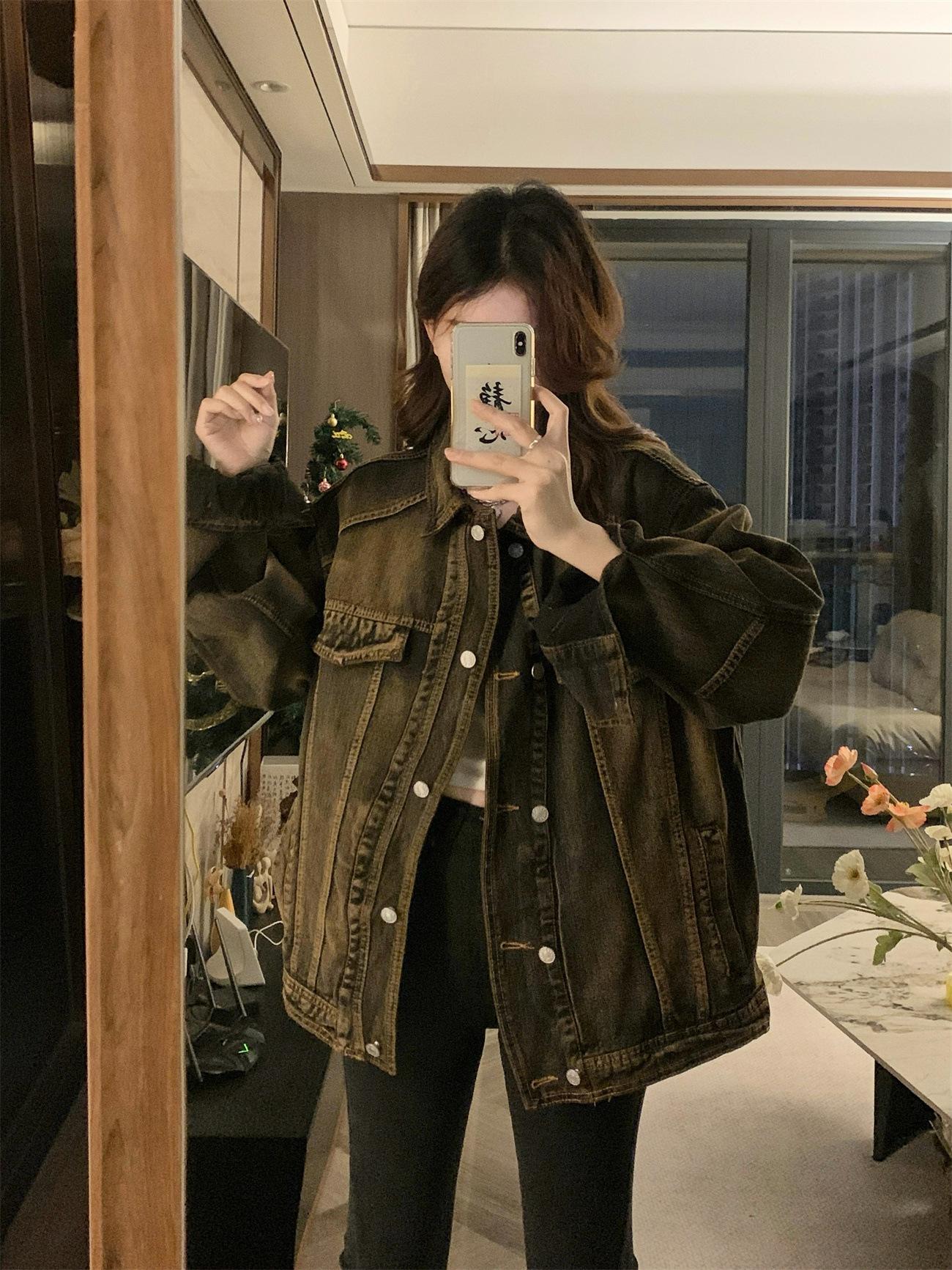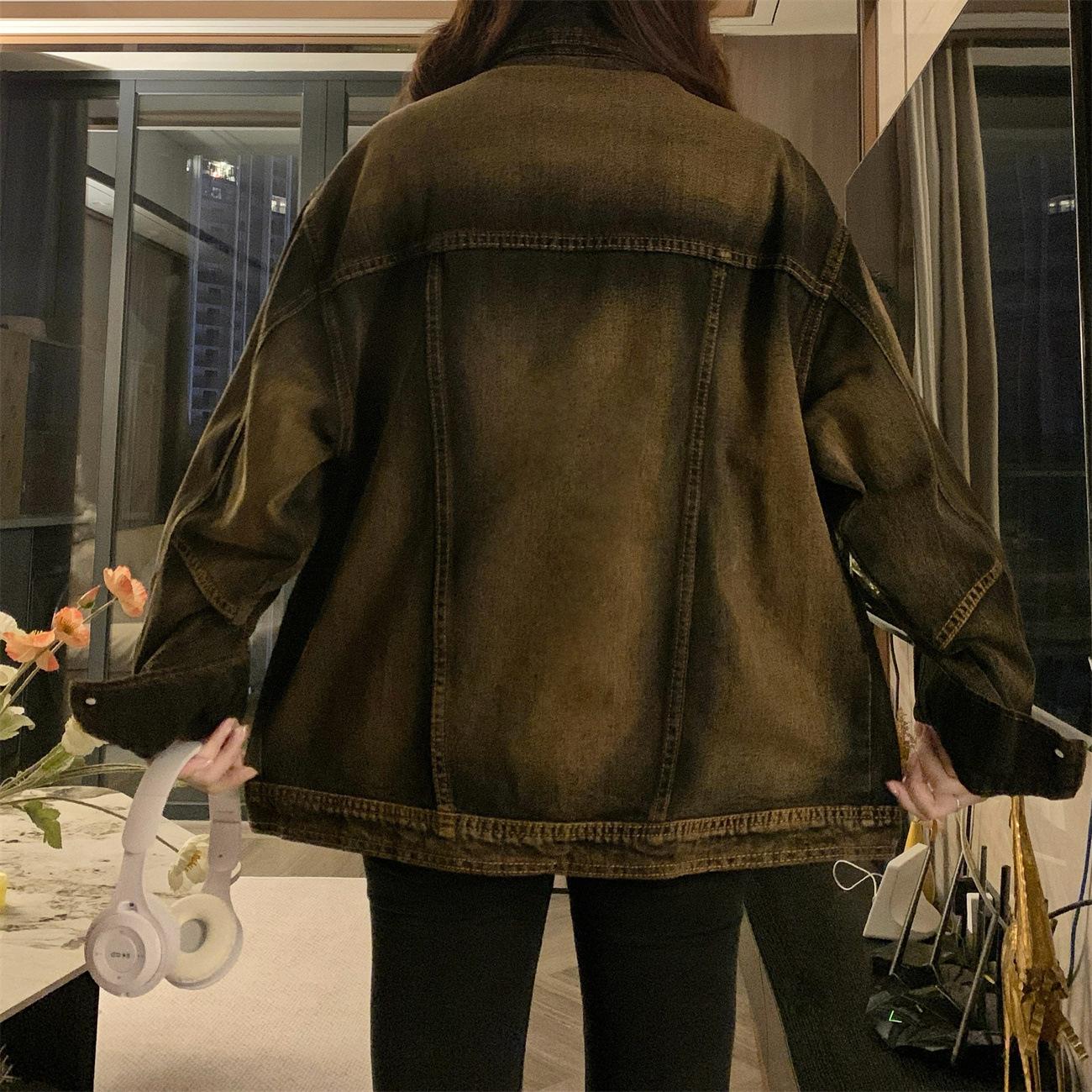 Chaqueta vaquera lavada estilo americano retro estilo Hong Kong para mujer, chaqueta de nicho de diseño oversize de primavera