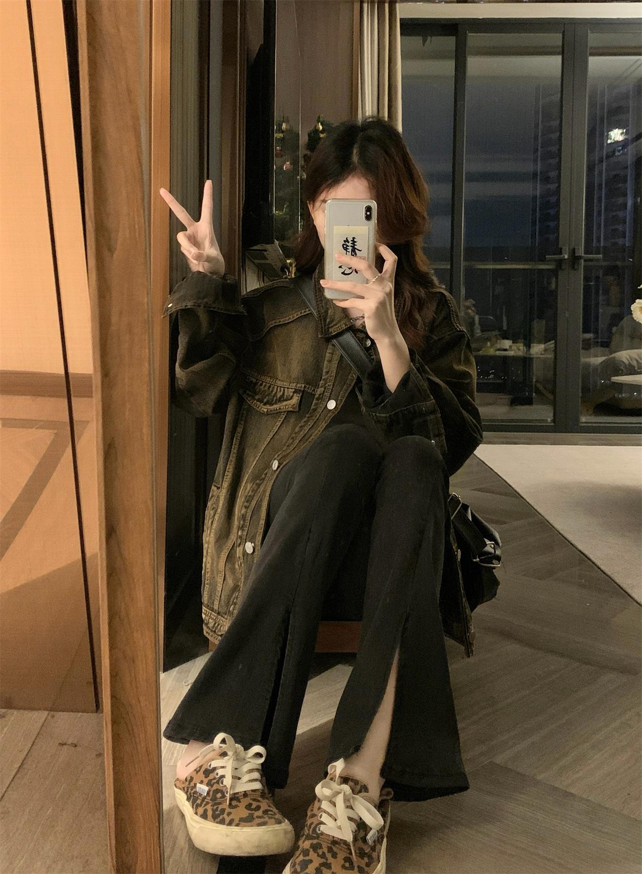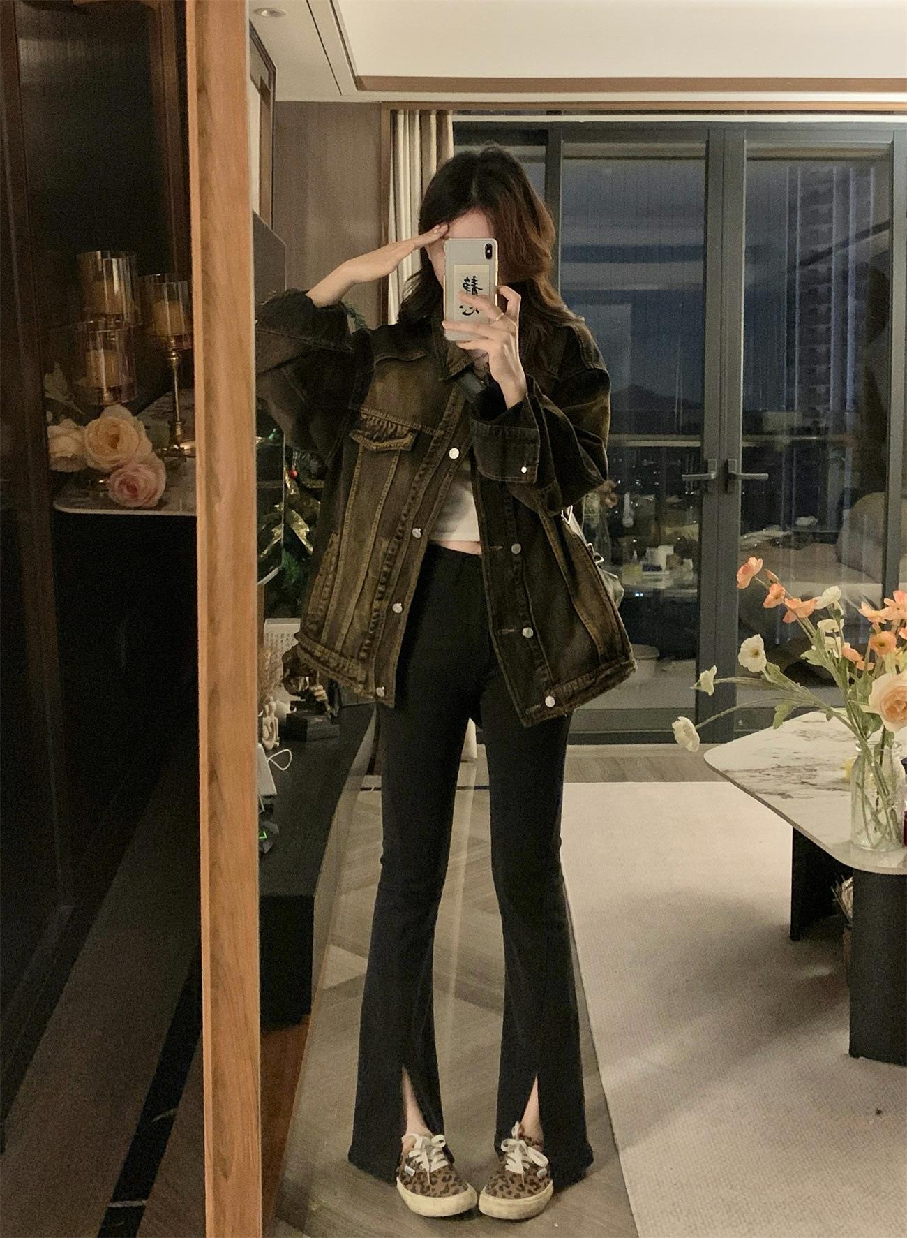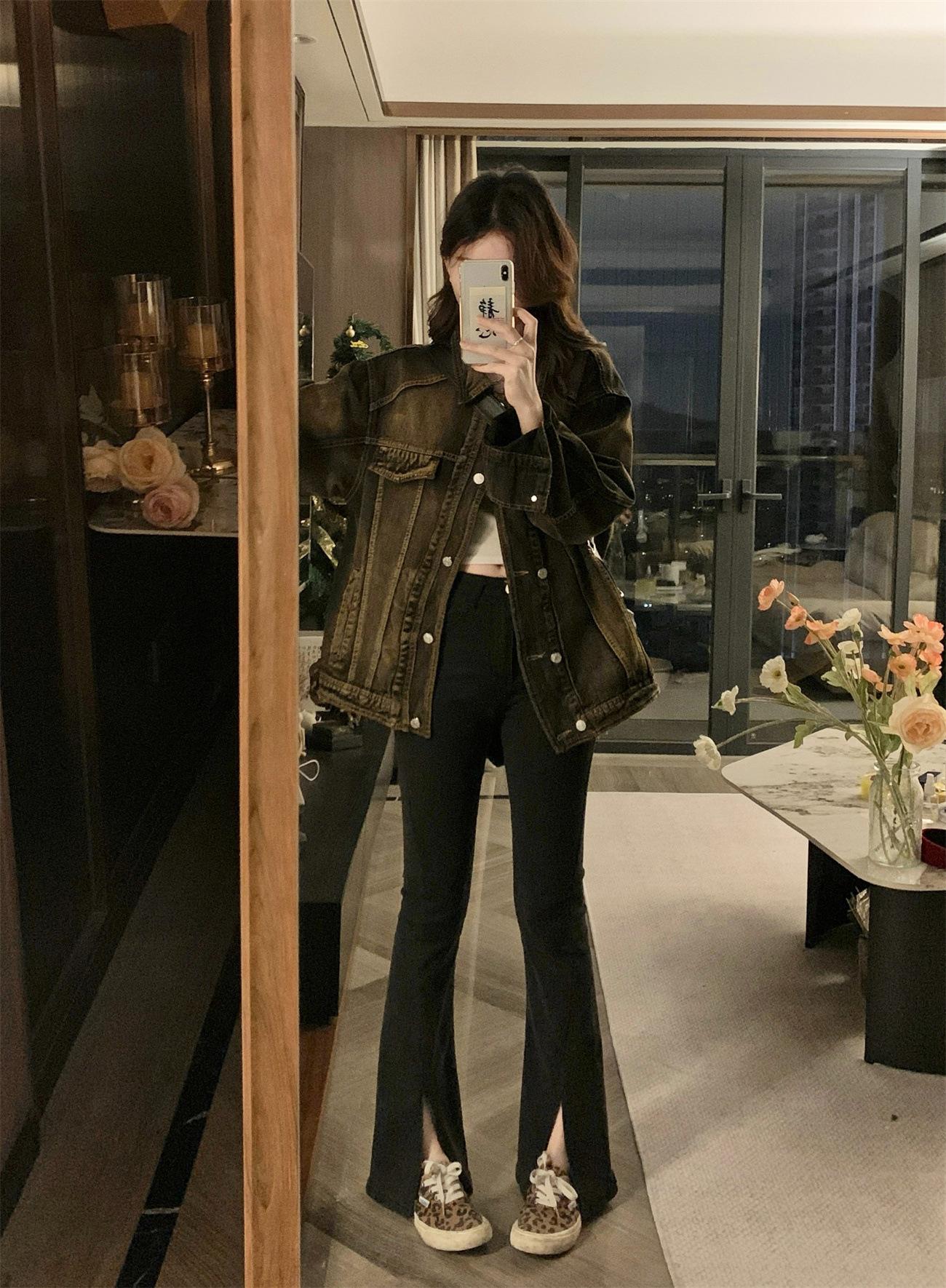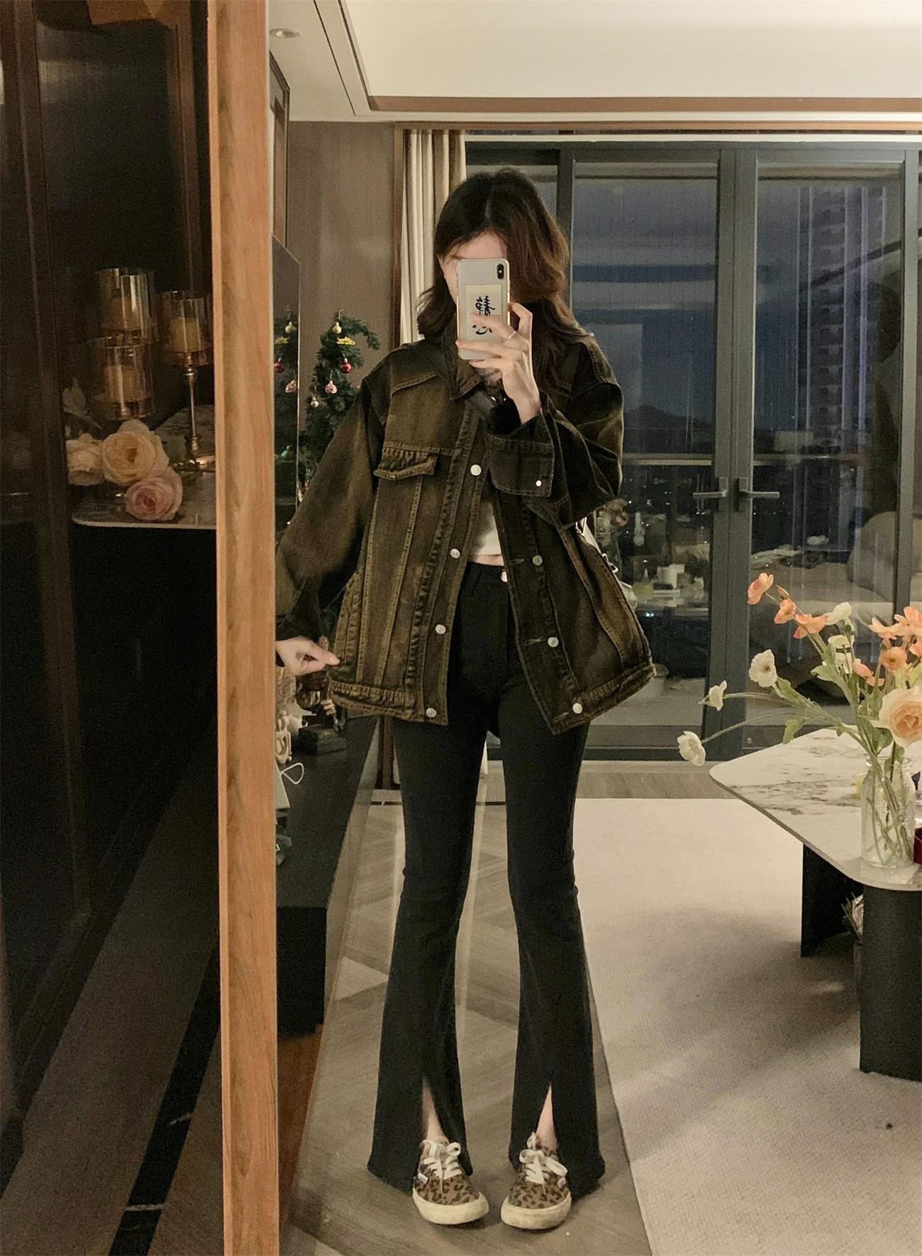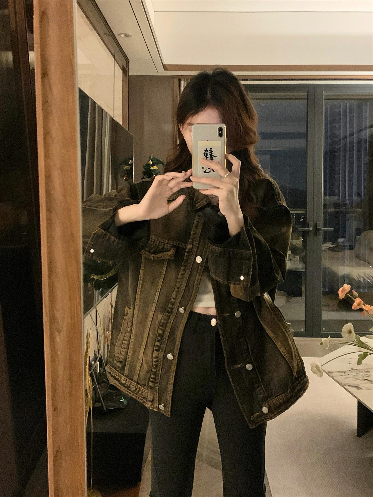 Chaqueta vaquera lavada estilo americano retro estilo Hong Kong para mujer, chaqueta de nicho de diseño oversize de primavera