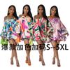9670 # 2021 Popular Europeo y Americano Amazon Vestido Asimétrico de Manga Corta con Cuello Redondo, Plisado y Cinturón de Lazo