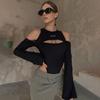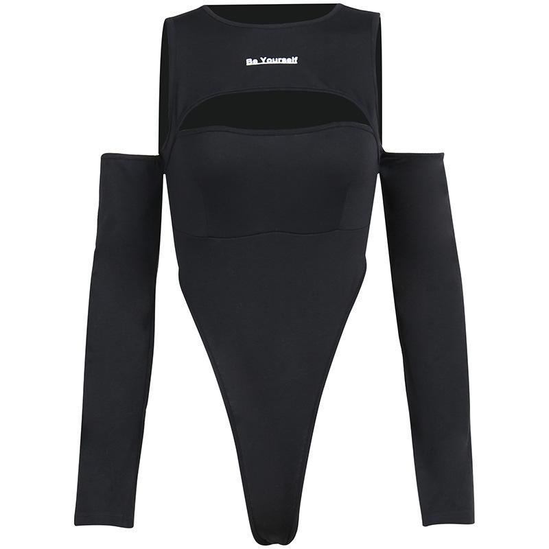 Pantalones ajustados de color liso con cuello redondo, estampados, manga larga y hombros descubiertos, estilo Spice Girl, estilo europeo y americano.