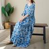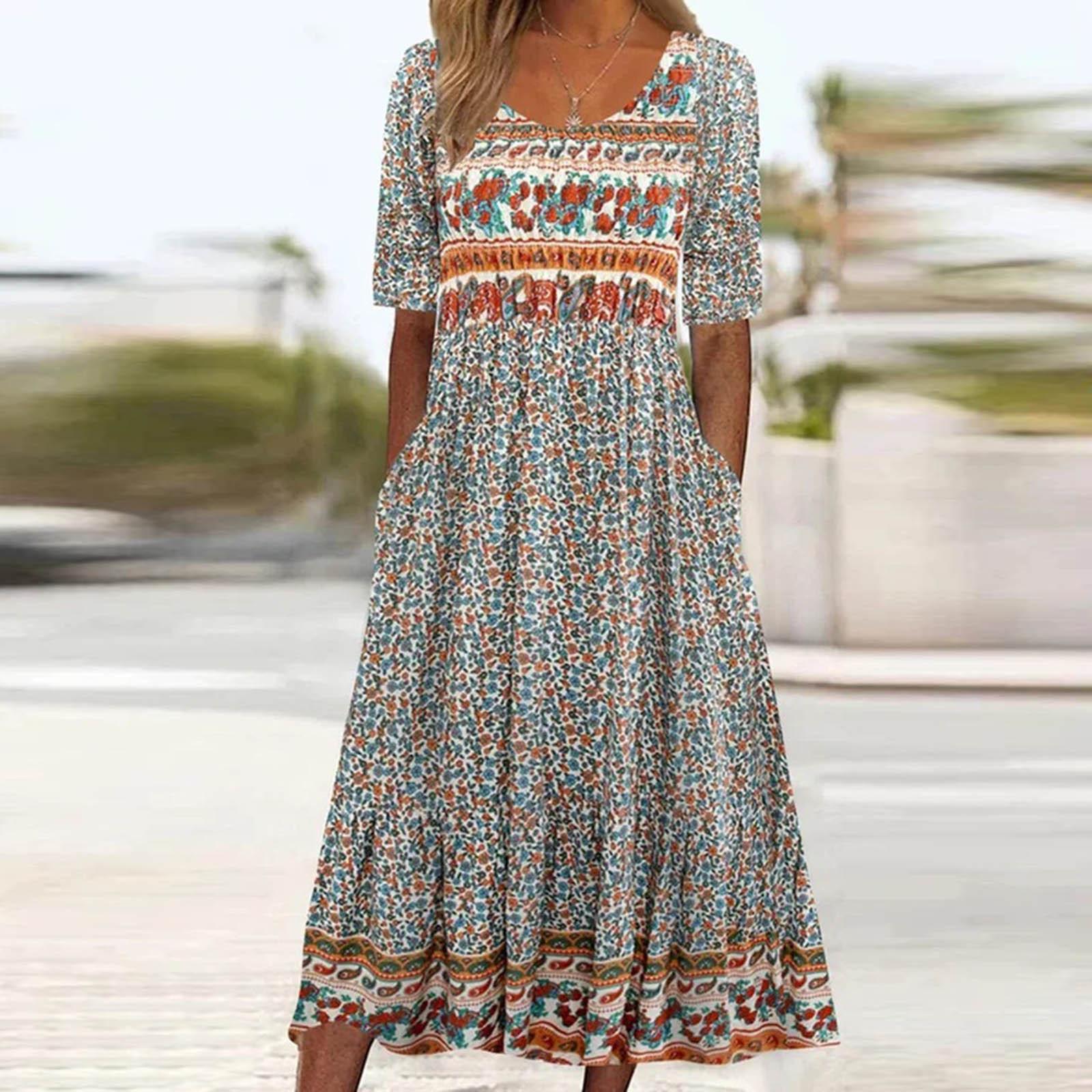 2024 Verano Nuevo Vestido Largo de Manga Corta con Cuello Redondo para Dama Vestido con Estampado Bohemio Mujeres Elegante