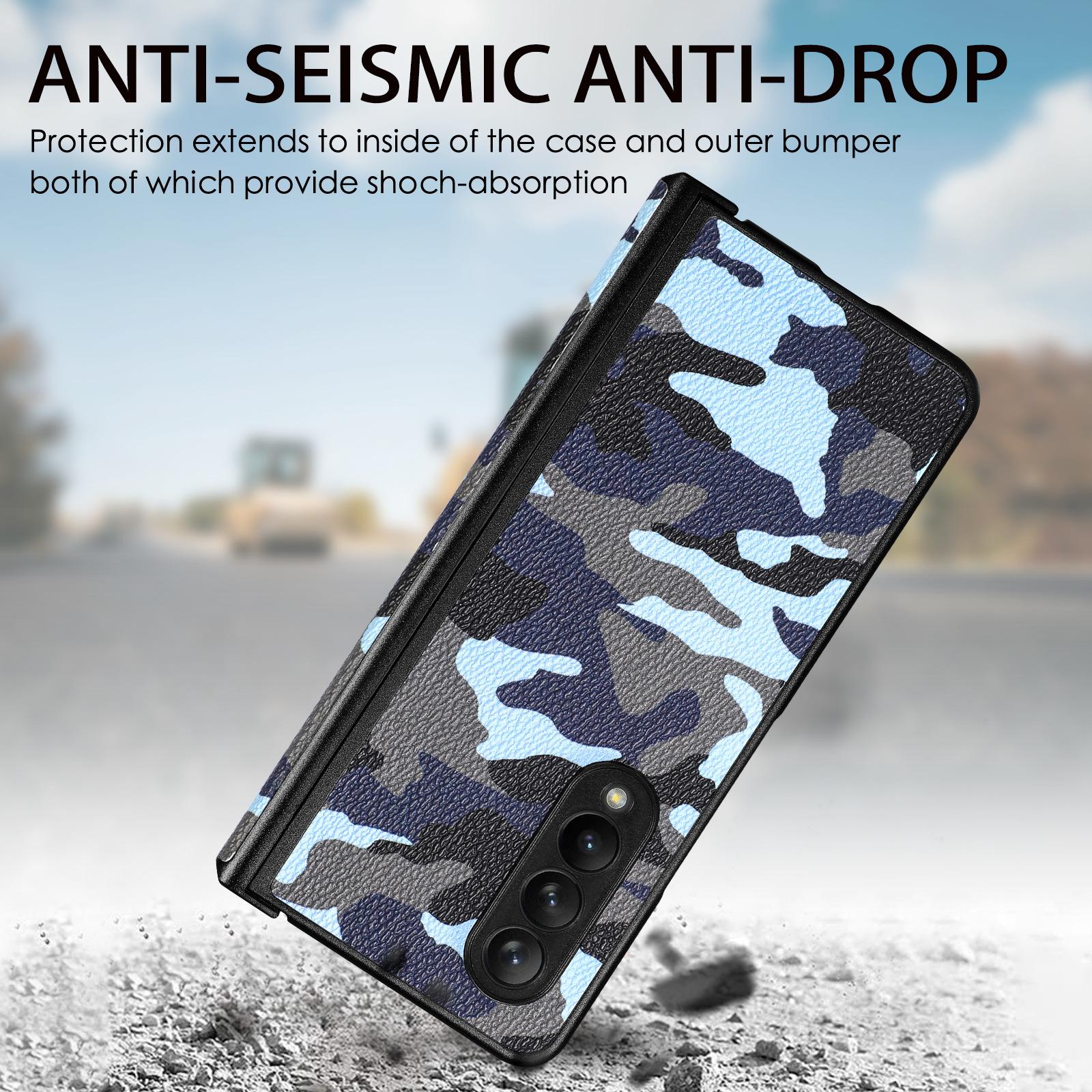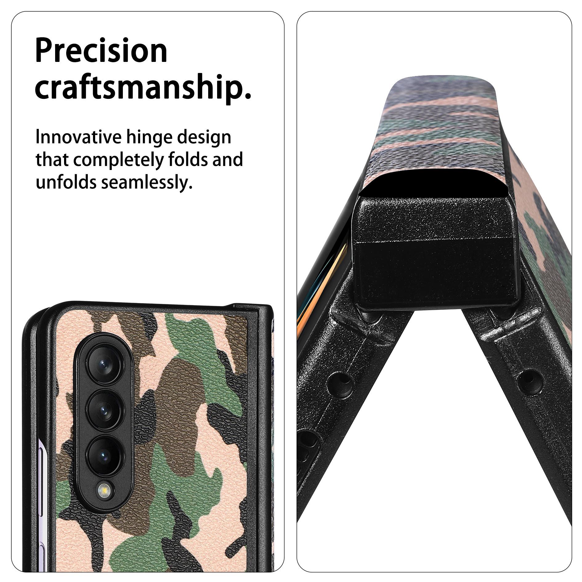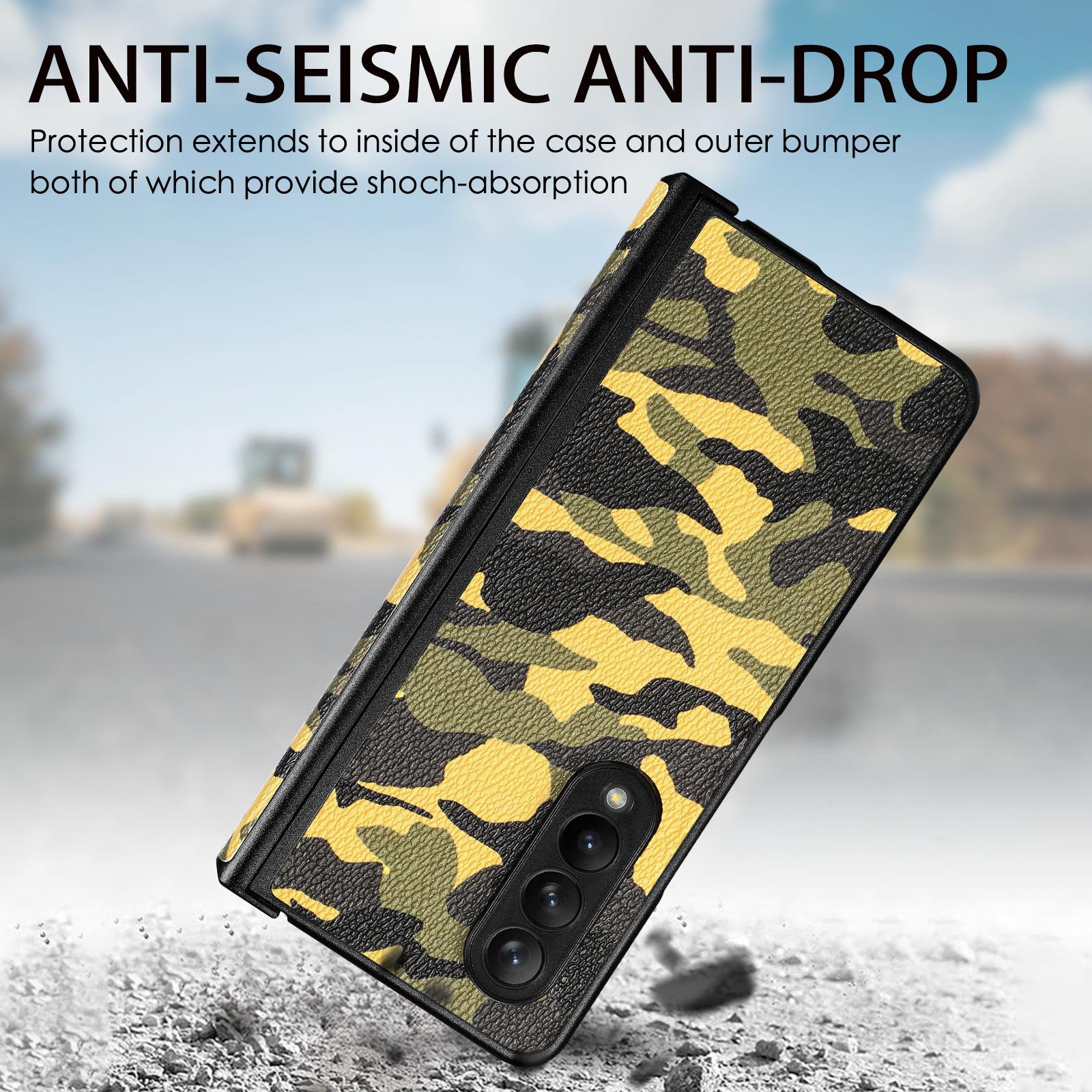 Funda para Teléfono Móvil Samsung zfold4 Fold4 Cuero Camuflaje PU Pantalla Plegable Izquierda y Derecha Cubierta Protectora Completa Resistente a Caídas