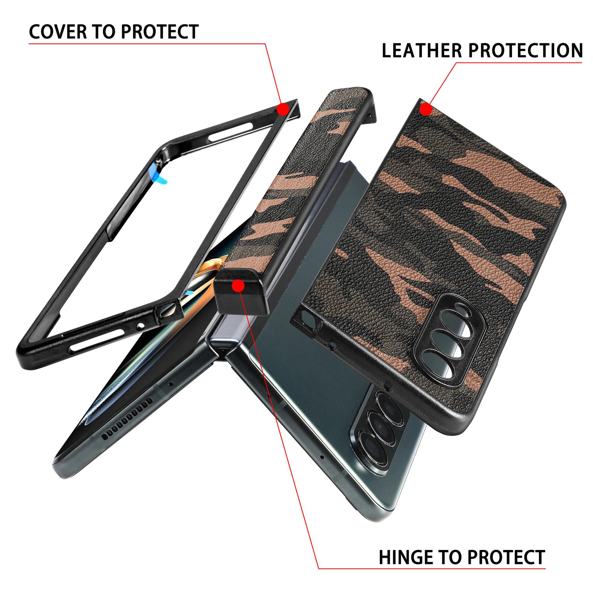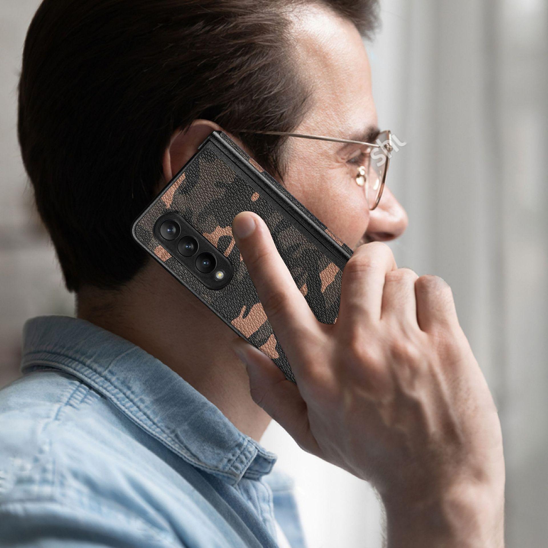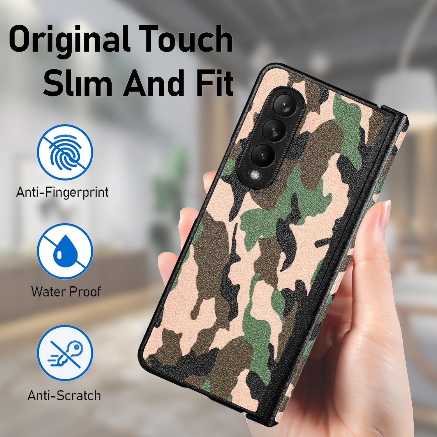 Funda para Teléfono Móvil Samsung zfold4 Fold4 Cuero Camuflaje PU Pantalla Plegable Izquierda y Derecha Cubierta Protectora Completa Resistente a Caídas