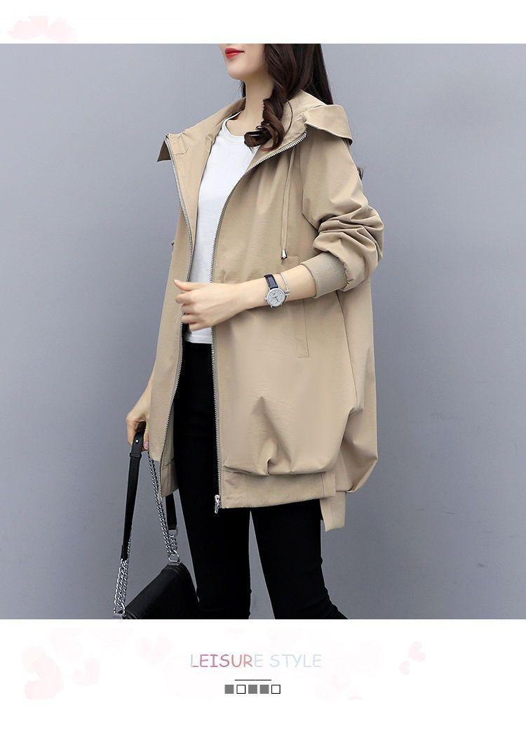 Gabardina informal holgada con capucha de estilo coreano para mujer con forro, primavera y otoño 2023, abrigo elegante de estilo europeo color caqui