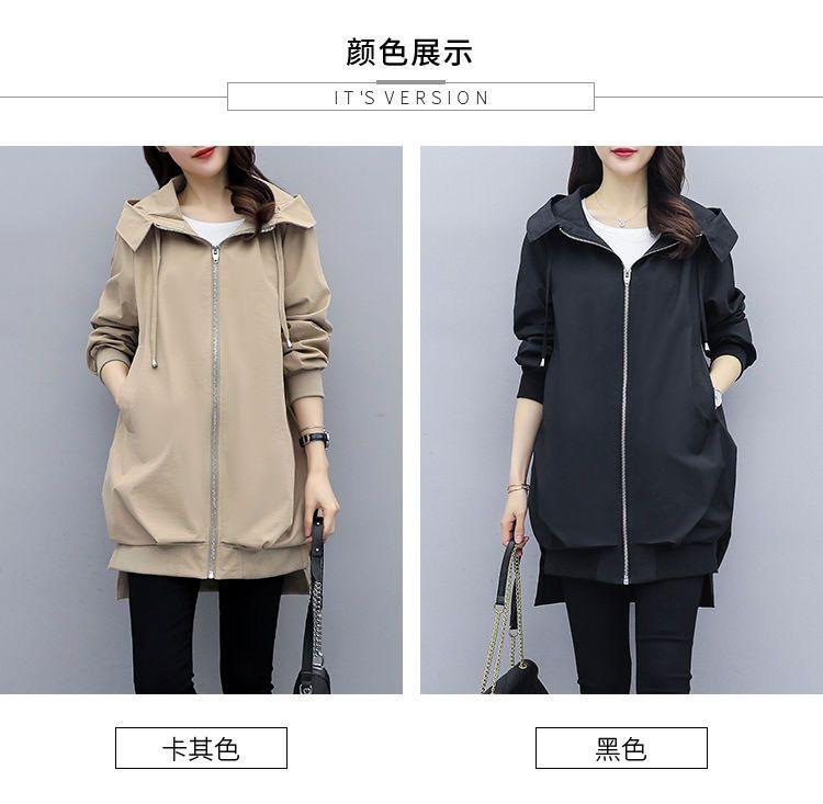 Khaki [hooded thread windbreaker] without lining, Black [hooded thread trench coat] without lining, A khaki co...