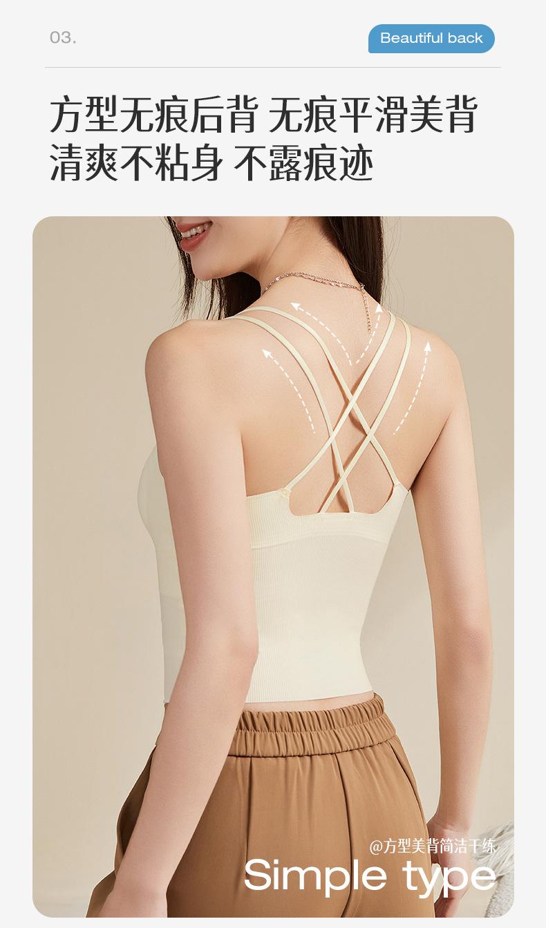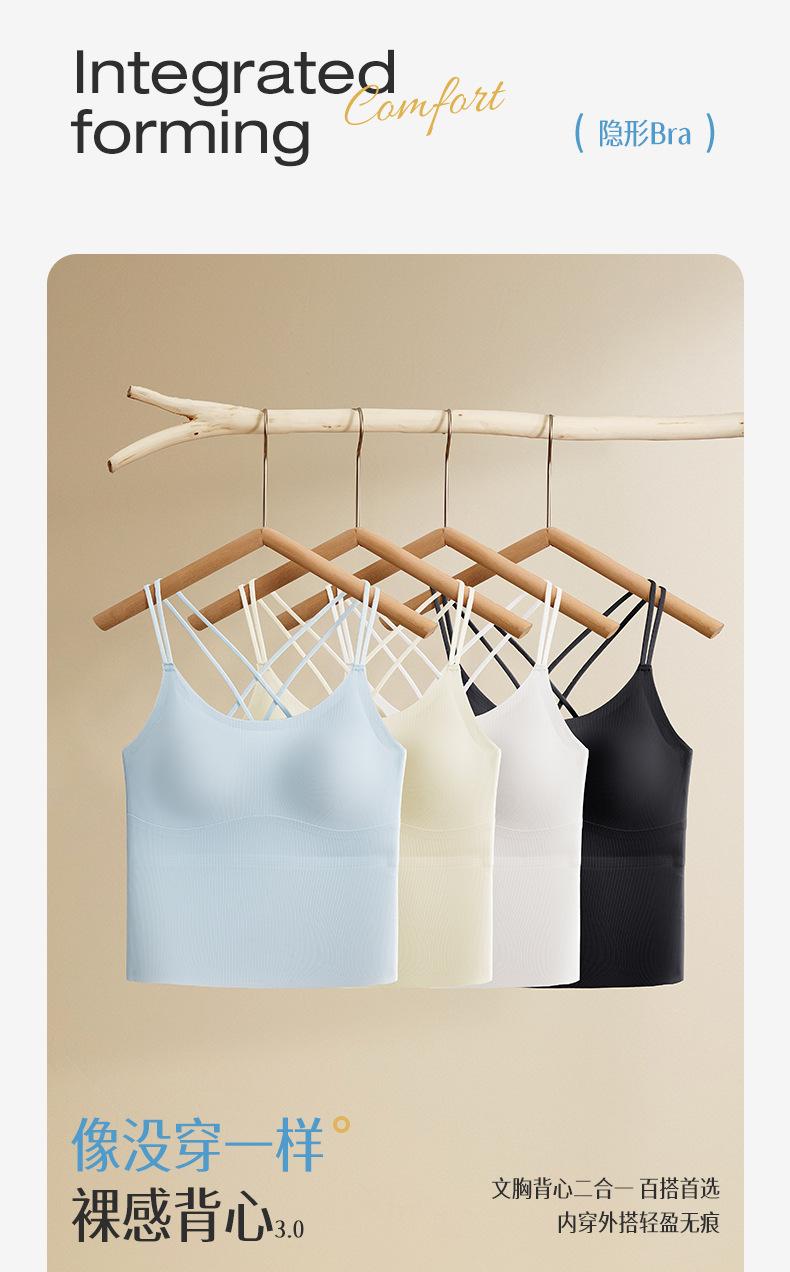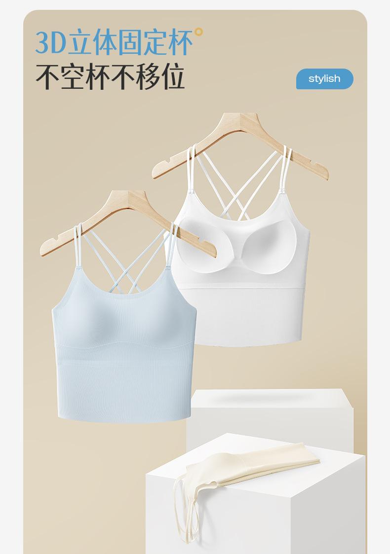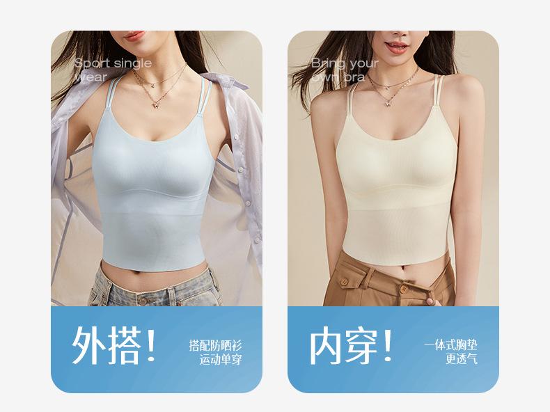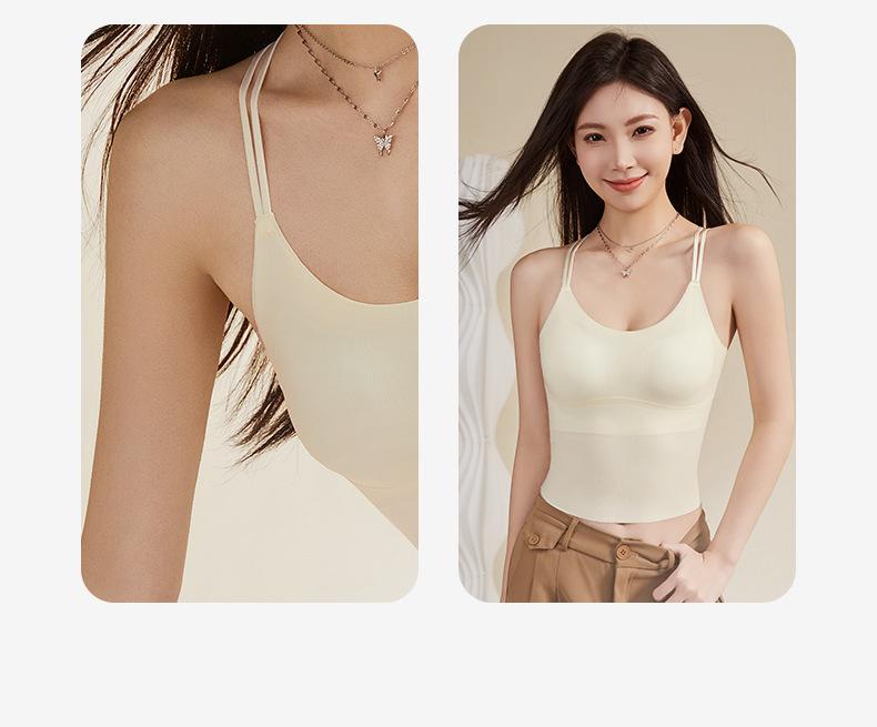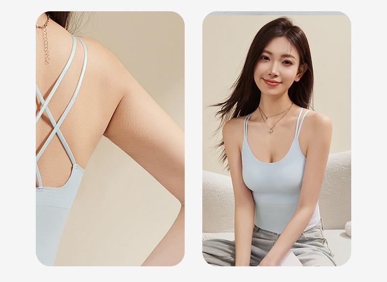 Verano seda de hielo sin costuras puro sexy cruz hermosa espalda tirante con almohadilla para el pecho chaleco interior para mujer ropa exterior fondo top tubo