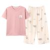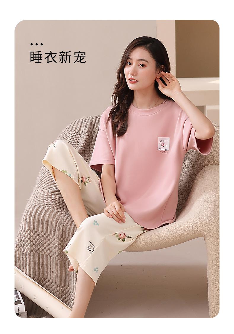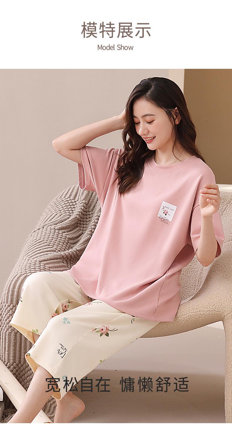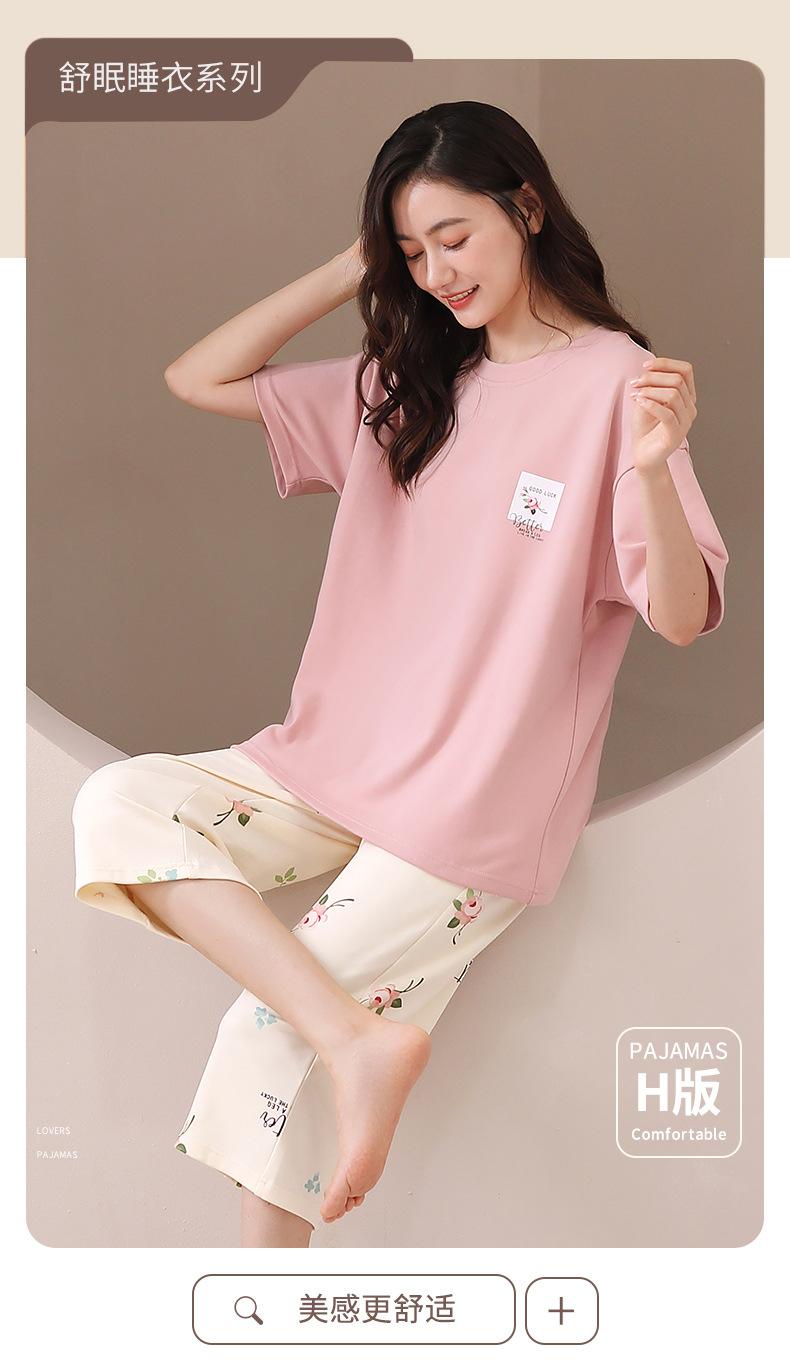 Pijama de verano de talla grande para mujer, de algodón fino, de manga corta, pantalones capri, ropa informal holgada, traje para mujer